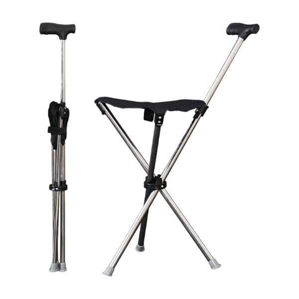Fentefere ステッキチェア 軽量折りたたみ椅子付き杖 耐荷重150kg 伸縮5段階調節 自立式3脚設計 コンパクト収納 アウトドア/介護/贈り物