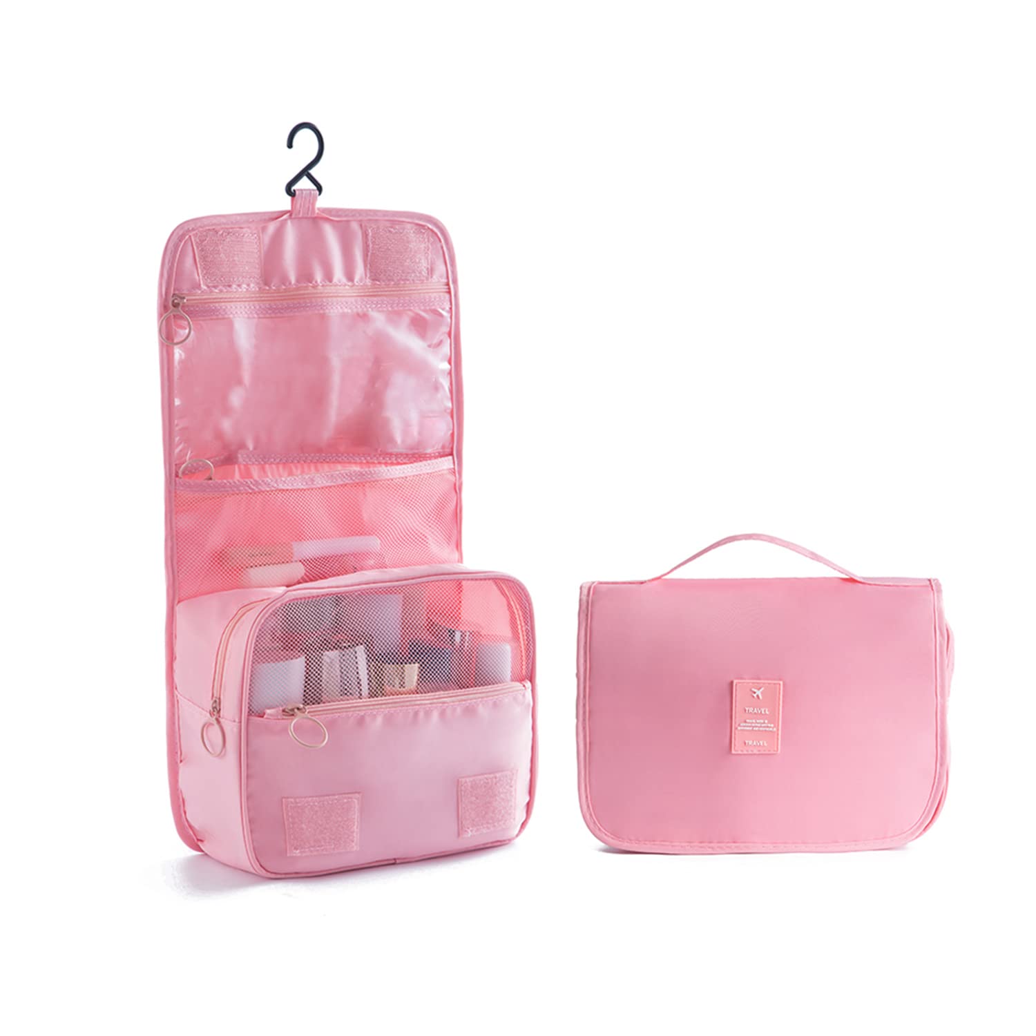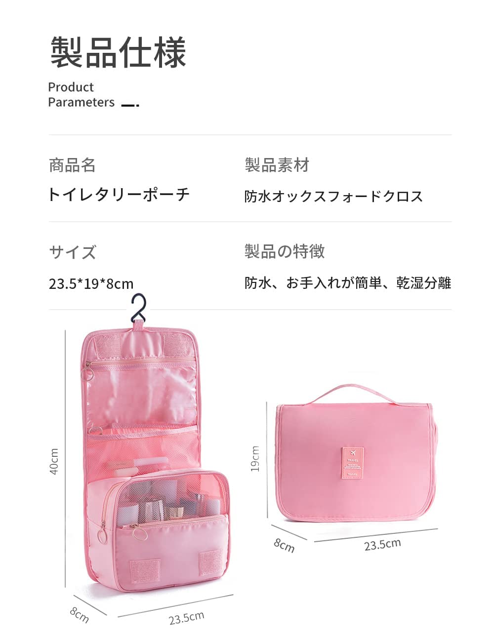 ALLMIRA トラベルポーチ 吊り下げ ポーチ 旅行用 洗面用具 トイレタリーバッグ 大容量 防水 フック付き 旅行 バッグ トラベル おしゃれ (ピンク 1)