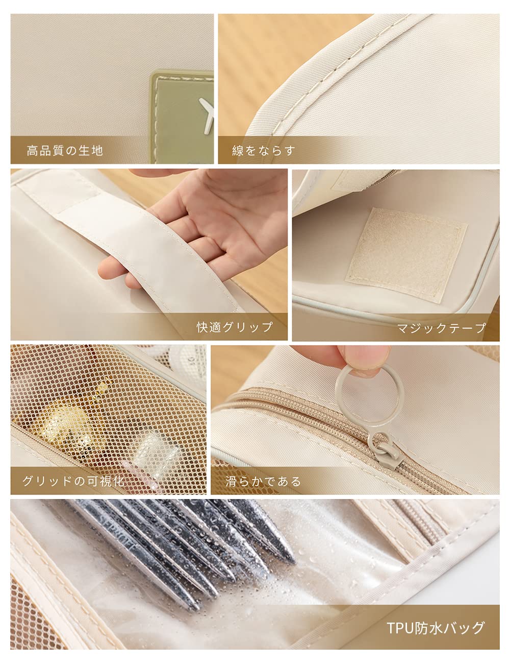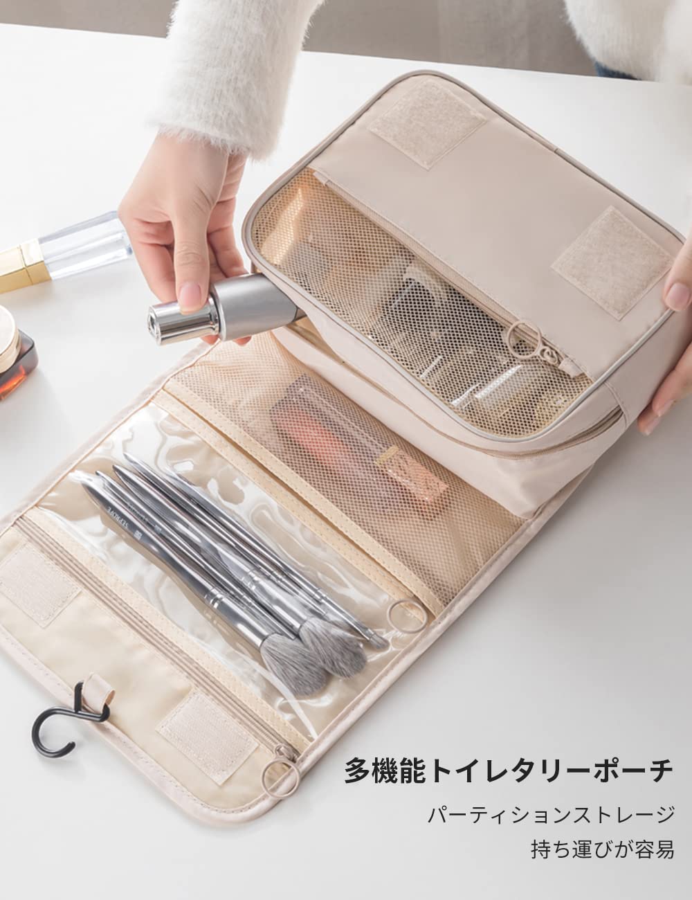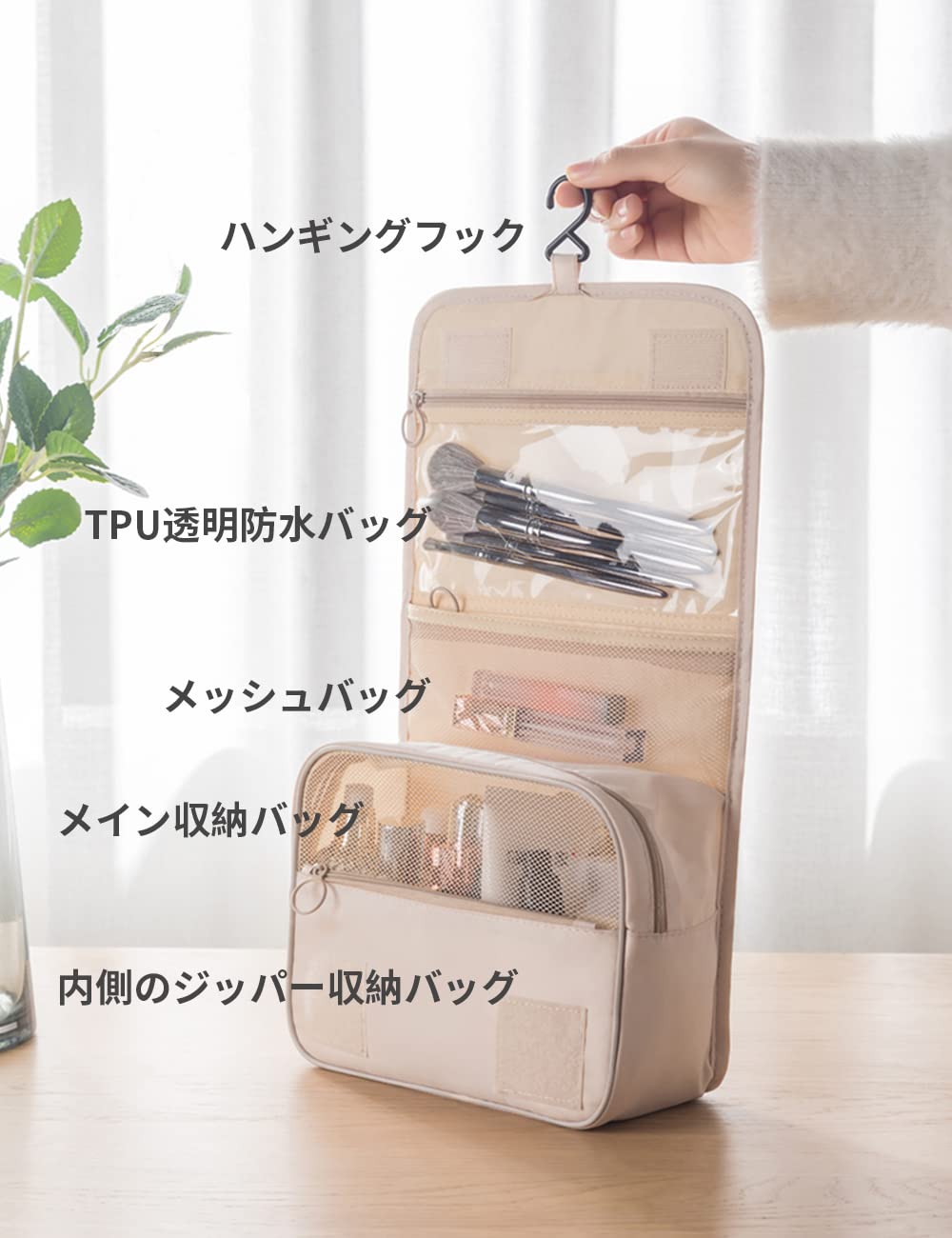 WANDF トイレタリーバッグ 吊り下げ トラベルポーチ 掛け式 化粧ポーチ コスメポーチ 洗面ポーチ 洗面用具ケース 撥水 大容量 出張 旅行 温泉 (グレー)