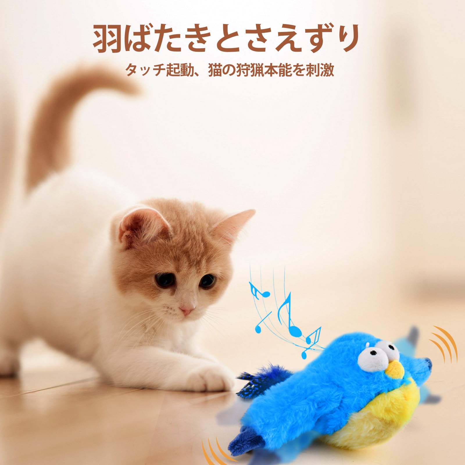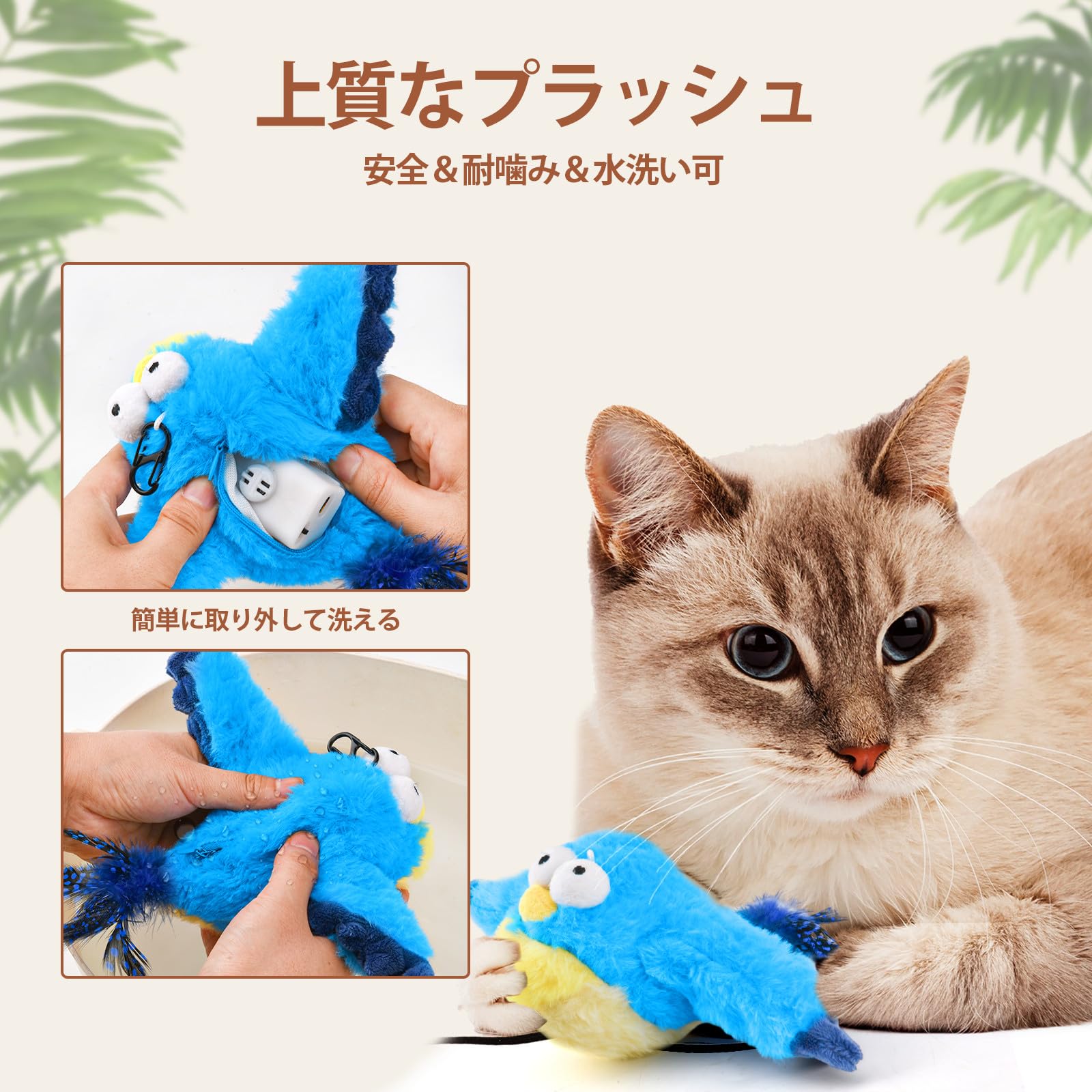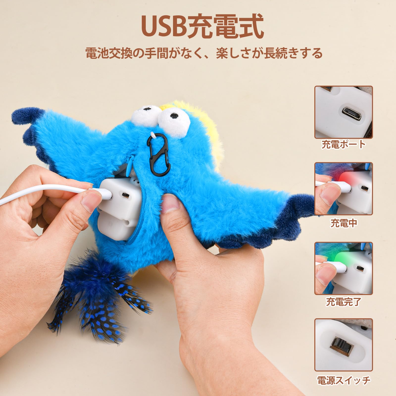 猫 おもちゃ ピョンピョンバード 電動 動くぬいぐるみ 猫じゃらし 音が出る 羽ばたく 充電式 青鳥