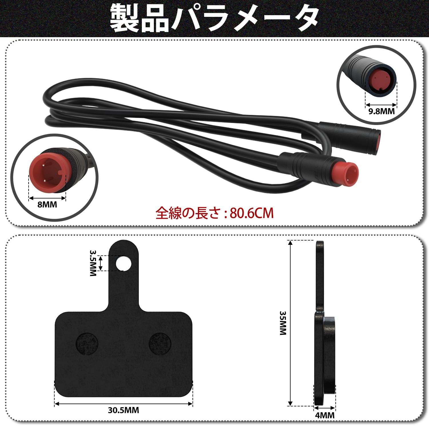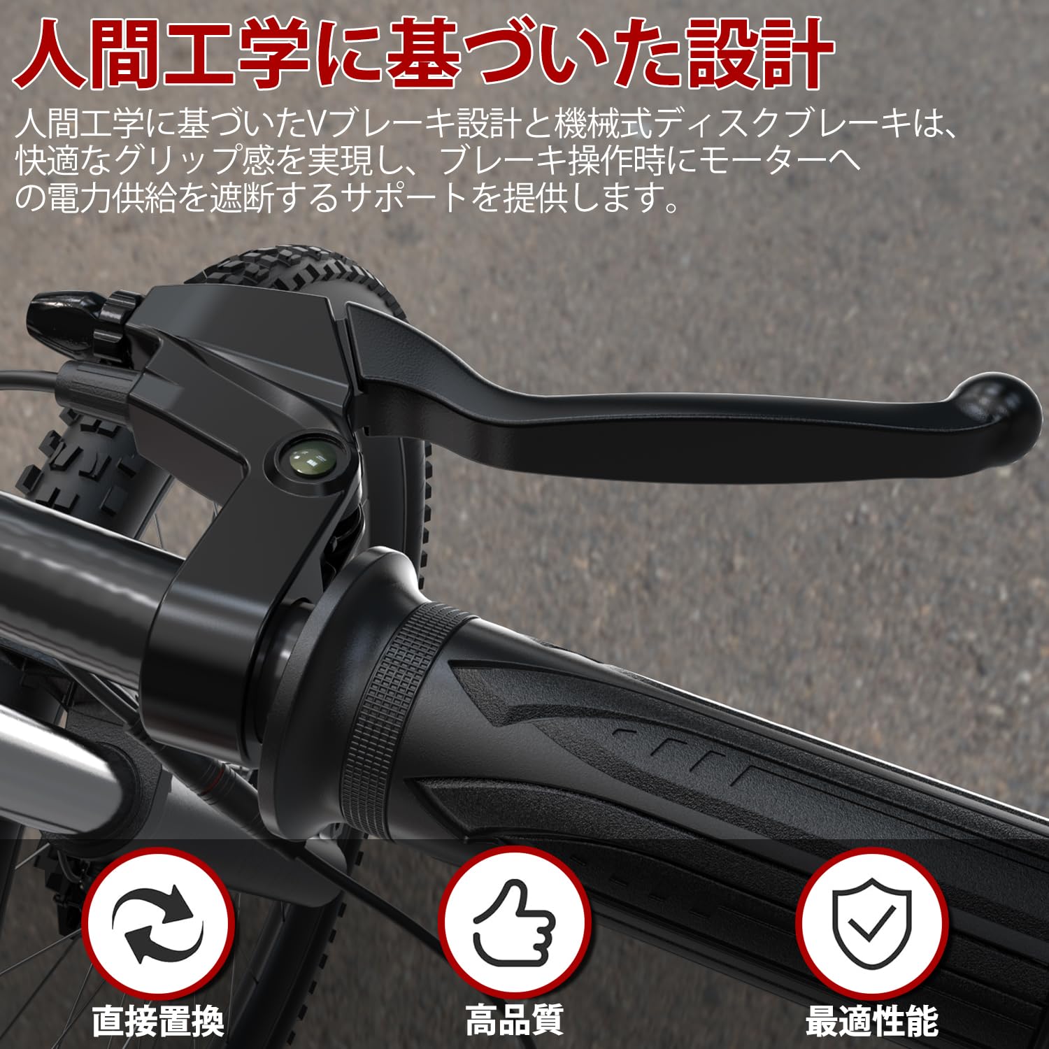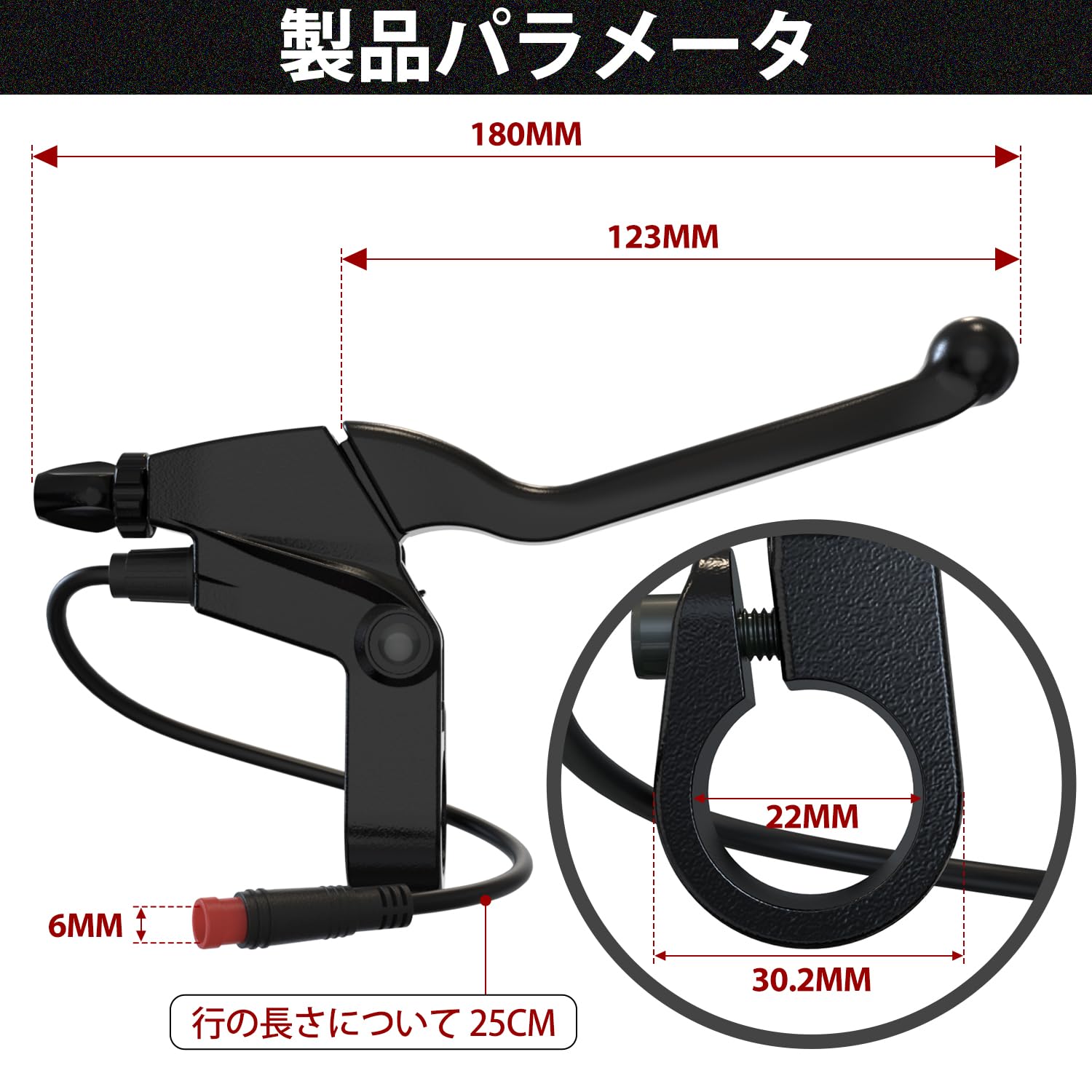 D-Cycle JD3-74L 防水電子ブレーキレバーセット, 22.5mmハンドルバー対応, 2ピンコネクター付き, ブレーキパッド2組同梱, 電動自転車/スクーター用 [並行輸入品]