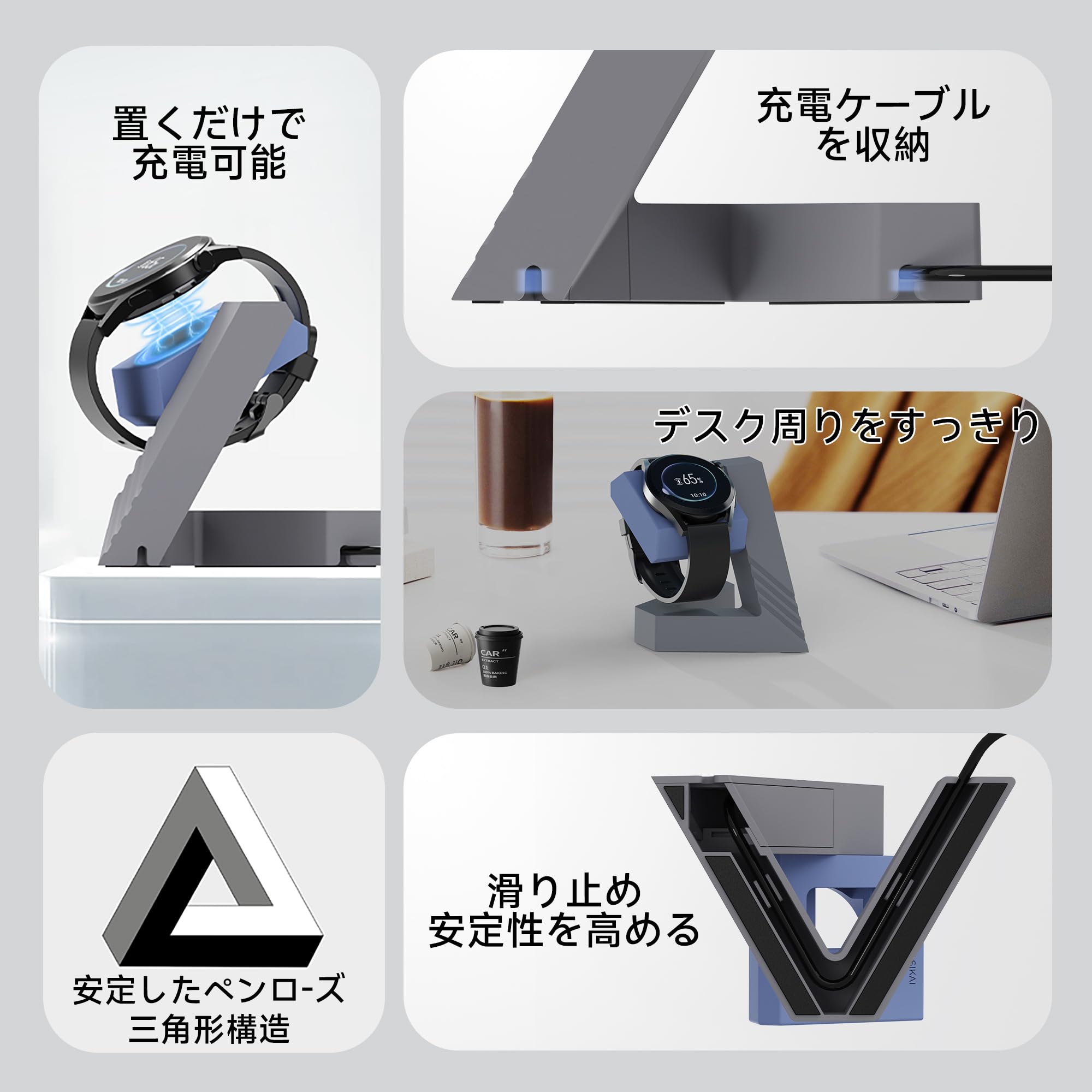 Sikai スタンド for HUAWEI GT5/GT5 Pro/GT4/GT3/GT3 Pro/GT2 Proに対応 高い安定性 三角形の安定構造 Watch4 Pro/4/3スマートウォッチ用充電スタンド 充電ケーブルを収納 滑り止め 簡単な組み立て (ブルー)