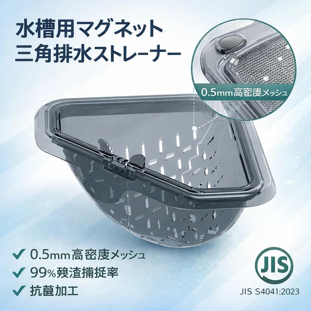 仕様: シングルパック; 色: 半透明グレー; スタイル: モダンミニマリスト; 機能: 多機能; スタイル: 三角形の排水バスケット【マグネット固定で安定】この三角水切りラックは、マグネットでしっかり固定され、シンクの隅にぴったりと収まります。安定感があり、調理中も安心して使用できます。【防臭メッシュ付き】高密度の防臭メッシュが食材残渣をキャッチし、嫌な匂いを防ぎます。台所排水口に簡単にセットできるので、キッチンを清潔に保ちます。【省スペース設計】コンパクトな三角形デザインで、省スペースながらも効率的にゴミ受けが可能です。現代モダン風のスタイリッシュな見た目が、どんなキッチンにもマッチします。【分解洗浄可能】部品ごとに分解できるため、お手入れが簡単で衛生的。いつでも清潔に使えるので、調理後の片付けもスムーズです。【便利な乾燥機能】水切りホルダーとしても優秀で、水分をしっかりと切ってくれるため、食材や器具の乾燥が早く、後片付けが楽になります。