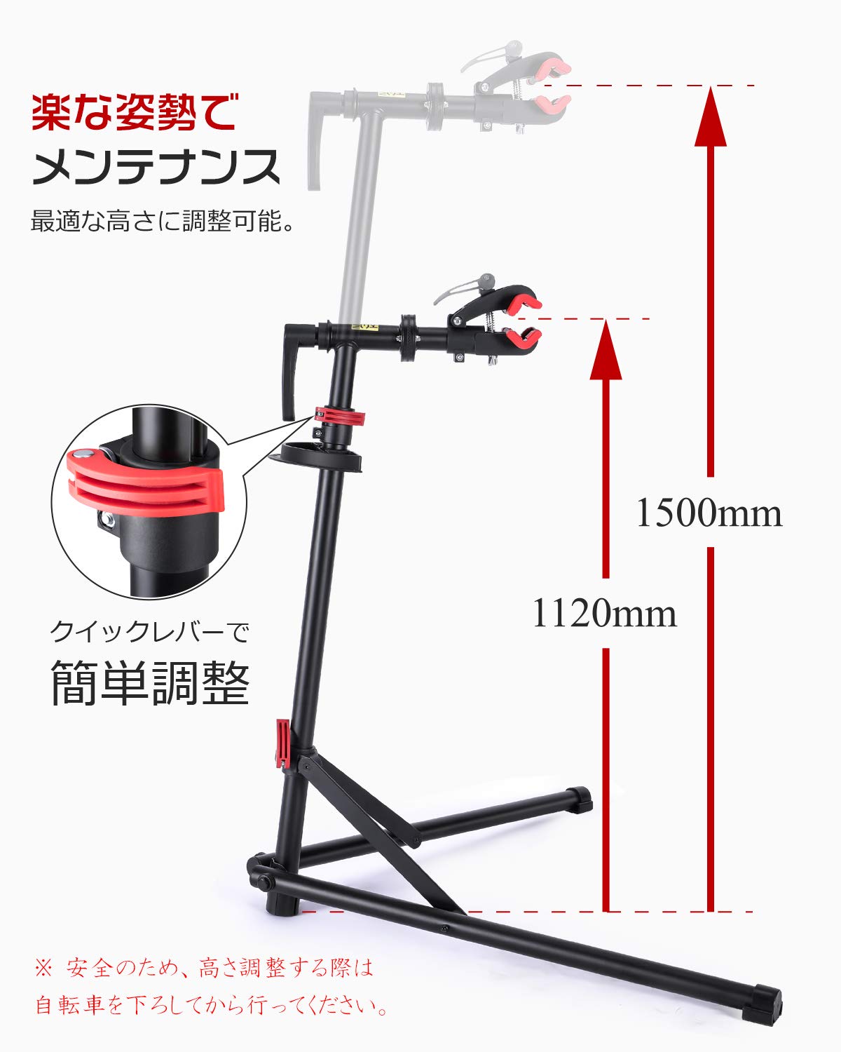 CXWXC 自転車 メンテナンススタンド ワークスタンド ロードバイク スチール製 高さ/角度調節可 折りたたみ式 ディスプレイスタンド 工具トレー/ハンドル支えバー付 ブラック (CX-C10)