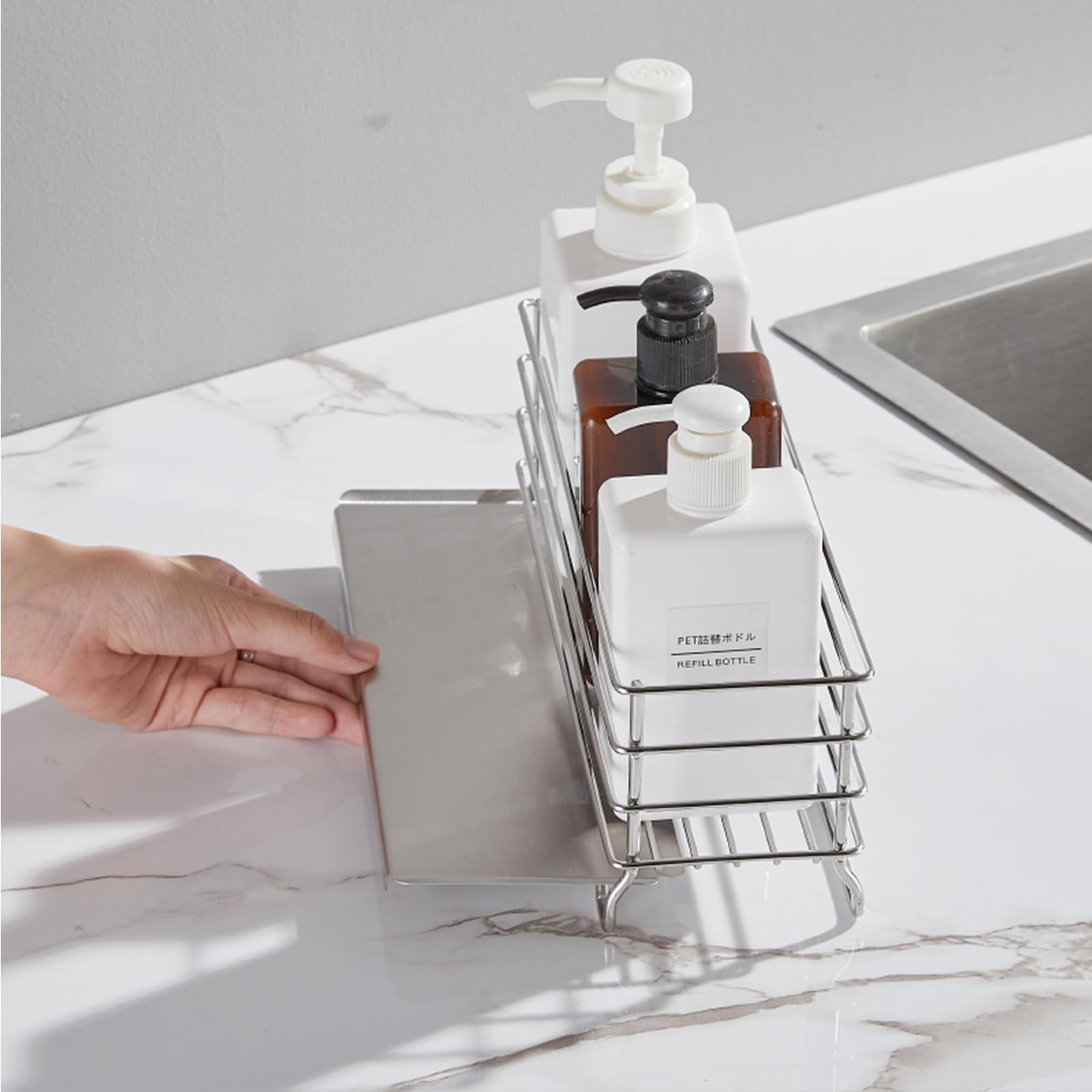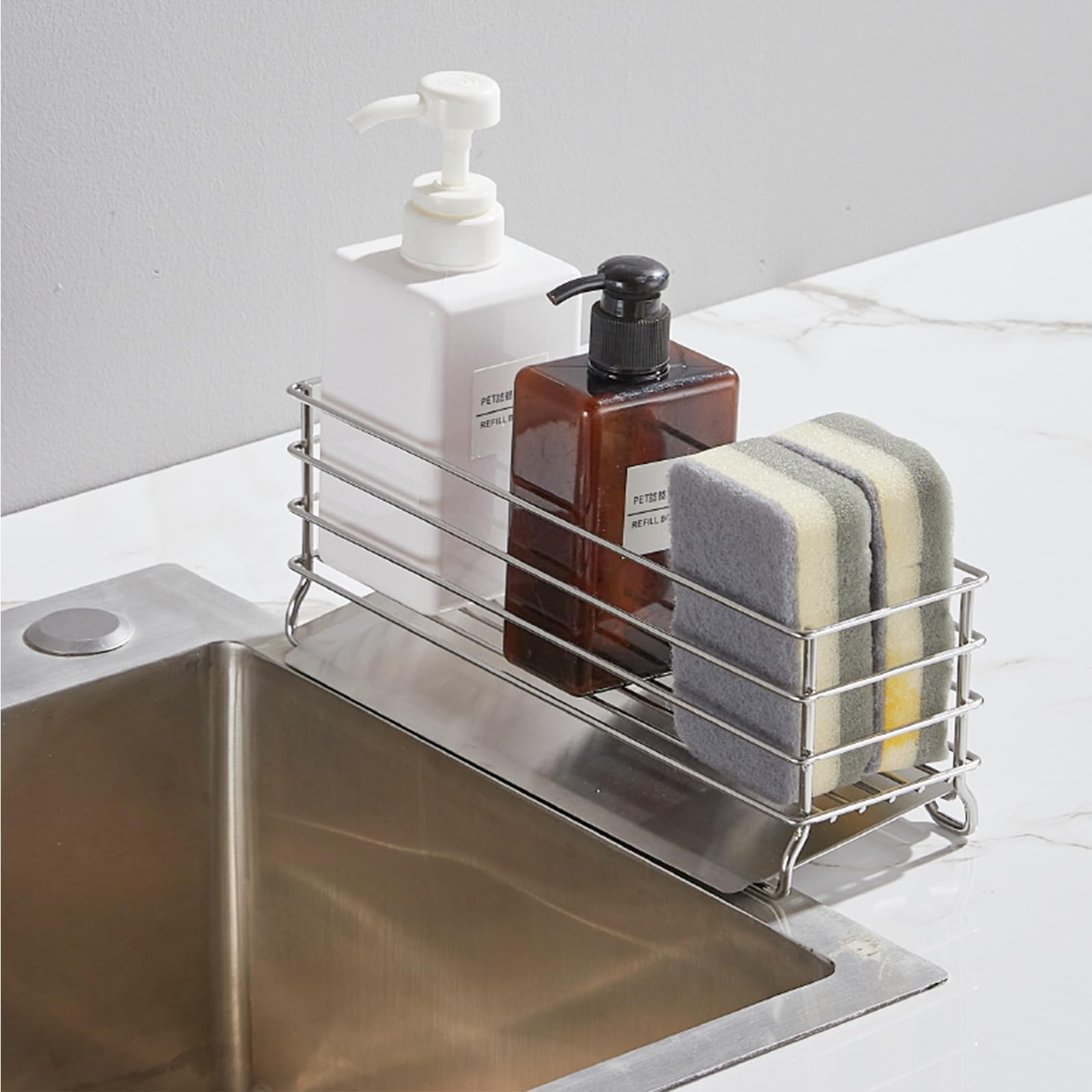 Poywaze スポンジホルダー 強力な粘着フィルムフック スポンジラック ステンレススチール キッチン洗浄ツール収納キャディ錆びにくいスポンジホルダー
