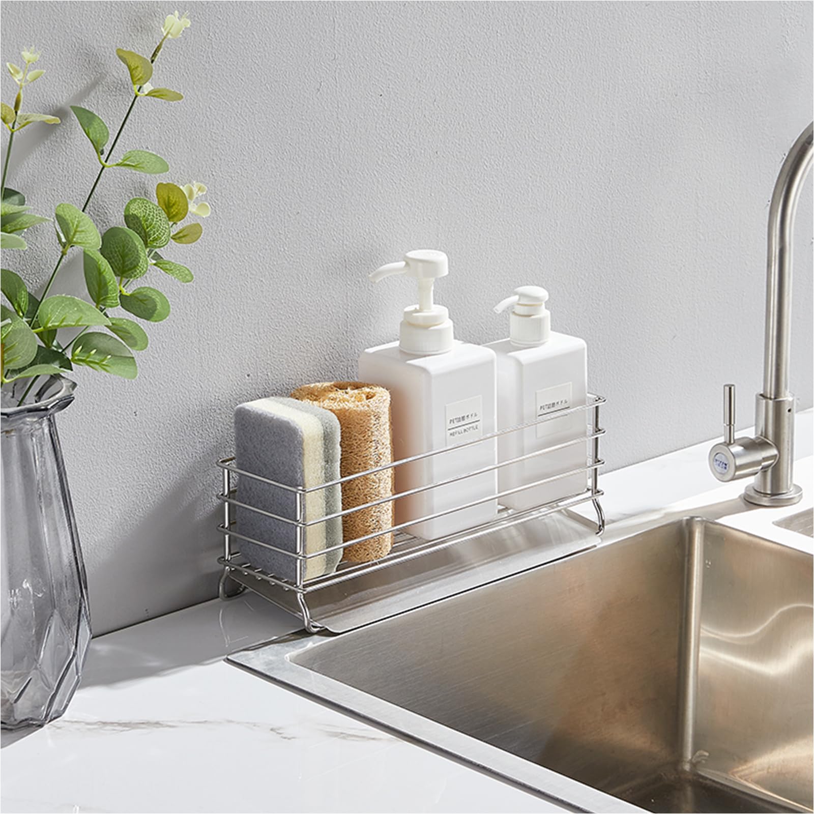 Sitengle スポンジホルダー キッチンスポンジ洗剤置き 18/8ステンレス製 スポンジラック たわし入れ スポンジ置き キッチン収納 小物 (シルバー)