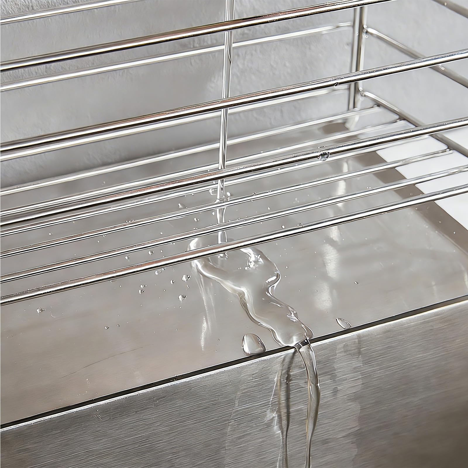 TATIU スポンジホルダー スポンジ置き キッチン 水が流れる 防錆 ステンレス製 たわし入れ キッチン 洗面台 収納 可動式仕切り 洗剤置き たわしホルダー (シルバー)