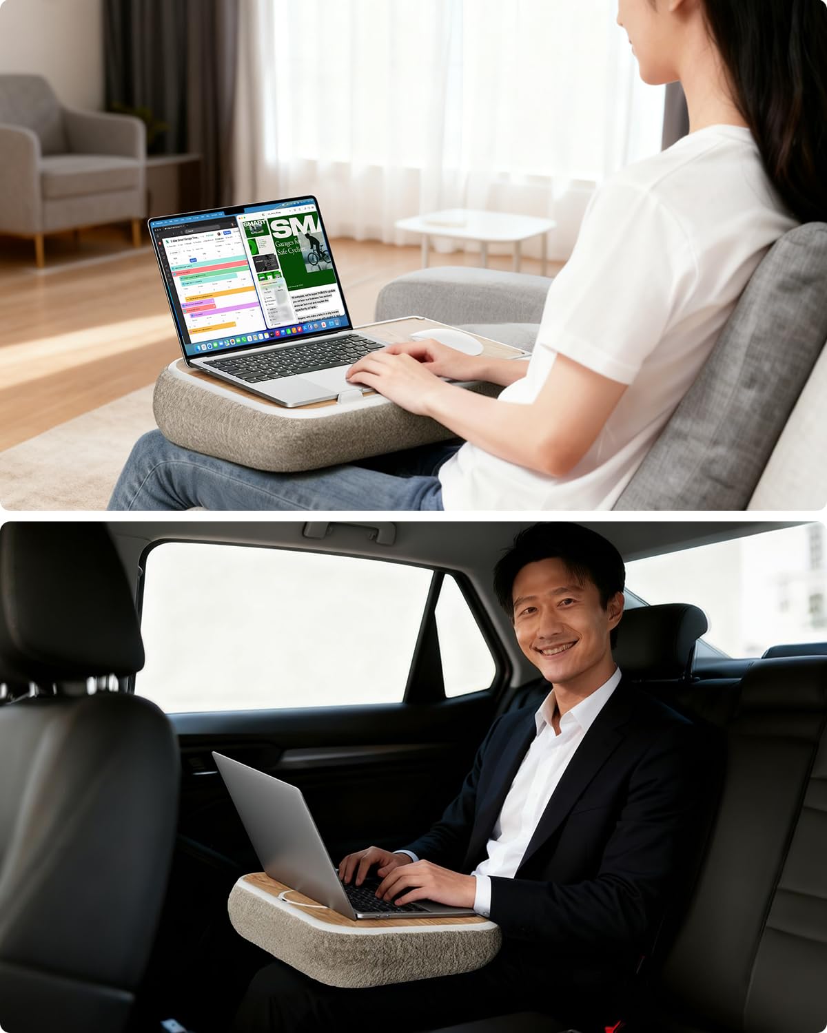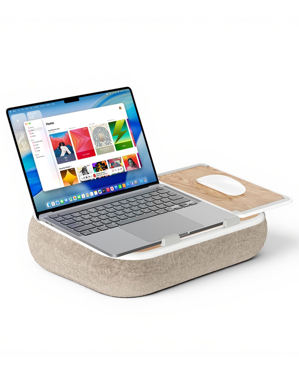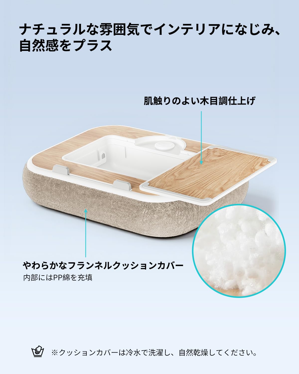viozon 膝上テーブル PCクッション ノートパソコンスタンド 在宅ワーク用 15インチ以内対応 収納付き マグネット式マウスパッド アロマオイル対応 ナチュラル木目調 ベージュ