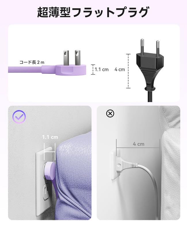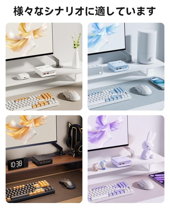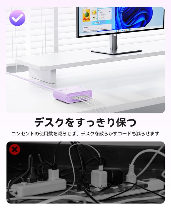 ORICO 小方砖USB電源タップ(8口、25W)(コンセント4口 USB-C×2/USB-A×2、延長コード1m)【PSE技術基準適合/USB Power Delivery対応】Windowsパソコン iPad iPhone Galaxy Androidスマートフォン ノートパソコン 各種デバイス対応 - 紫 - PDC(一つの装い)
