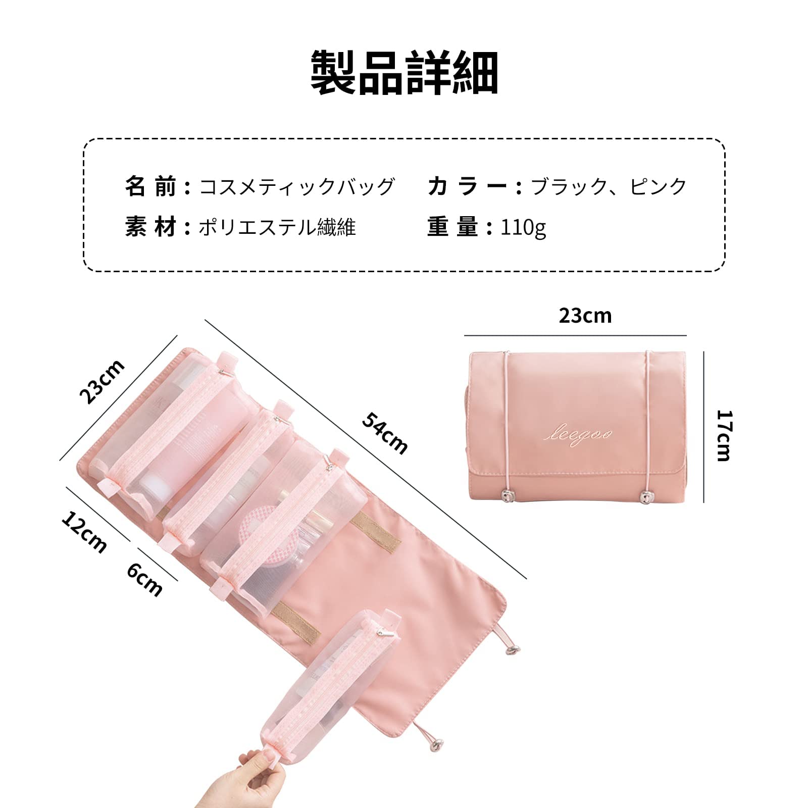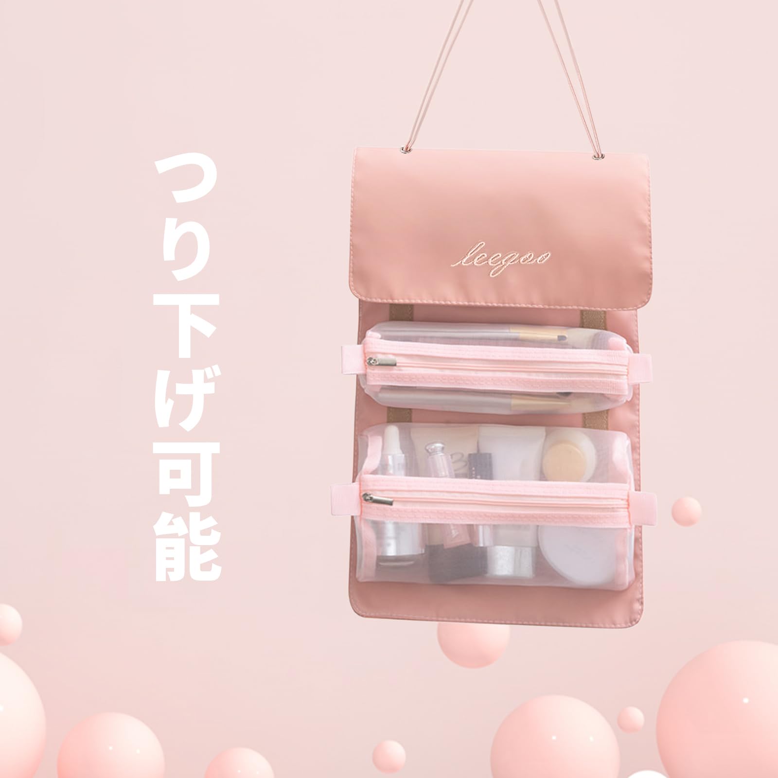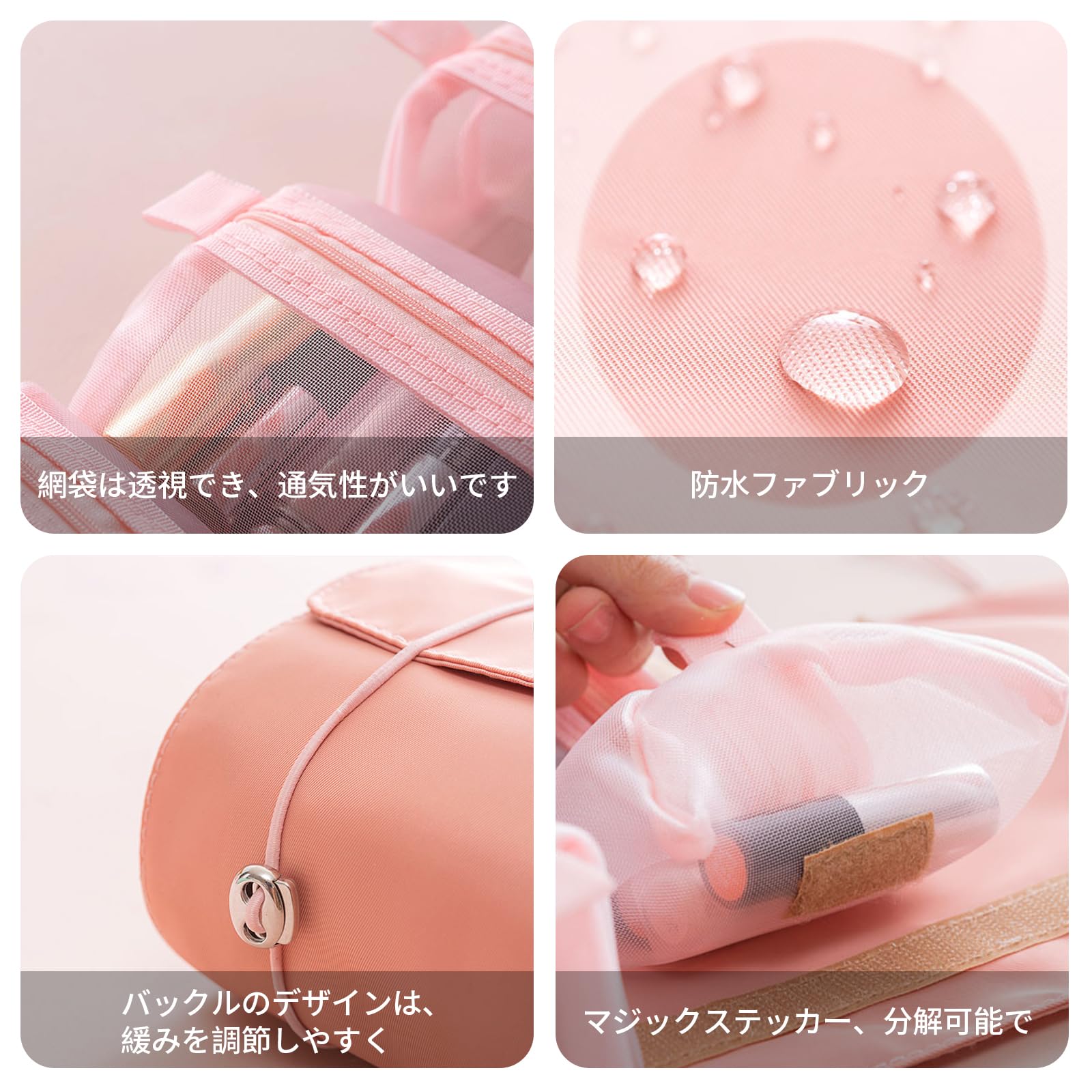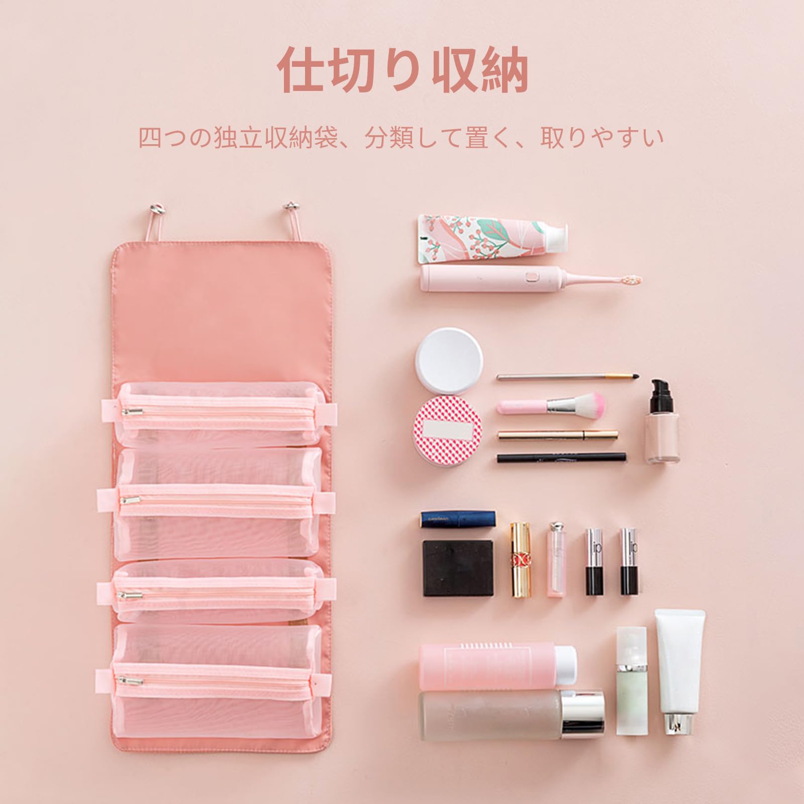 ALLMIRA メイクポーチ トラベルポーチ 化粧ポーチ 大容量 4仕切り 旅行 防水 コスメポーチ 洗面用具 ポーチ 旅行用 持ち運び 折り畳み トラベル 取り外し 折りたたみ 多機能 バスルームポーチ トイレタリーバッグ 吊り下げ バニティーポーチ 化粧品入れ トイレタリーバ 小物入れ 収納バッグ メンズ レディース (ピンク)