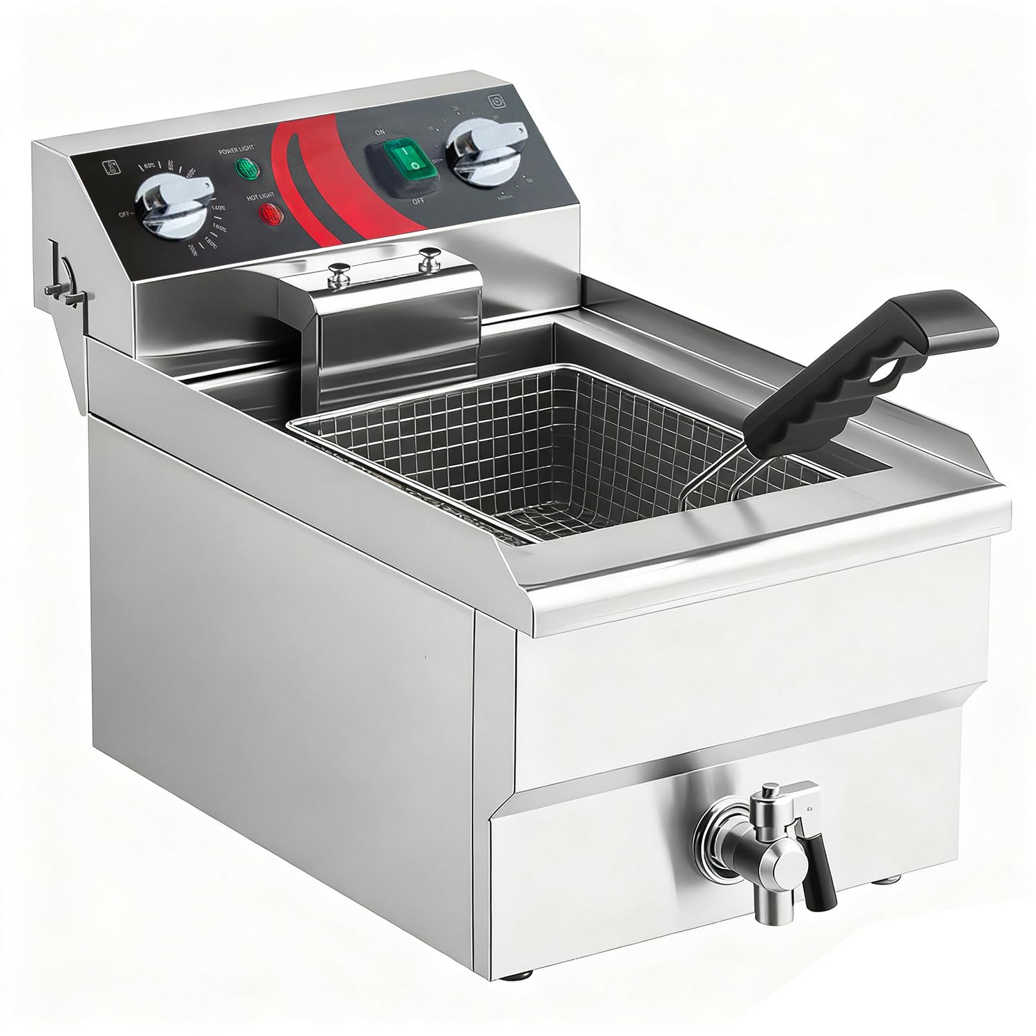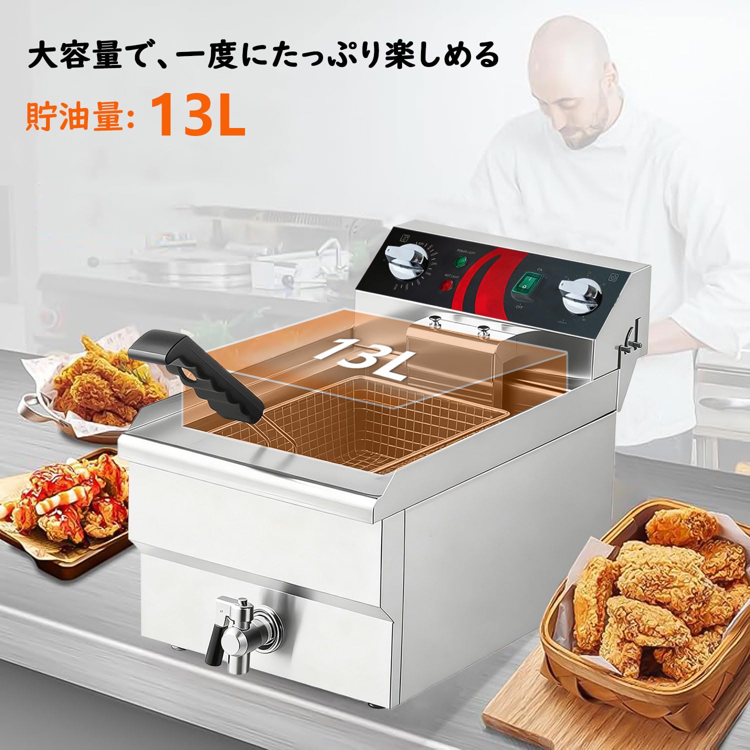 電気フライヤー 13L 卓上フライヤー 揚げ物器 ミニフライヤー 揚げ物 温度調節60℃-200℃ タイマー設定範囲5min-60min 100V 1500W 50/60Hz 家庭用フライヤー 業務用フライヤー 排油バルブが装備