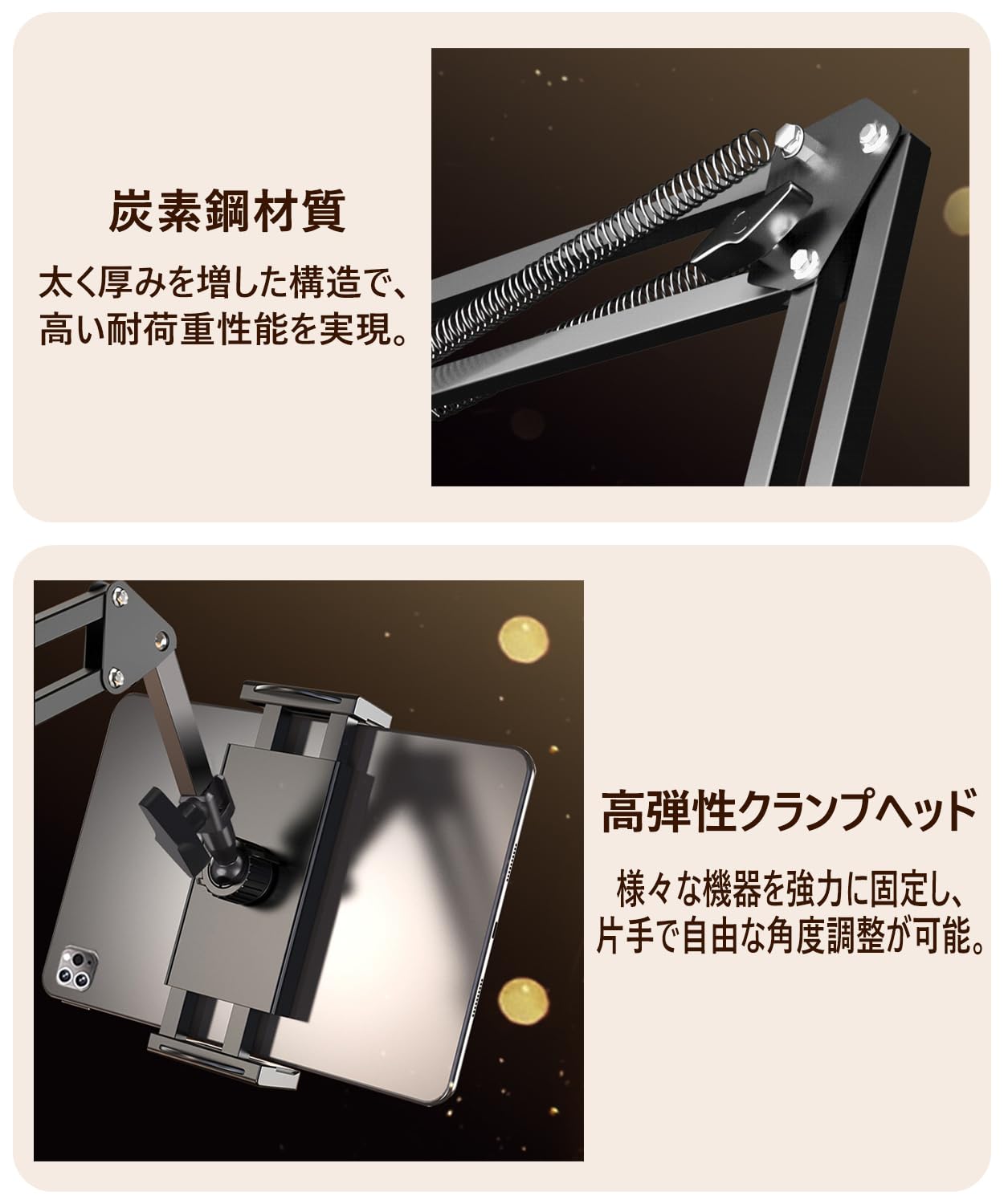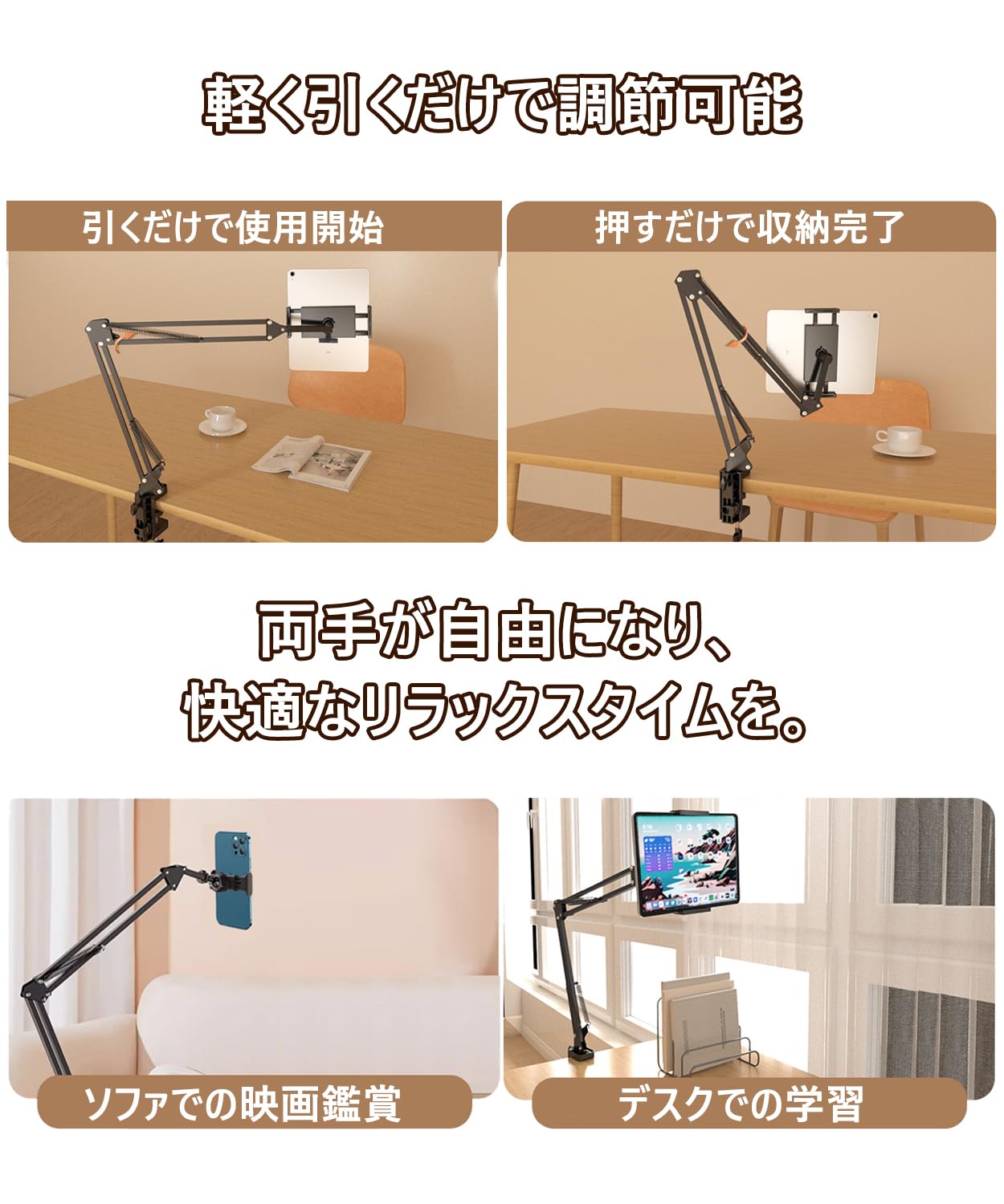 ZenCT タブレットスタンド スマホ&タブレット ホルダー アーム 縦置き クリップ式 NS、ipad、iphone、Android、Nintendo Switch対応 4.7-12.9インチ 360度回転可能 ブラック CT081