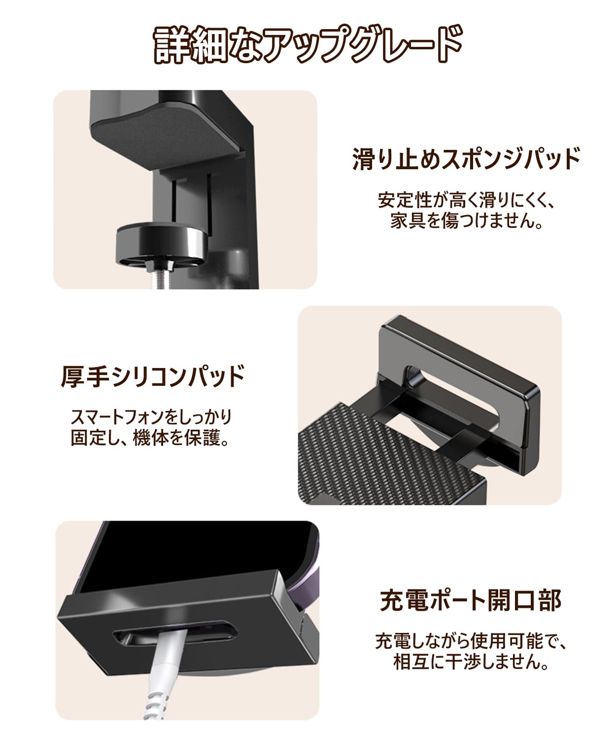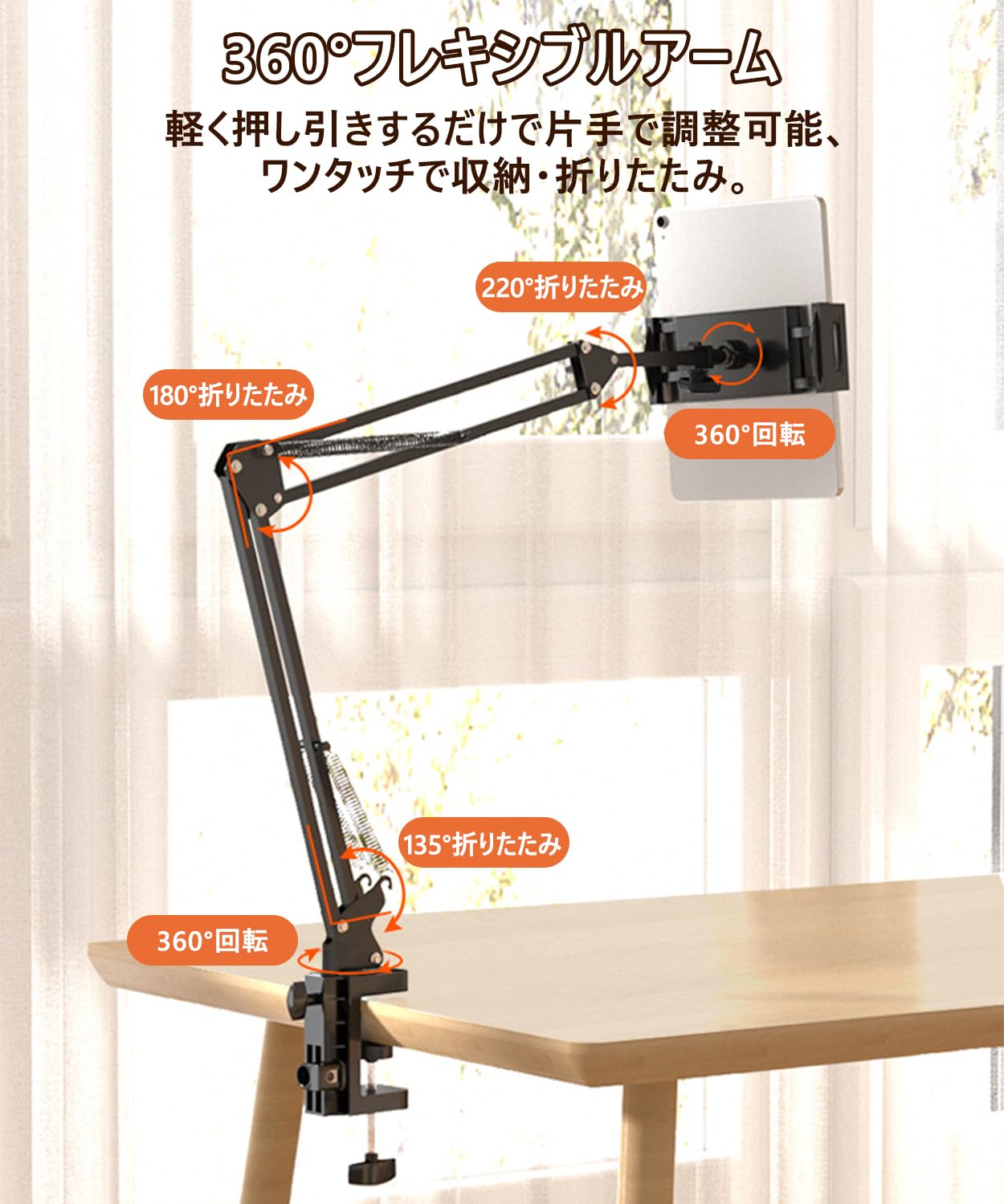 TerraShine タブレットスタンド スマホスタンド 360回転 Zアーム型 自由角度調整 滑り止め 揺れない 折り畳み ベッドサイド取付可能 4.7~12.9インチ対応 に多機種対応 卓上 ベッドサイド用