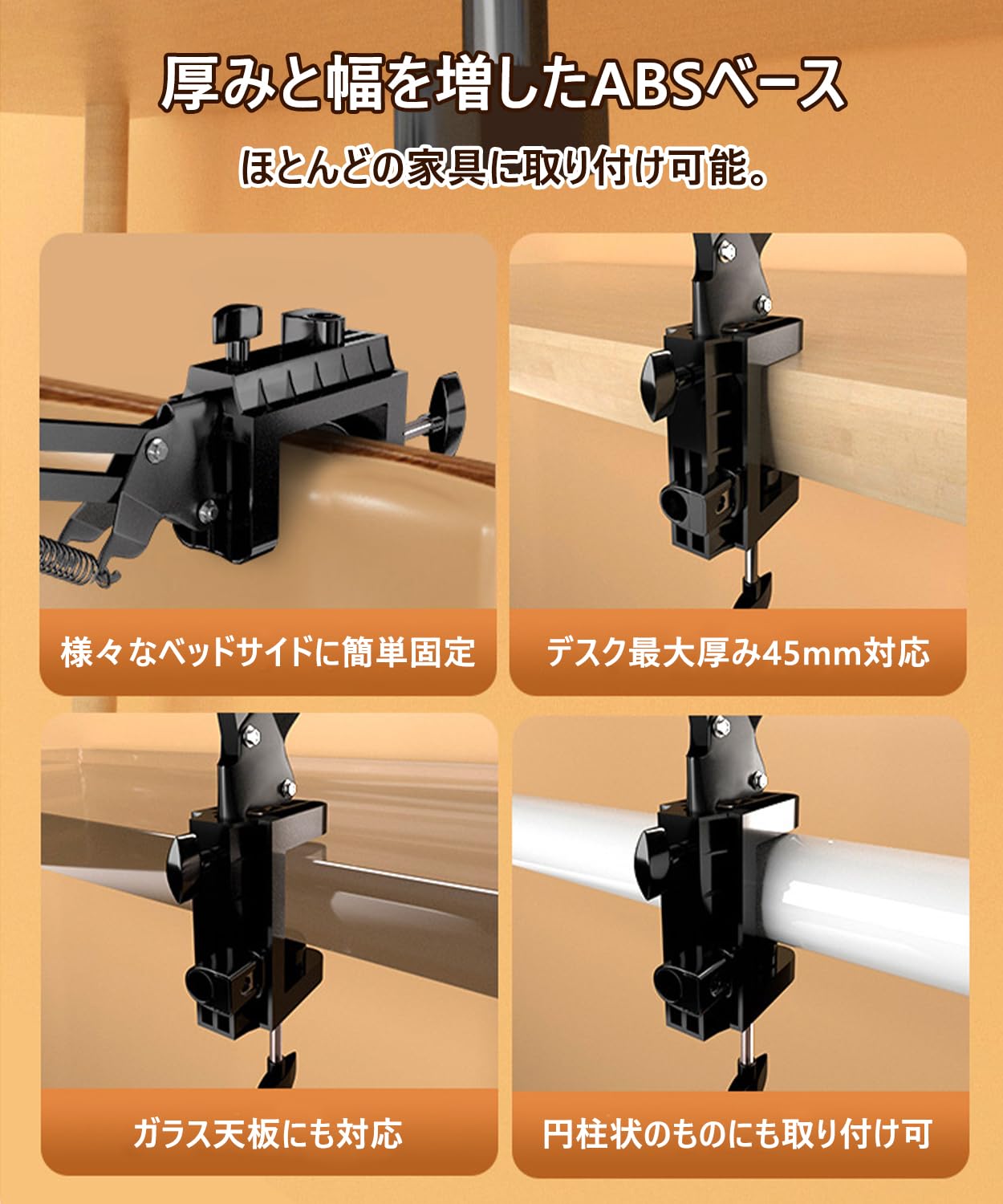 Aquafix タブレット スタンド 炭素スチール製 スマホスタンド スマホアーム 寝ながらタブレット アーム 4-12.9インチ対応 折り畳み式 360°回転 自由角度調整 ベッドサイド取付 揺れない 多機種対応(ブラック)