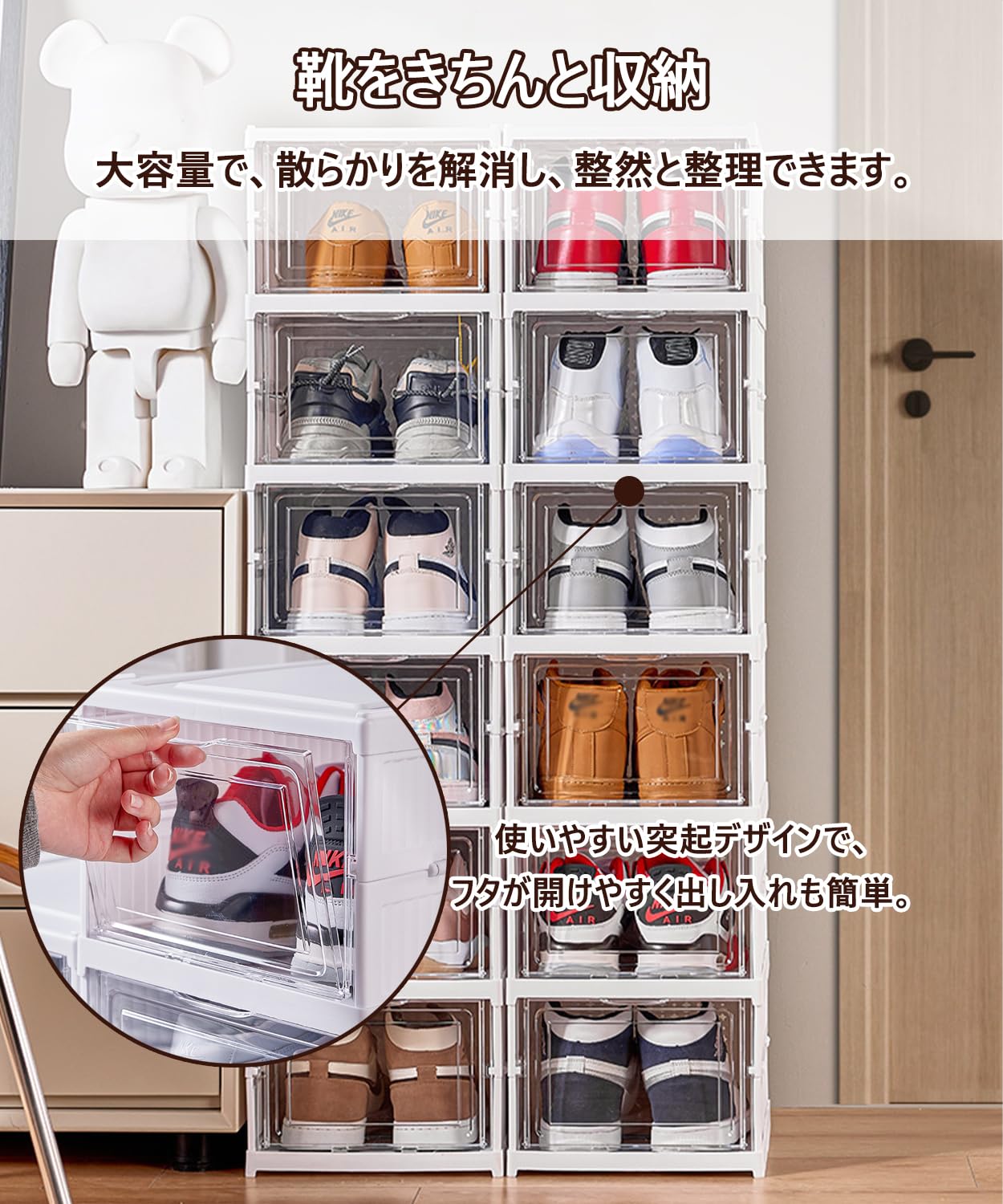 スニーカーボックス シューズボックス スニーカー収納 靴箱 靴収納収納ボックス ディスプレーケース シューズコレクション フィギュアケース 省スペース 組み立て式 大容量 積み重ね可能 防塵 玄関収納 靴箱 小物 化粧品収納 靴収納 多用途 積み重ね可能 横型 6面超クリア 6個組
