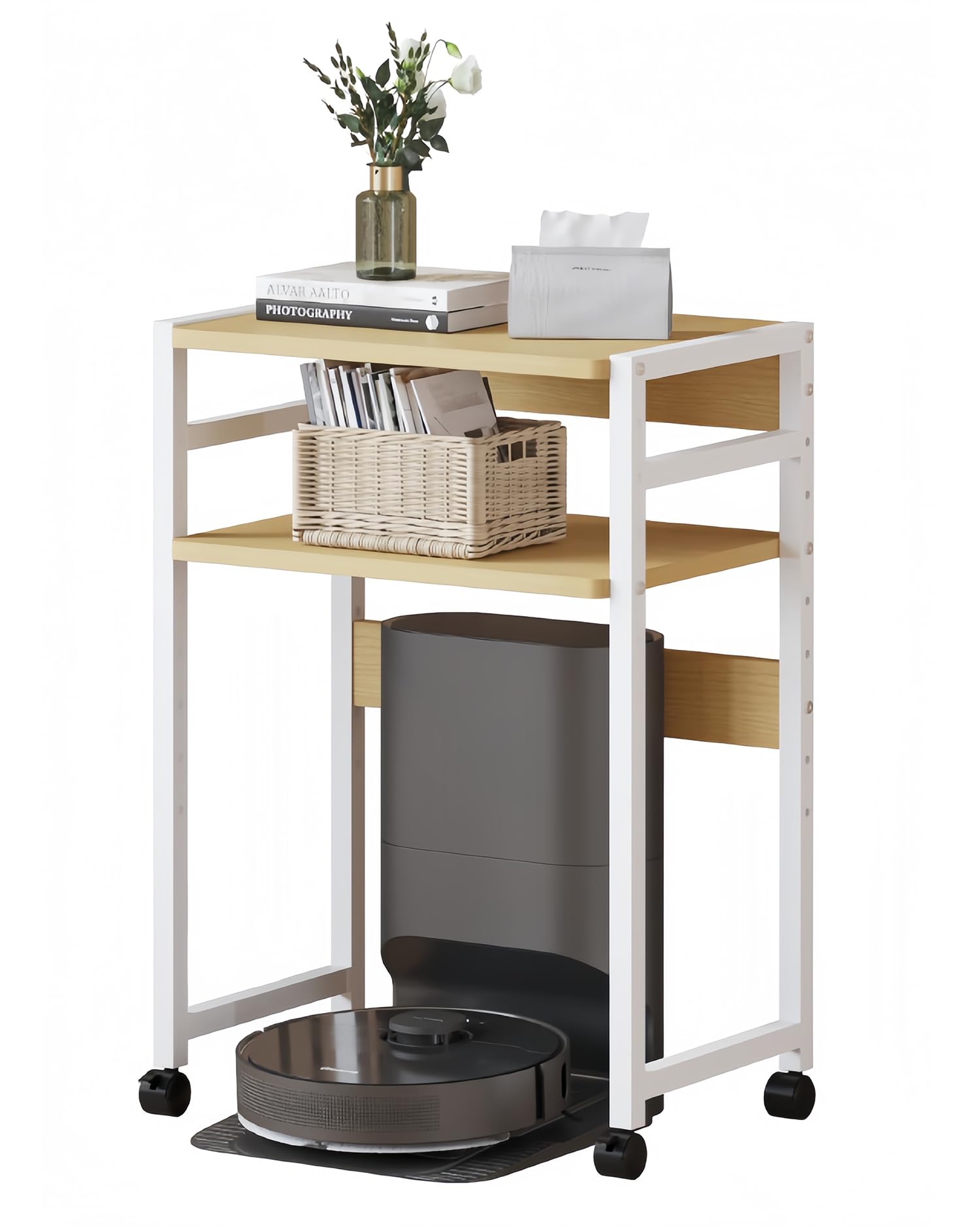 SUOWUKS ロボット掃除機収納ラック お掃除ロボット置き台 高さ調節可能収納ラック サイドテーブル 多サイズ対応 落下防止 ベッドサイドテーブル キャスター付き 移動便利 空間活用ラック 寝室 リビングルーム ソファ ベッドサイド 室内収納(ウッド色, 幅40CM) [並行輸入品]
