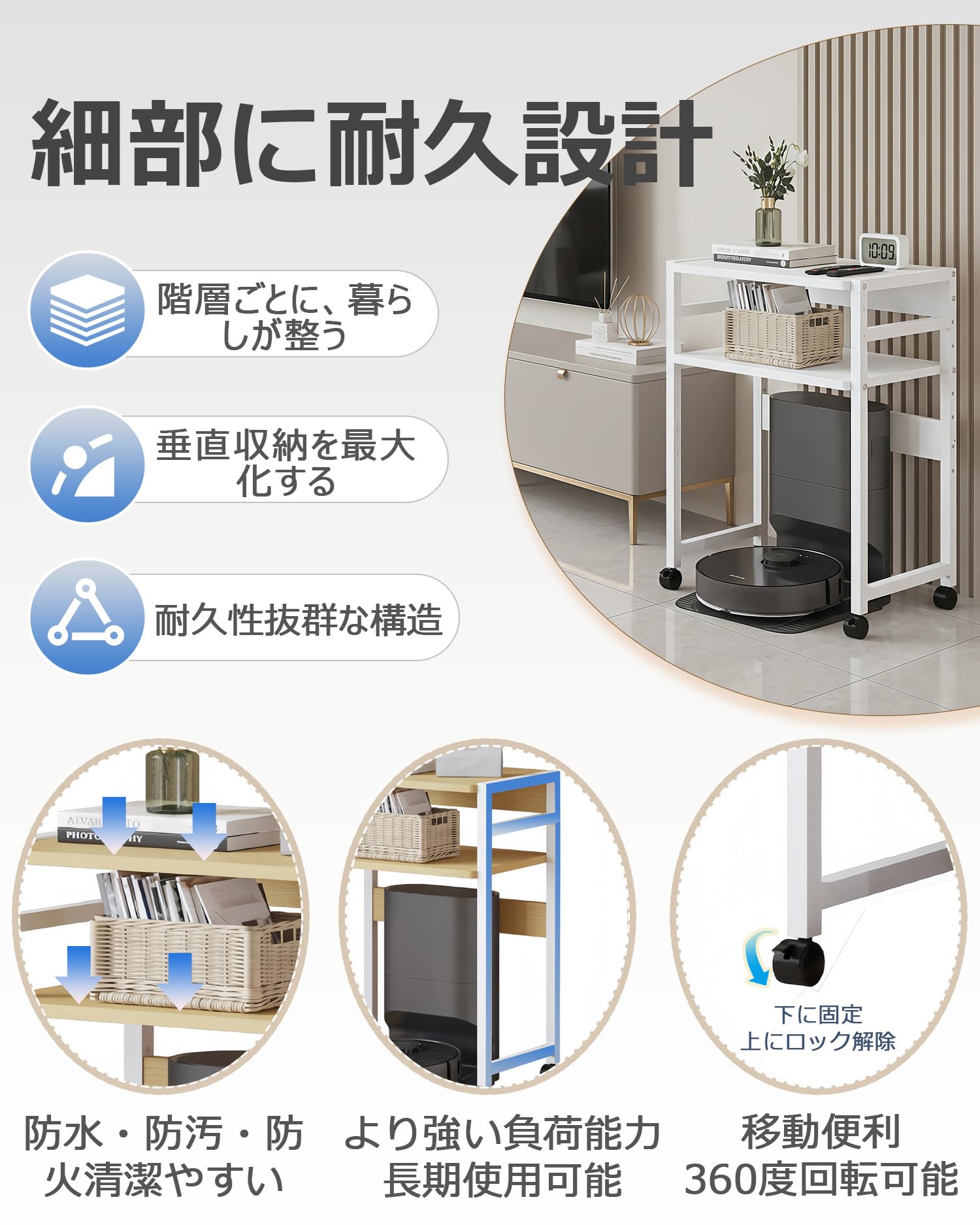 スマート ロボット掃除機, 自動充電, アプリ制御, 白, 衝突防止センサー搭載, 低騒音, 強力吸引, 薄型デザイン, 家庭用