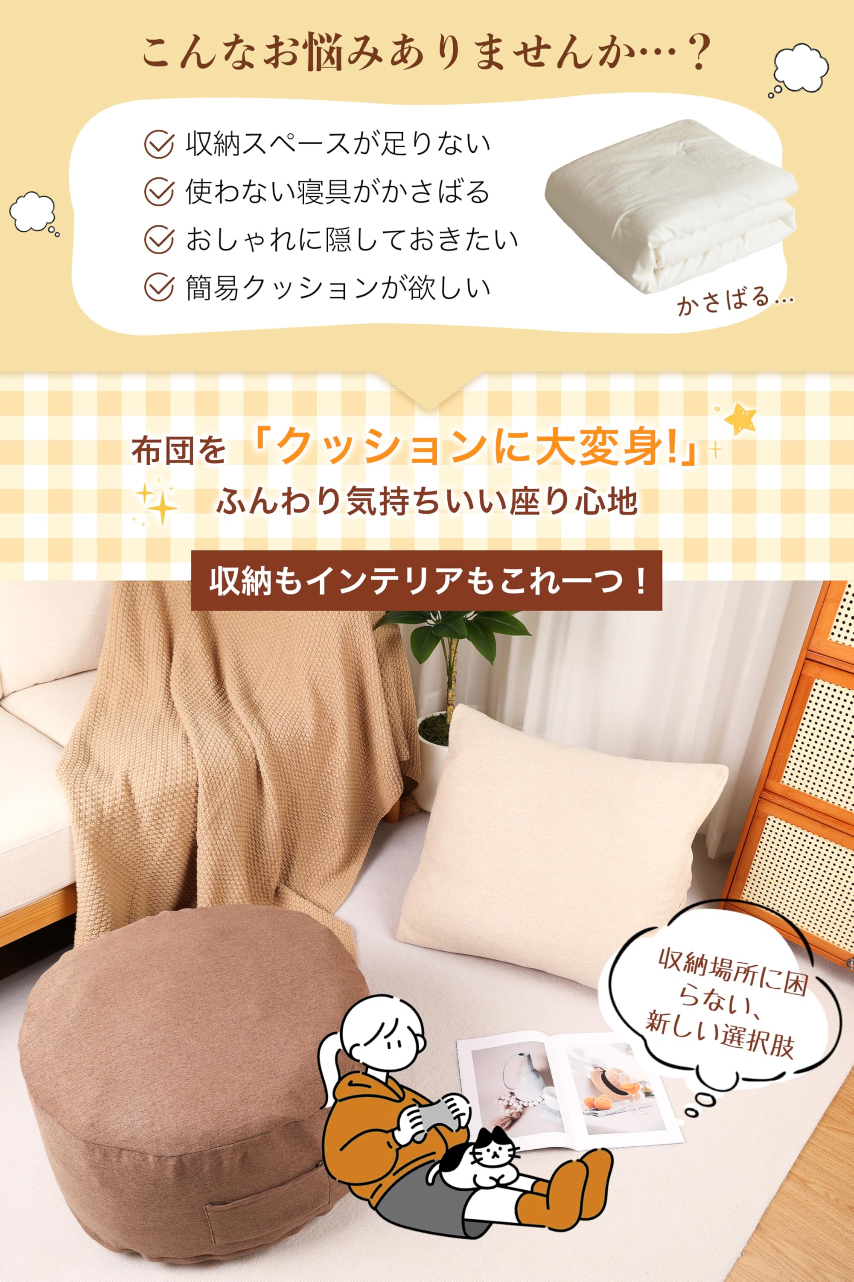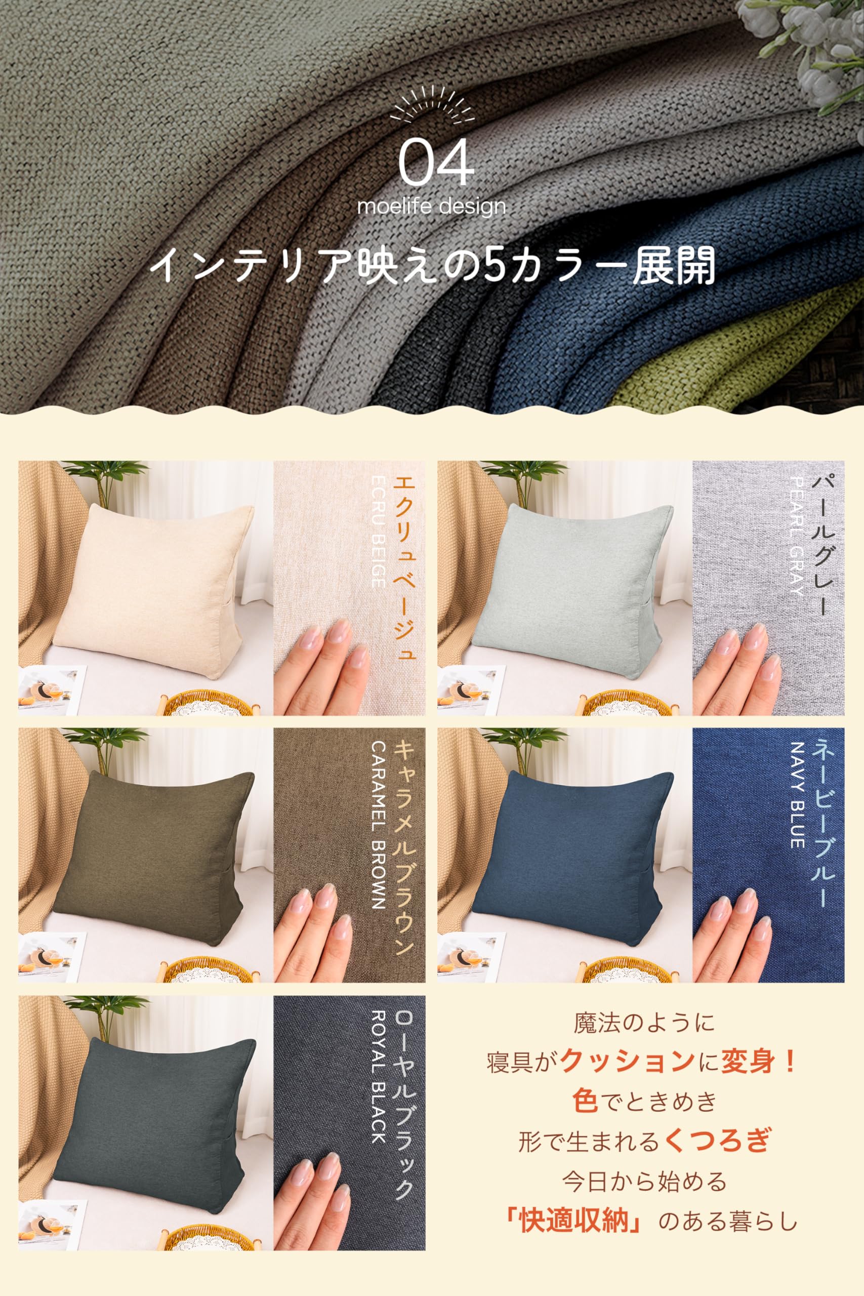 布団収納 クッション 布団収納袋 【大容量・省スペース・ポケット付き】 掛け布団 毛布 収納 背もたれ ヘッドボード 羽毛布団 マットレス クッションカバー 立てられる 無地 洗える (トライアングル型,ネイビーブルー)