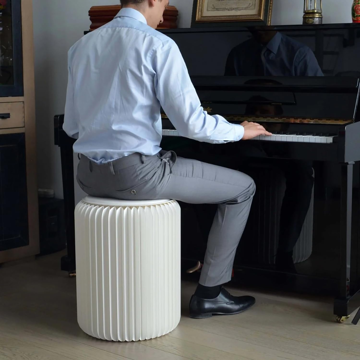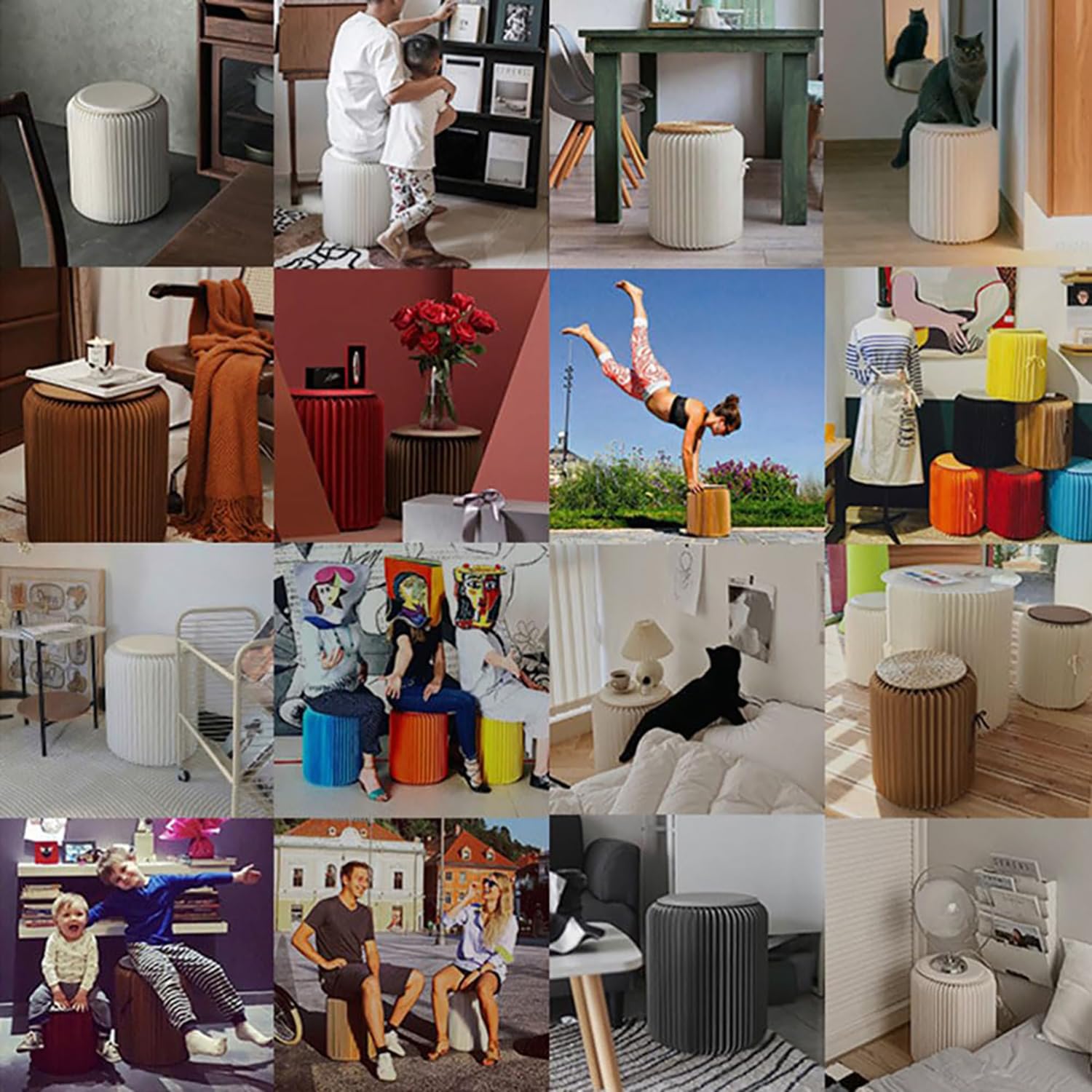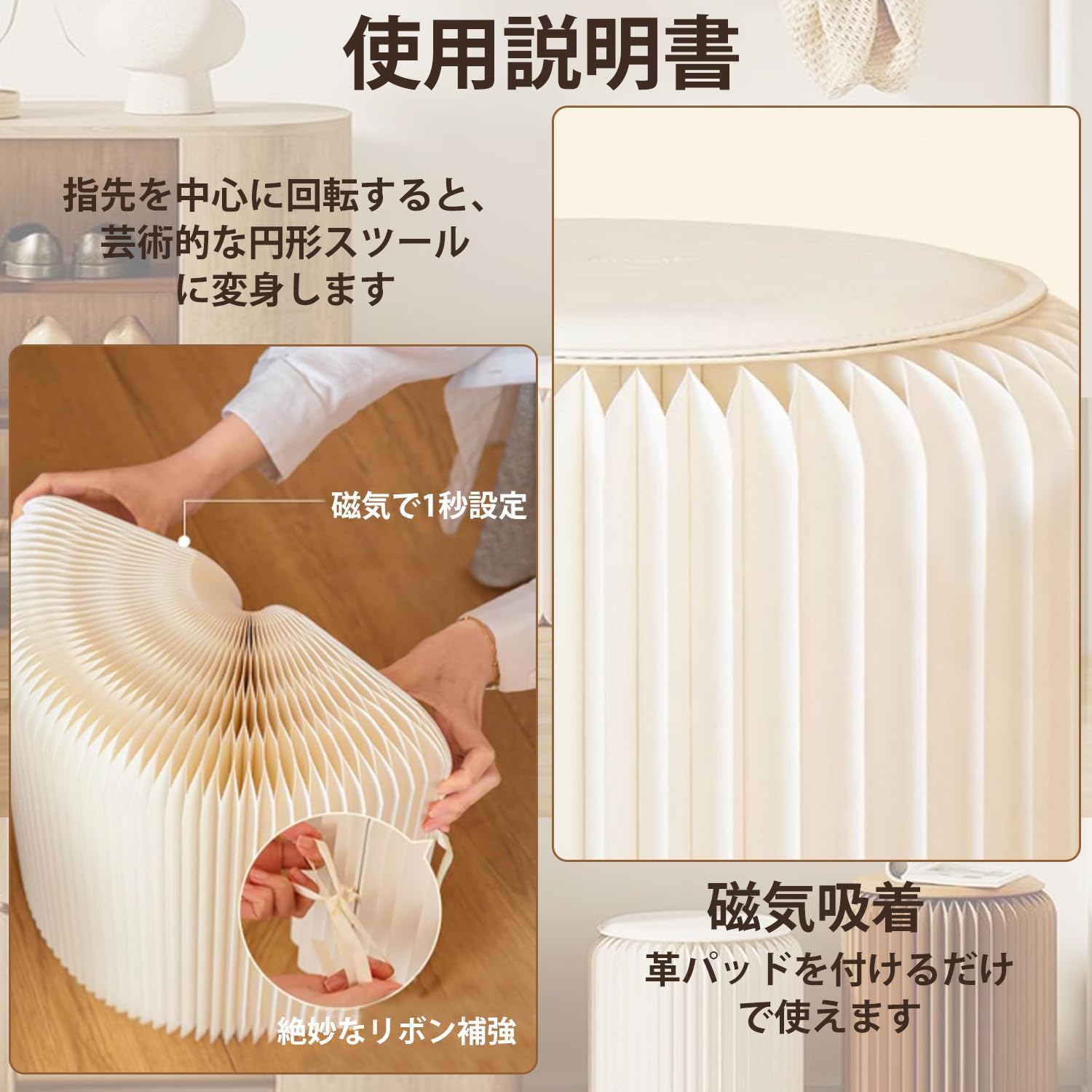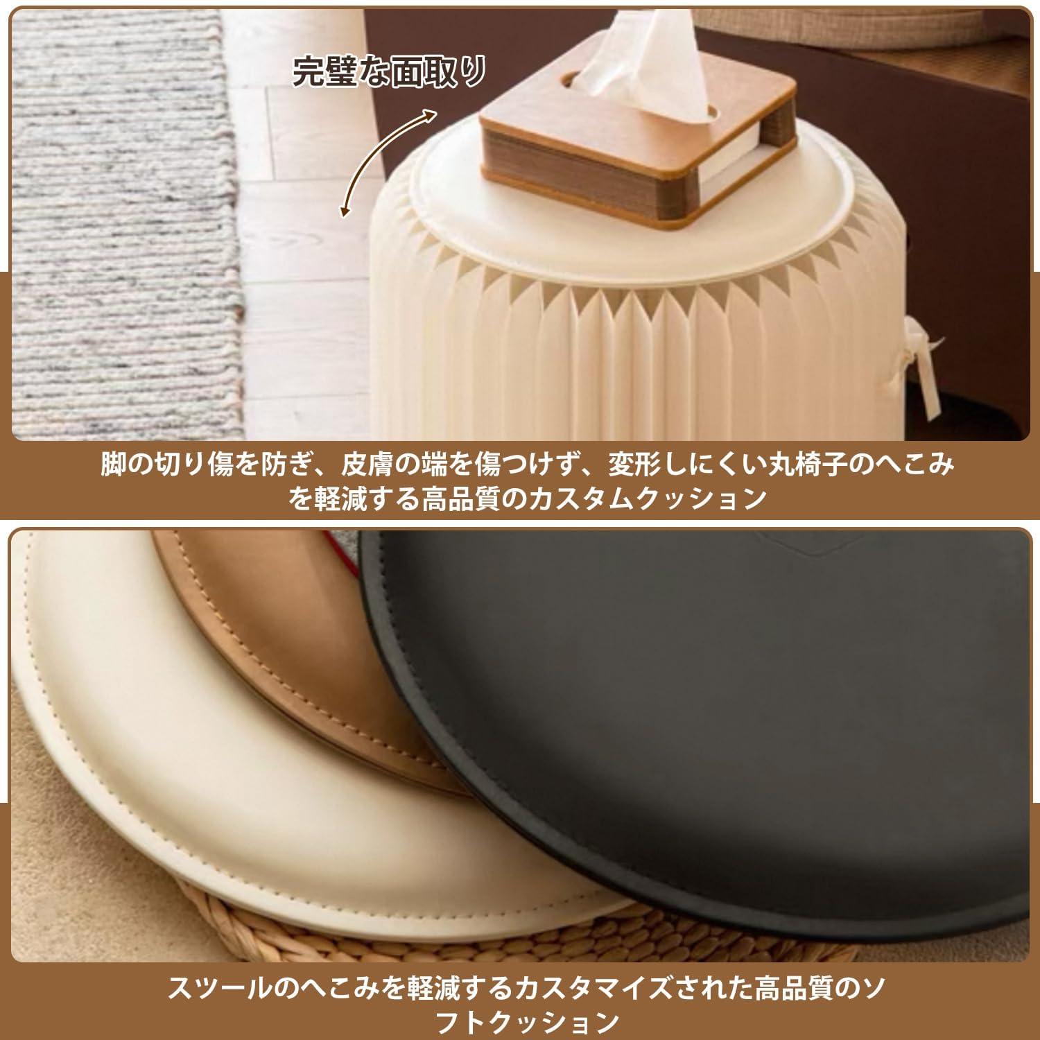 折りたたみ ペーパースツール 丸椅子 軽量ポータブル 家具フットスツール 耐荷重300kg 撥水 ハニカム構造 クッション付き 玄関/リビング/店舗/車/屋外用,白, 30*32cm