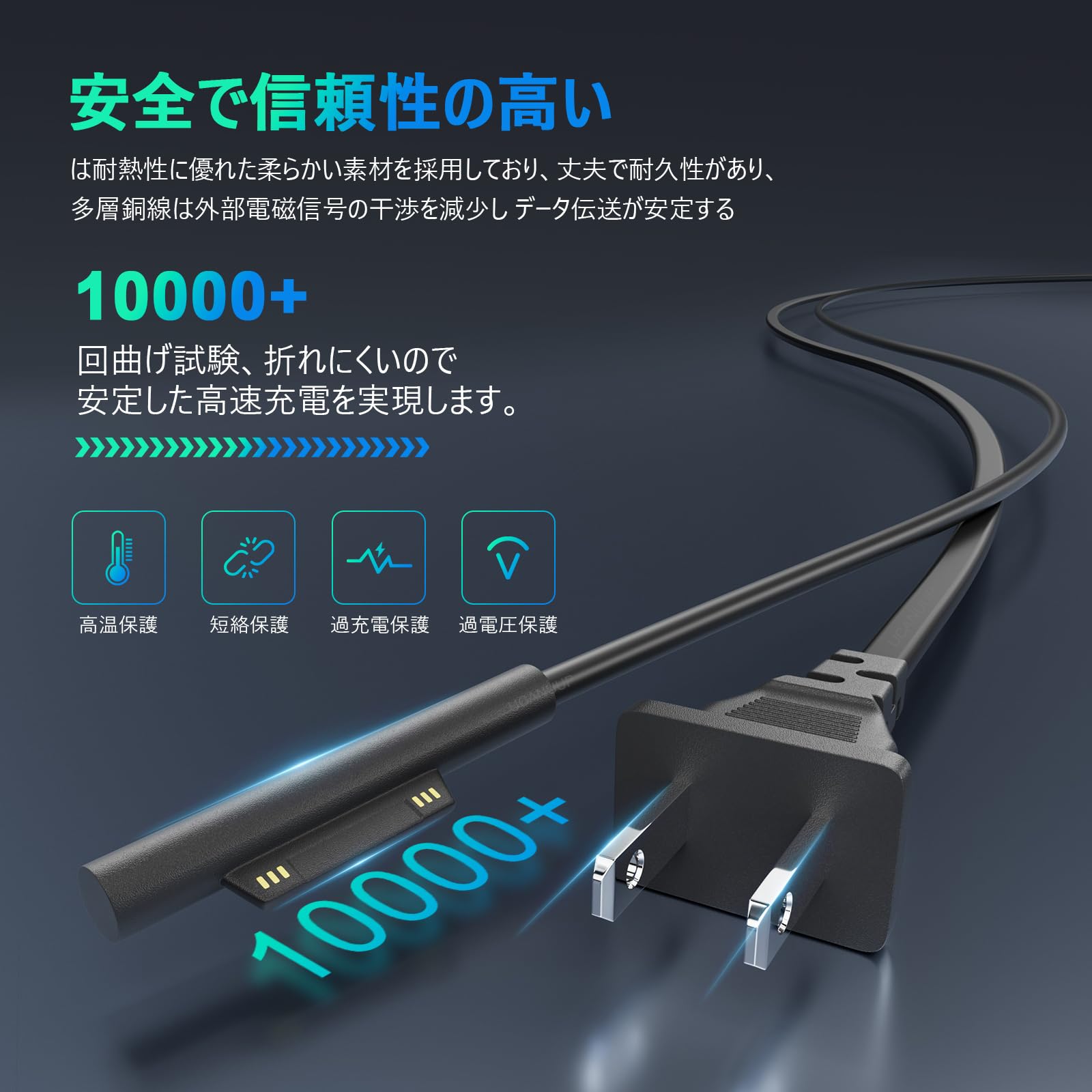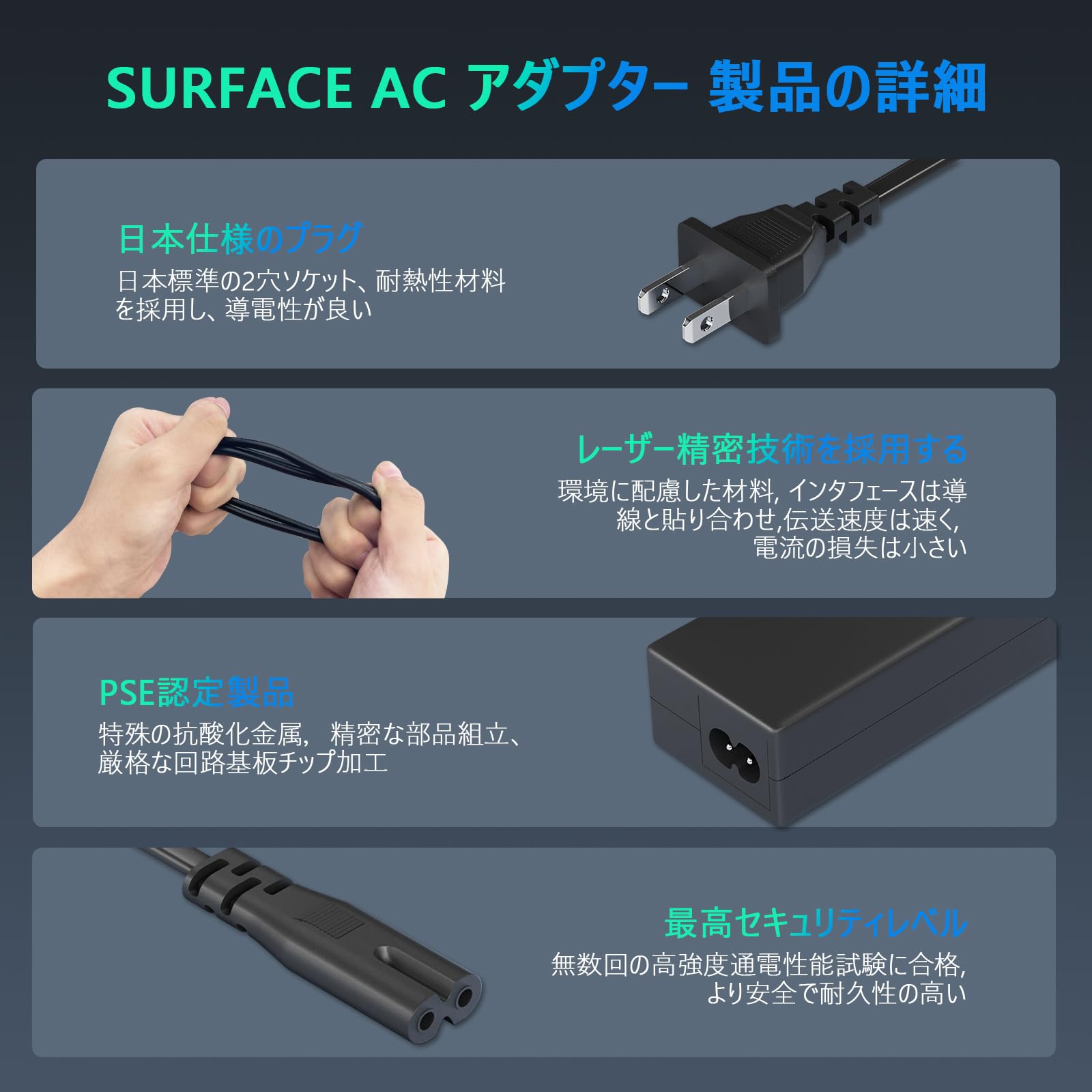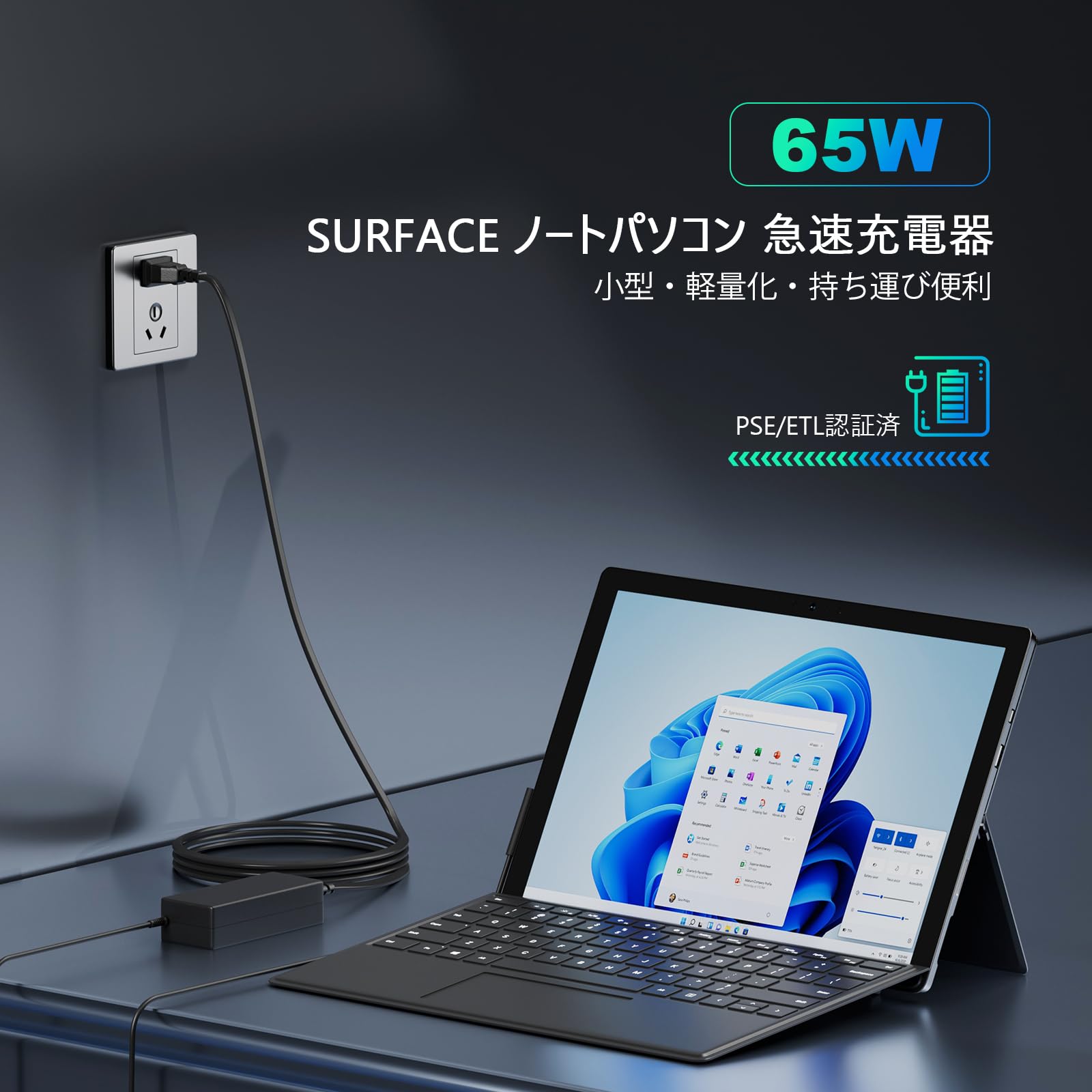 65W サーフェス Surface 充電器 ACアダプター 対応 Surface Microsoft ノートパソコン Pro3/Pro4/Pro5/Pro6/Pro7/Pro8/Pro9 互換Surface Book Surface Go 1706/1800/1625/1735/1736/1963/1796/2105/2062電源アダプター 充電ケーブル【PSE規格】