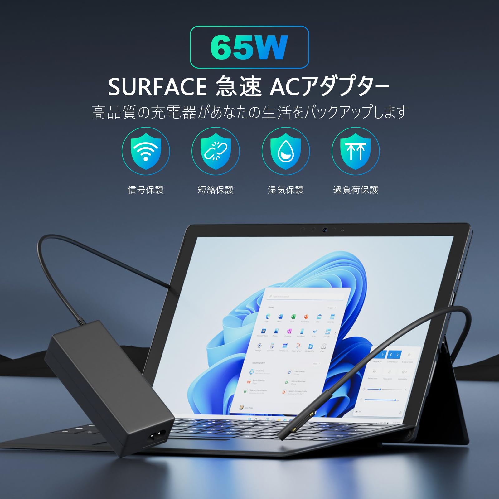 Surface Pro 充電器, 15V 4A 65W 汎用マイクロソフト サーフェス 充電器 Surface ACアダプター for Microsoft Surface Pro9 Pro8 Pro7 Pro6 Pro5 Pro4 Pro3, Surface Laptop 4 Laptop 3 Laptop 2 Laptop 1, Surface Go2 Go, Surface Laptop go, Surface Pro X, Surface BookなどノートPCやタブレット互換用電源アダプター Su