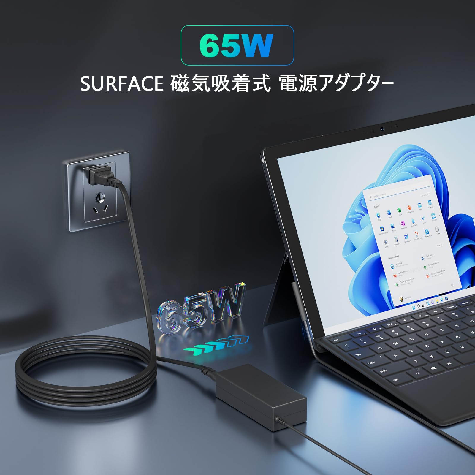 Surface 充電器 65w GaN PD充電器Surface充電ケーブルSurface Pro 3/4/5/6/7/8/9/X、Surface go、Surface Laptop対応 USB-AとUSB-C同時に給電