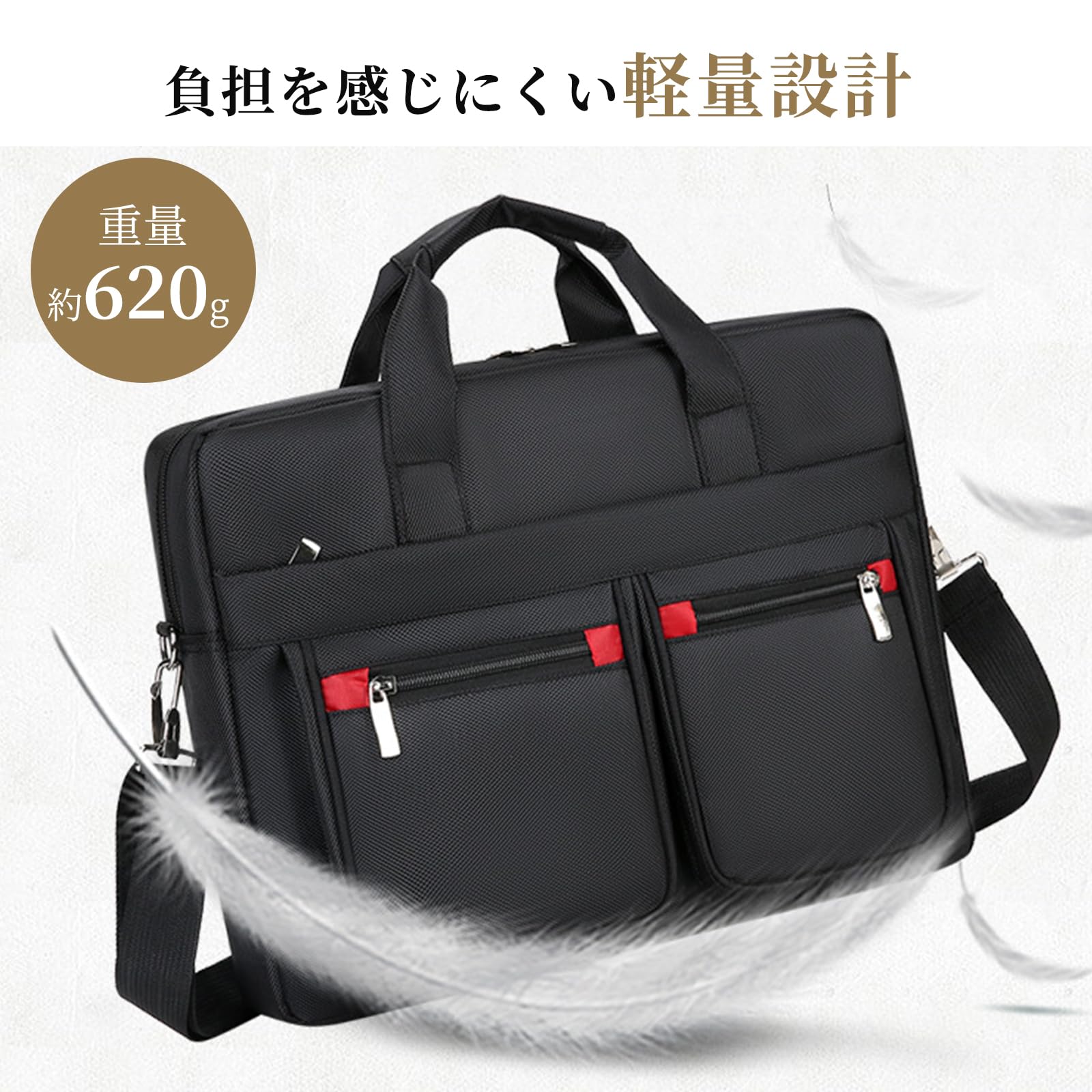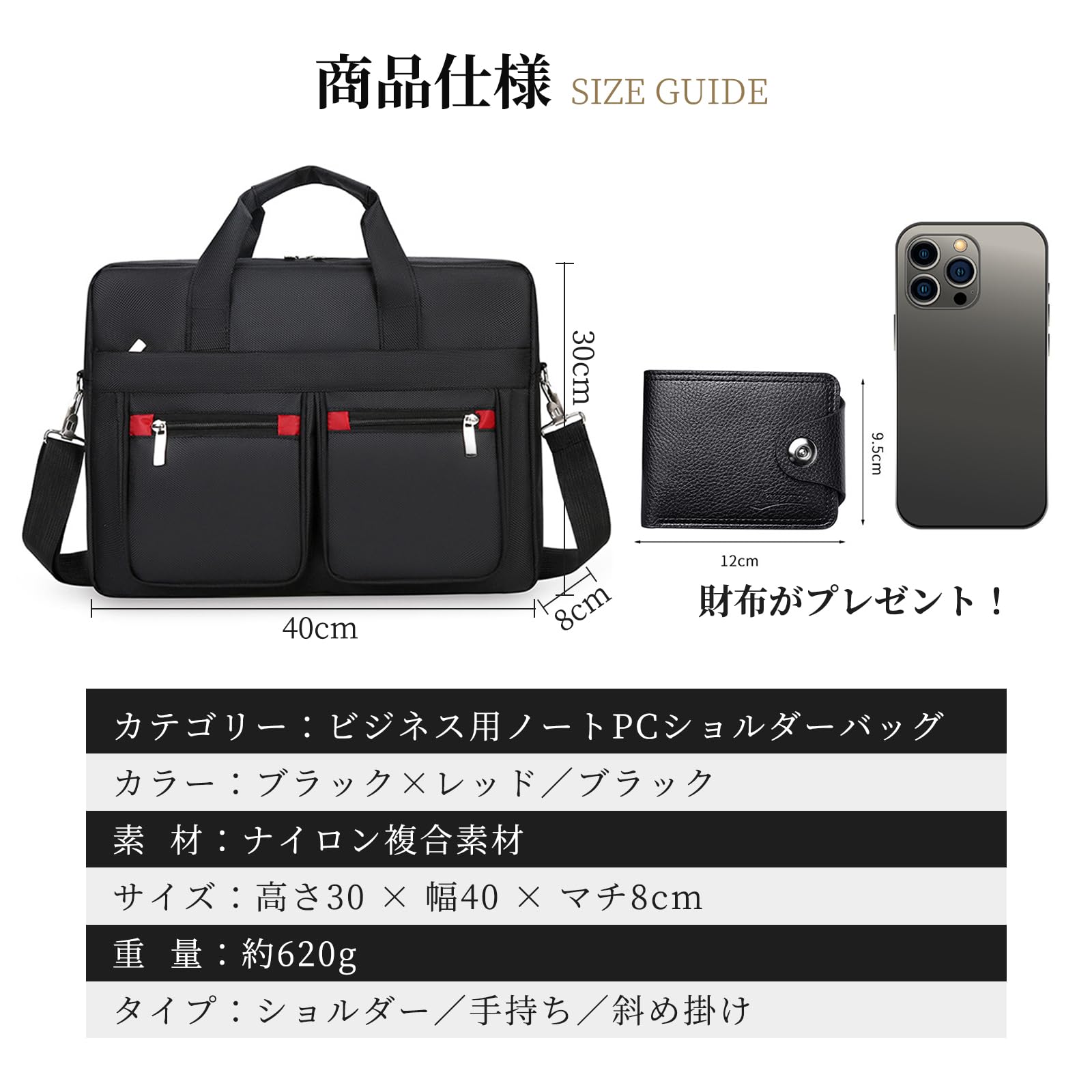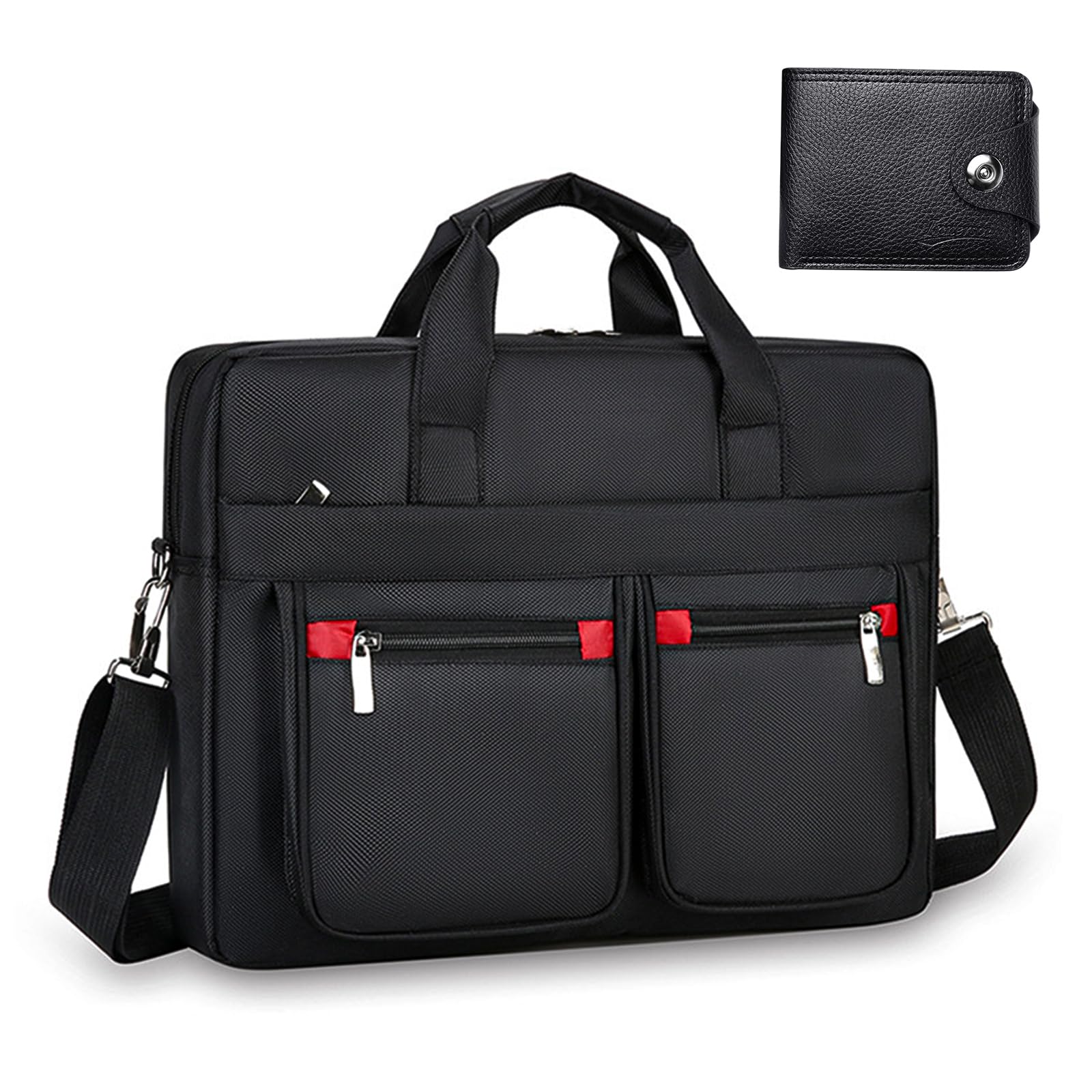 [STEEL-LAND] ナイロン複合ブリーフケース 3通りの持ち方(手持ち/ショルダー/クロスボディ)ノートPC用コンパートメント付き 多ポケット大容量 A4サイズ対応 40×30×8cm 入社式 防水加工 ノートPCケース 大容量 通学 出張 通勤 仕事 通学 男女兼用(ブラック+レッド) [並行輸入品]