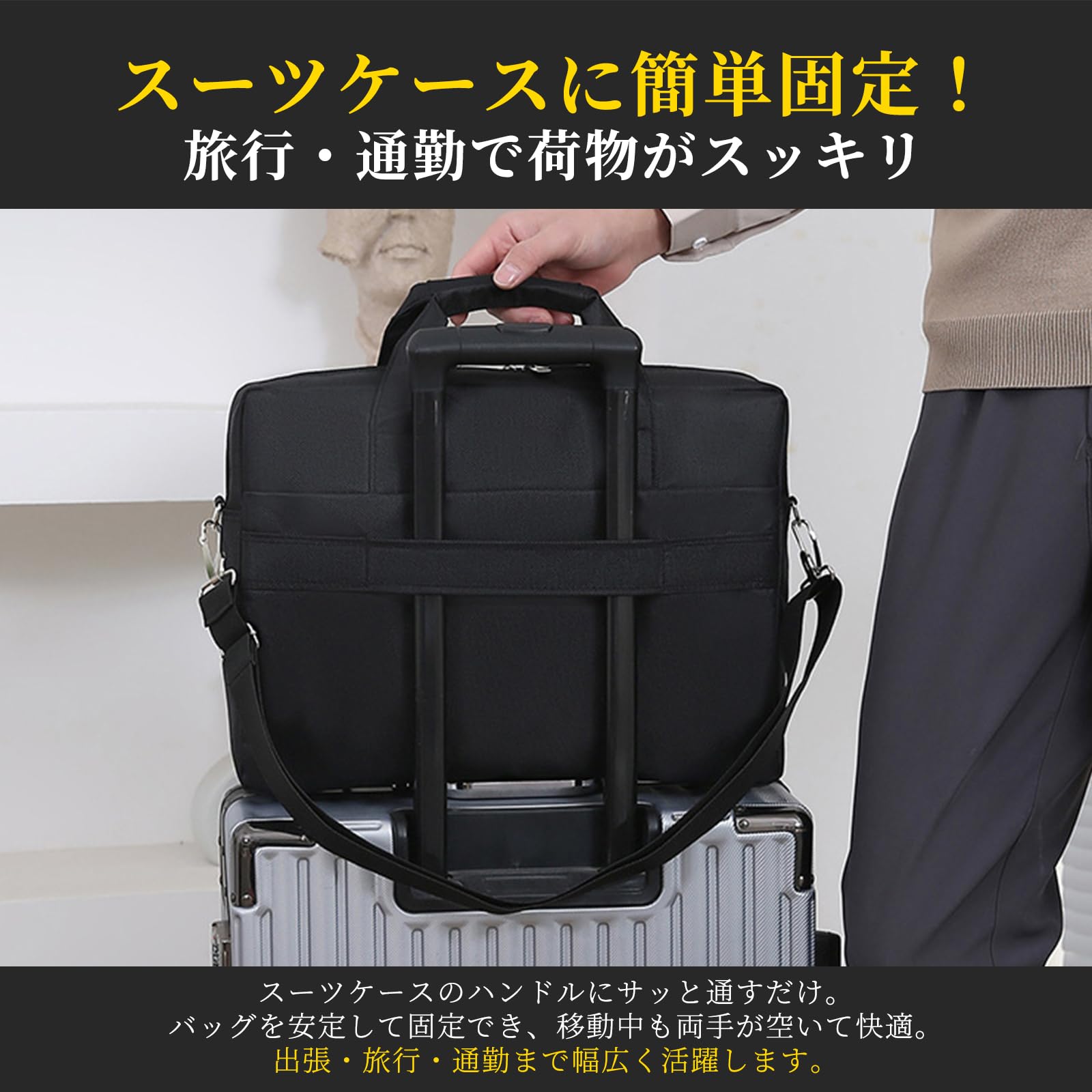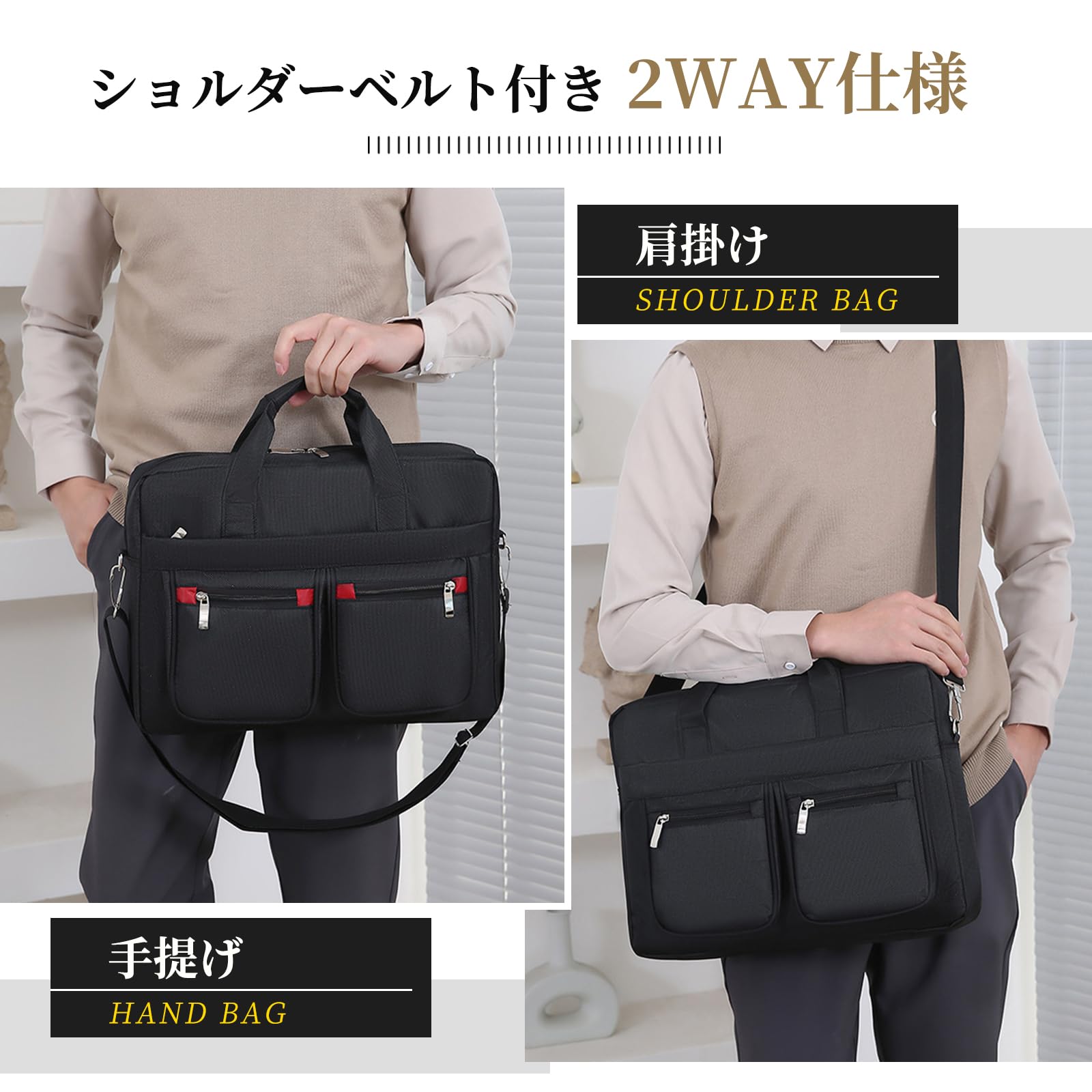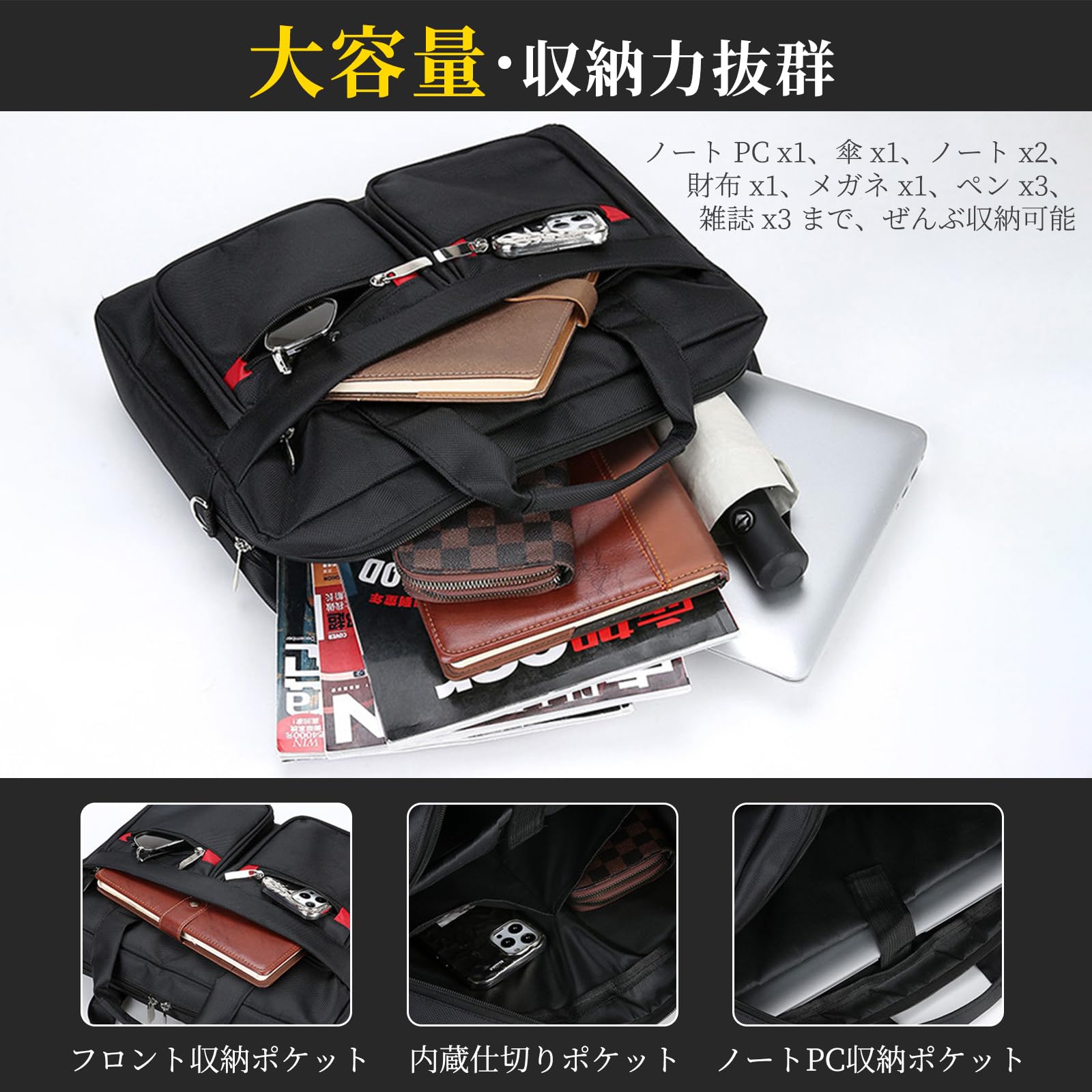 [TerraShine] ビジネスバッグ ハンドバッグ ブリーフケース ショルダーかけ 大容量 軽量 耐衝撃 撥水 A4/PC対応 就活 通勤 メンズ (ブラック)