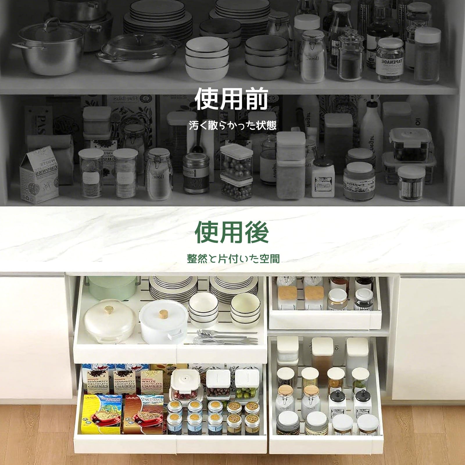 キッチン 収納棚 2段シンクオーガナイザーと収納 スパイスラック 台所 スライド式 調味料いれ 省スペース 多目的シンクオーガナイザー キッチンやバスルームのシンクの下と上に適しています