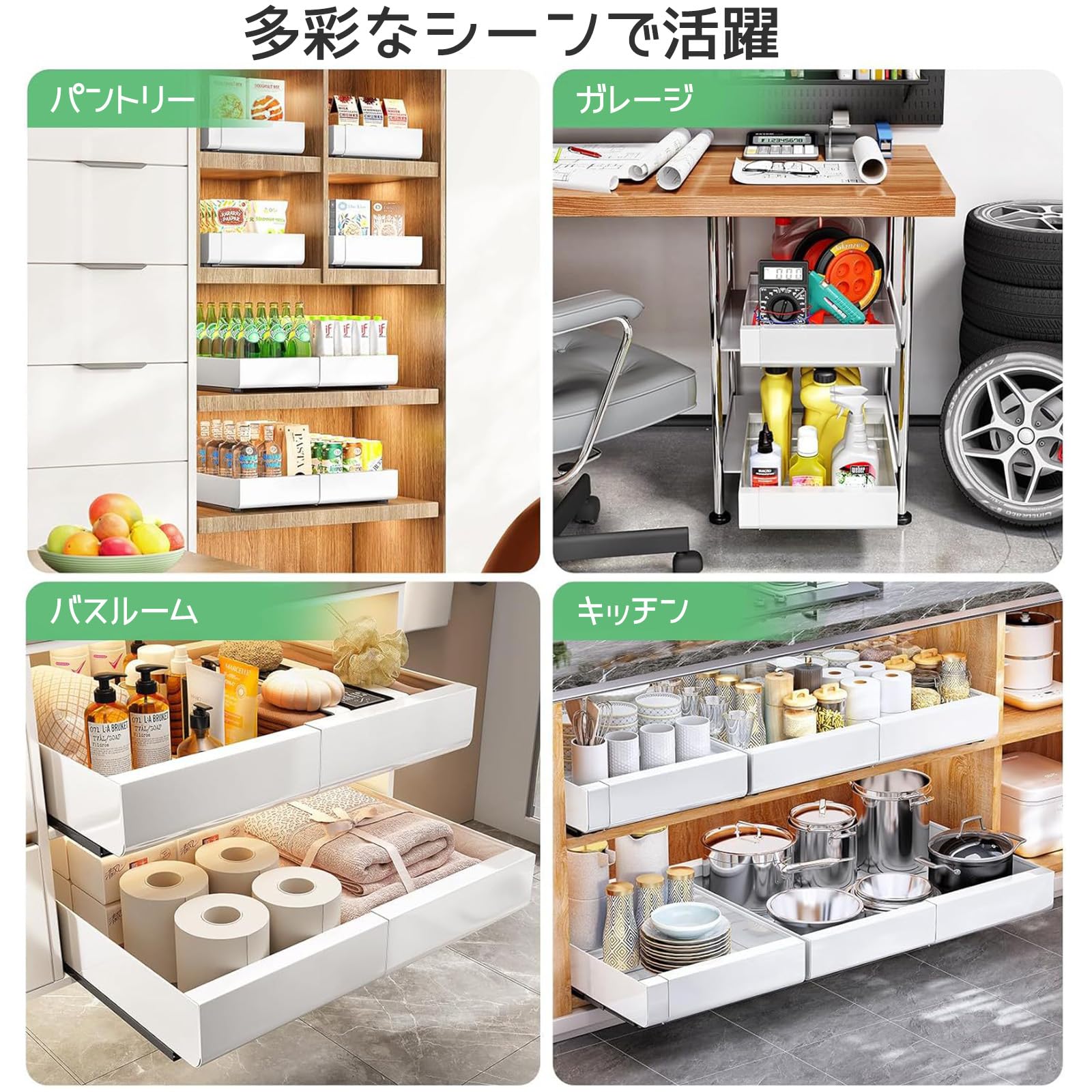 HASONA シンク下 収納 スライド式 キッチン収納 2個セット L字型 2段 引き出し シンク下収納ラック 洗面台下 調味料 収納 金属製 高さ調節可能 大容量 組立簡単 省スペース キッチン/洗面所/バスルーム ホワイト