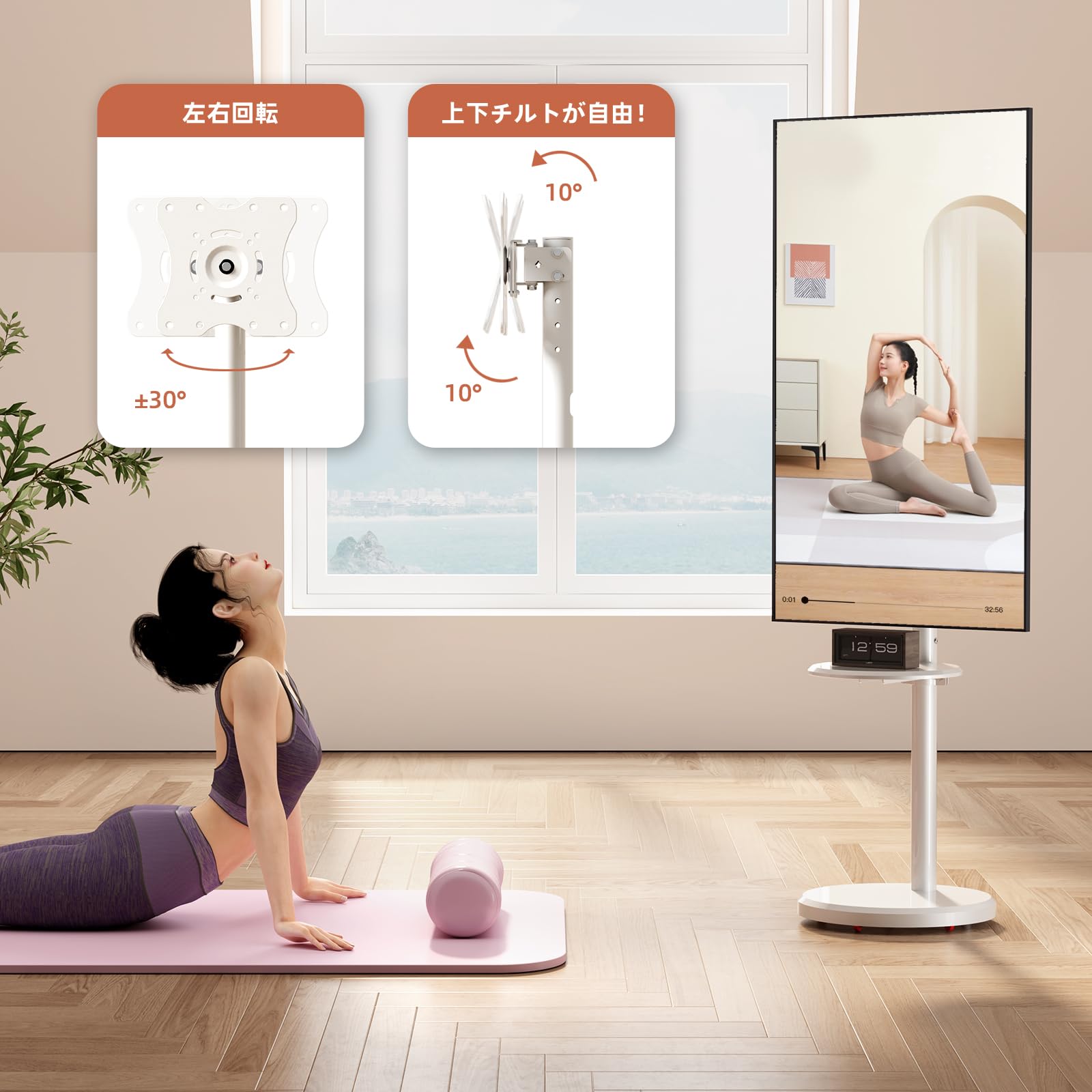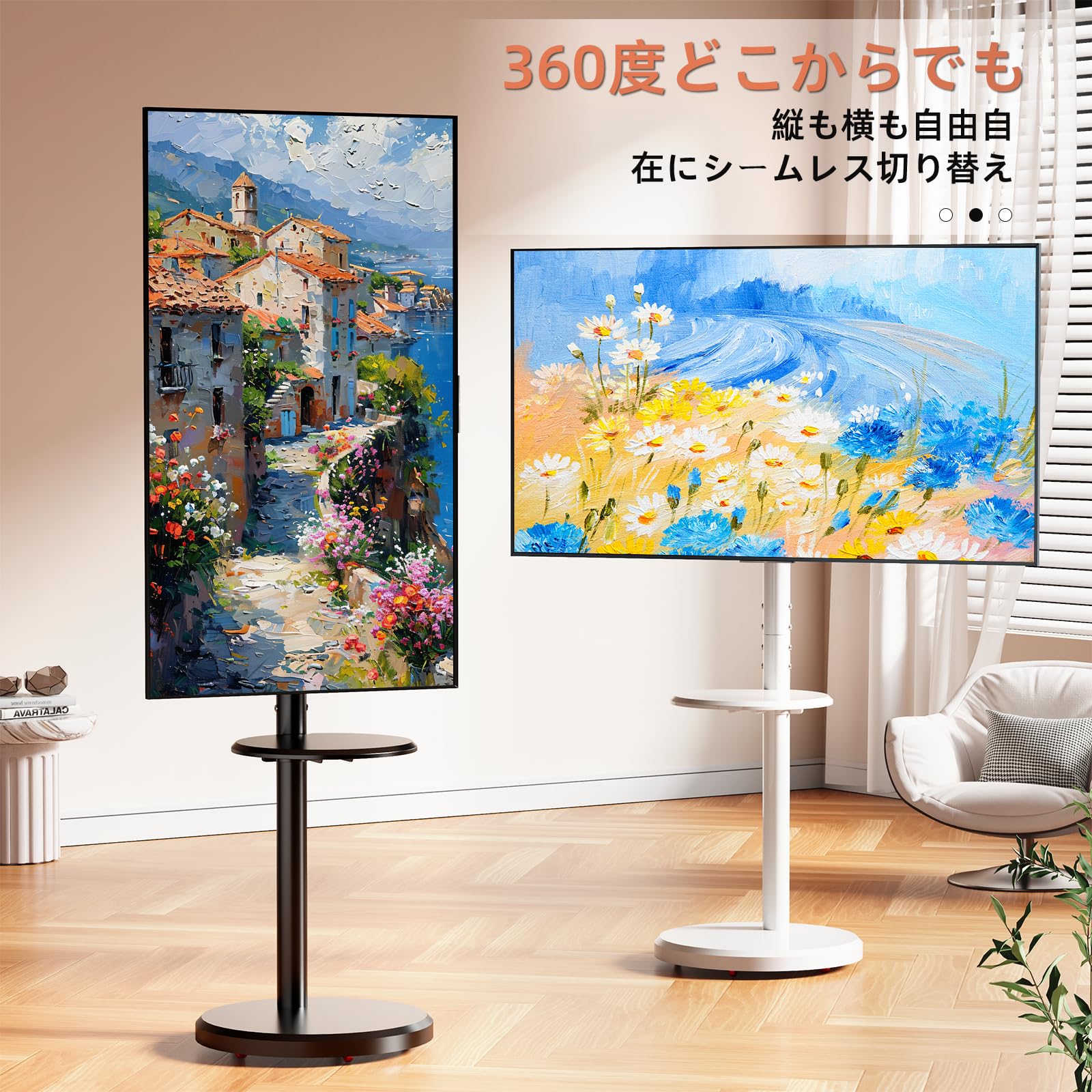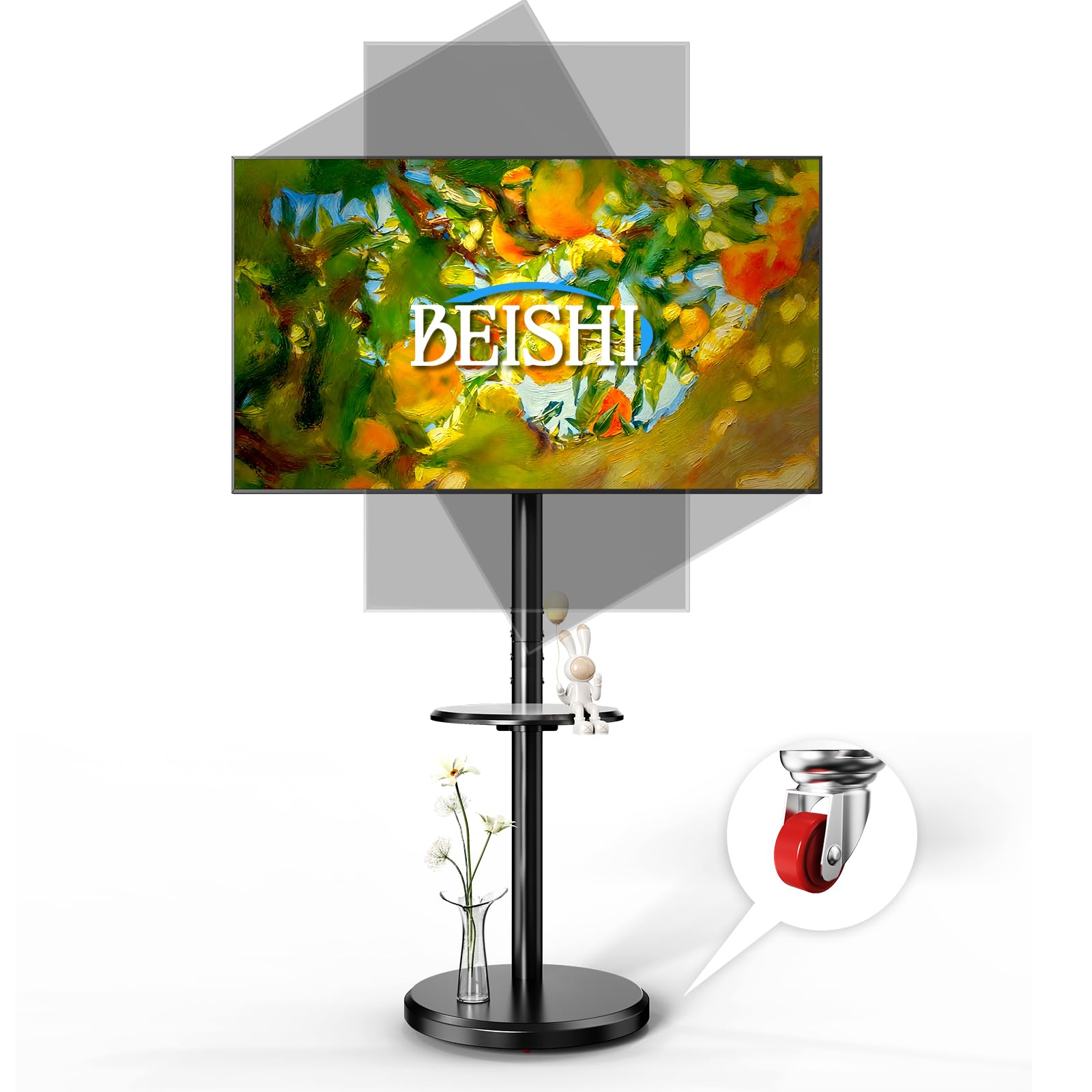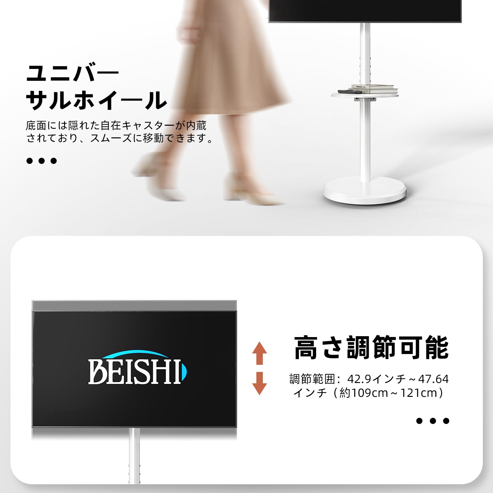 FITUEYES テレビスタンド 32~70インチに対応 キャスター付き テレビ台 壁寄せ ハイタイプ tvスタンド 移動式 自立式 tv stand 幅60cmの木製台座 耐荷重40kg VESA600x400mmまで 高さ調整可能 左右首振り可能 木目調 ホワイト