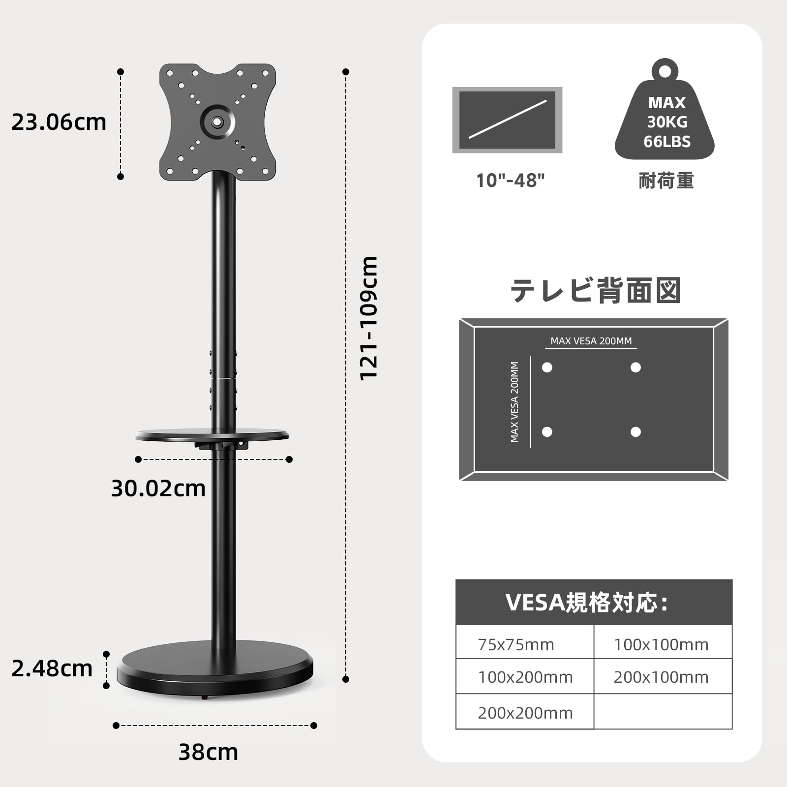 AOKCOS テレビスタンド 卓上スタンド 32~75インチ対応 大型テレビ対応 壁寄せテレビスタンド テレビ台 卓上地面両用 高さ調節可能 首振り可 荷重50kg TT105301GB