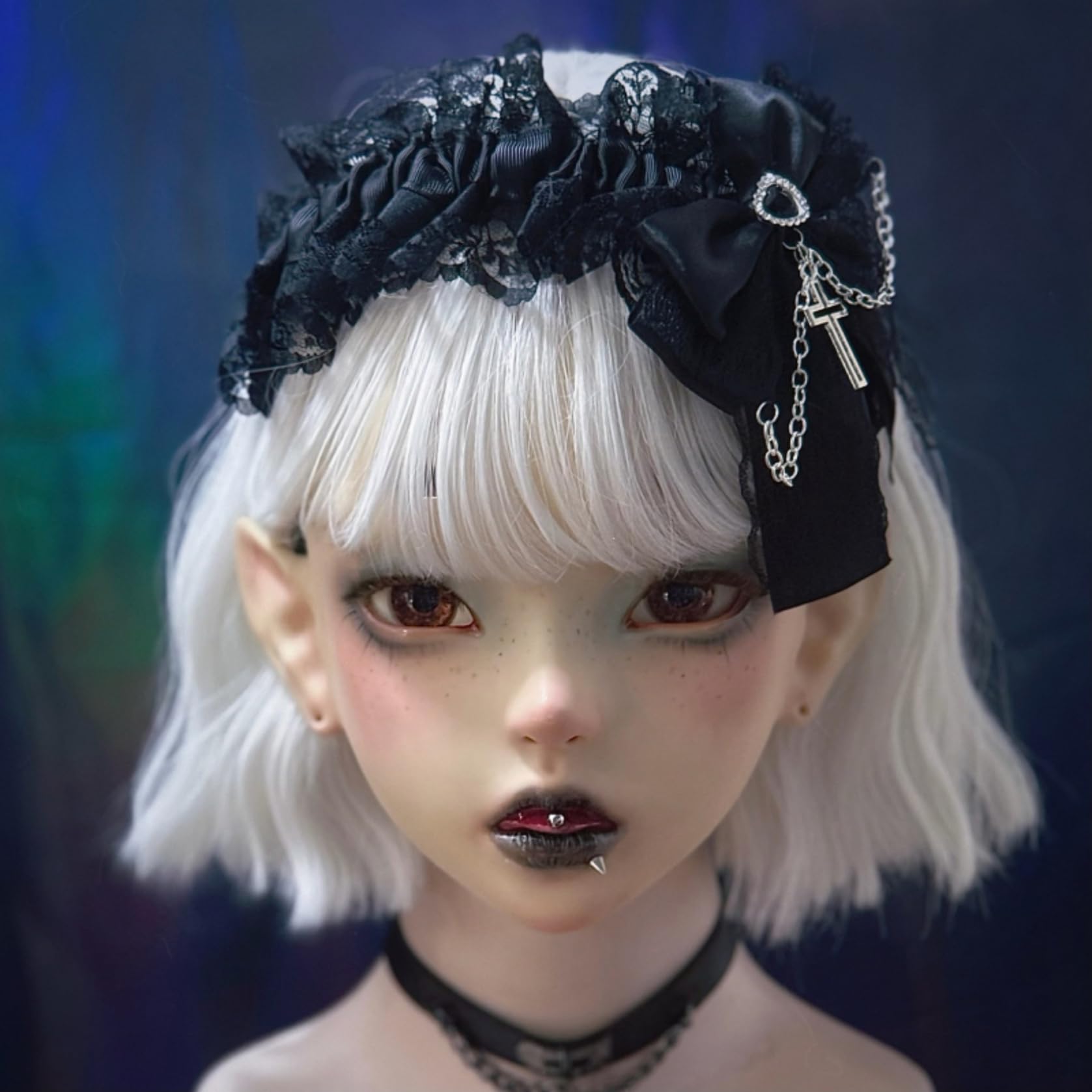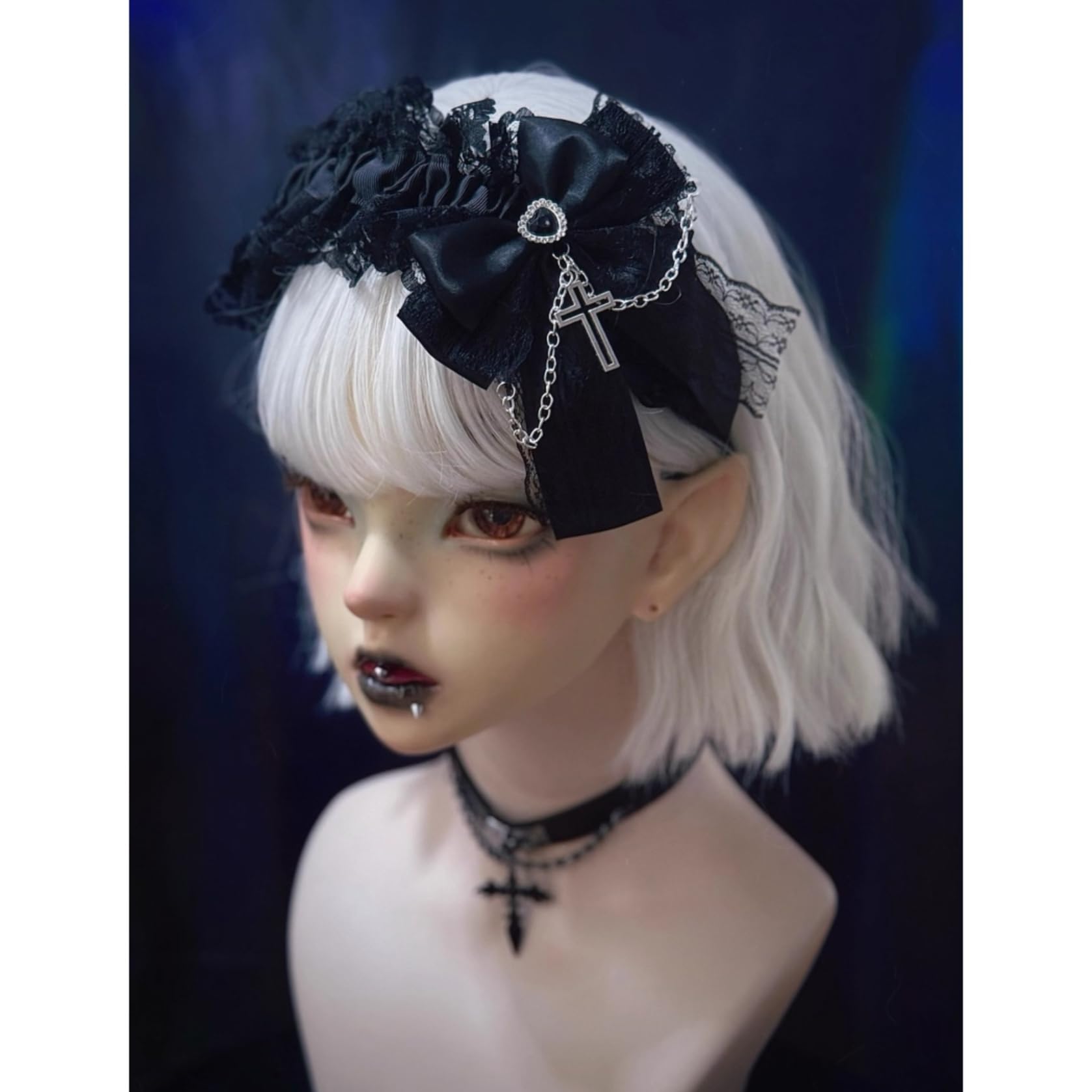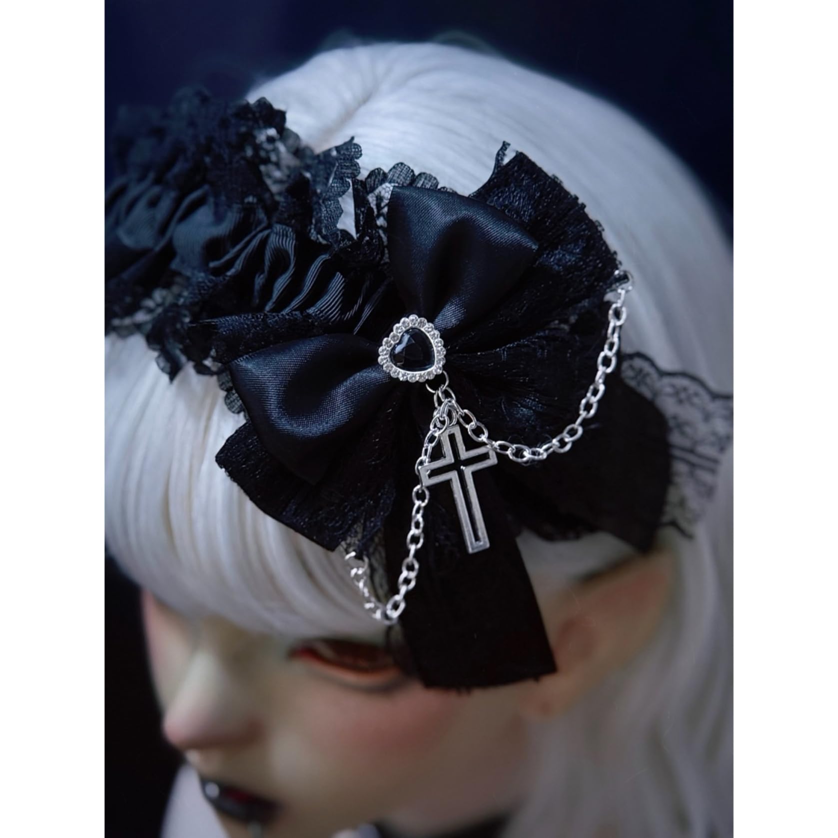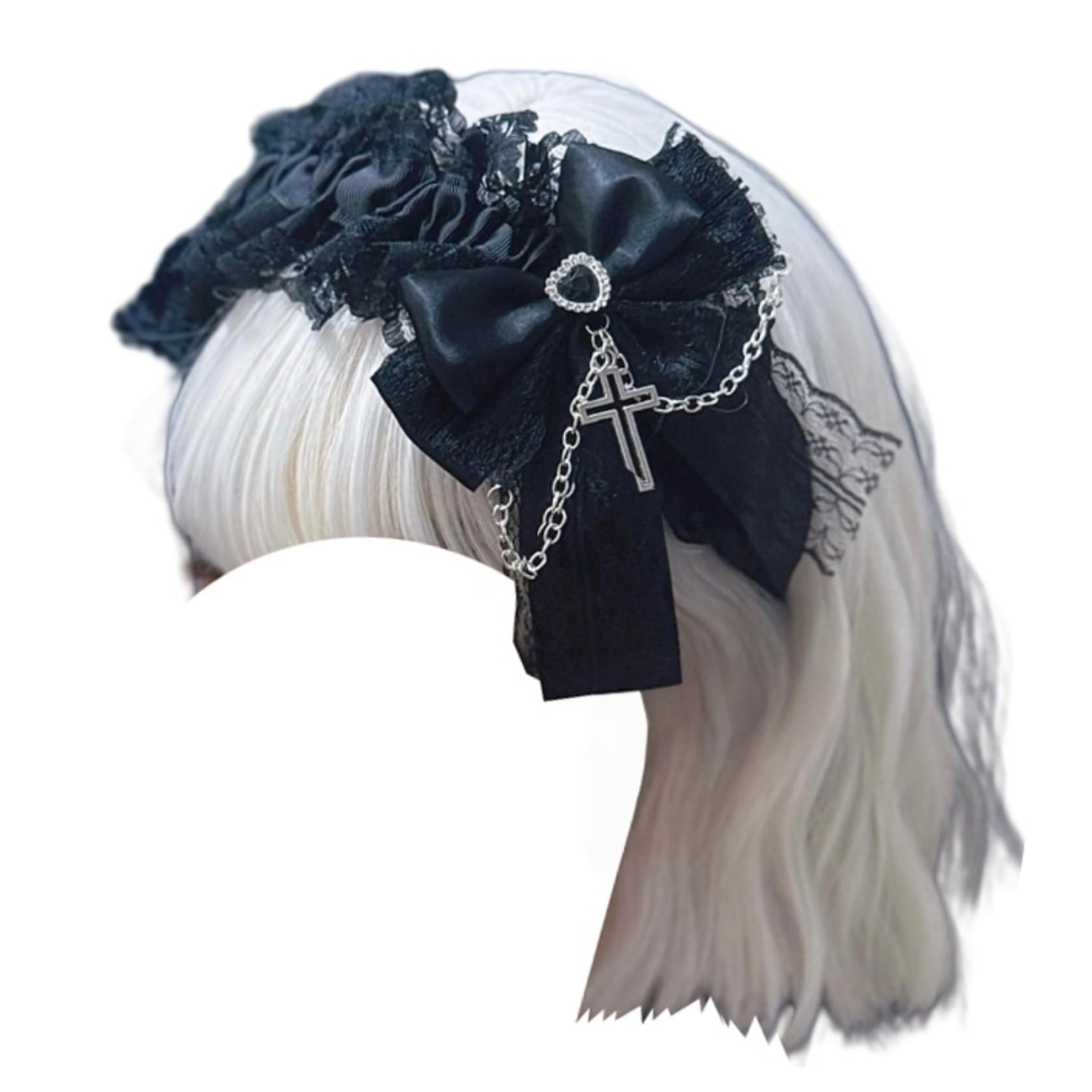 [ボズとガルヤ] カチューシャ 地雷系 ヘッドドレス サブカル系 チェーン ダーク系 ベルト 原宿パンク 髪飾り ロリィタ ゴシック風 蝶結び 黒魔術 コスチューム スタッド コスプレ クロス柄 病みかわ 変装 撮影用