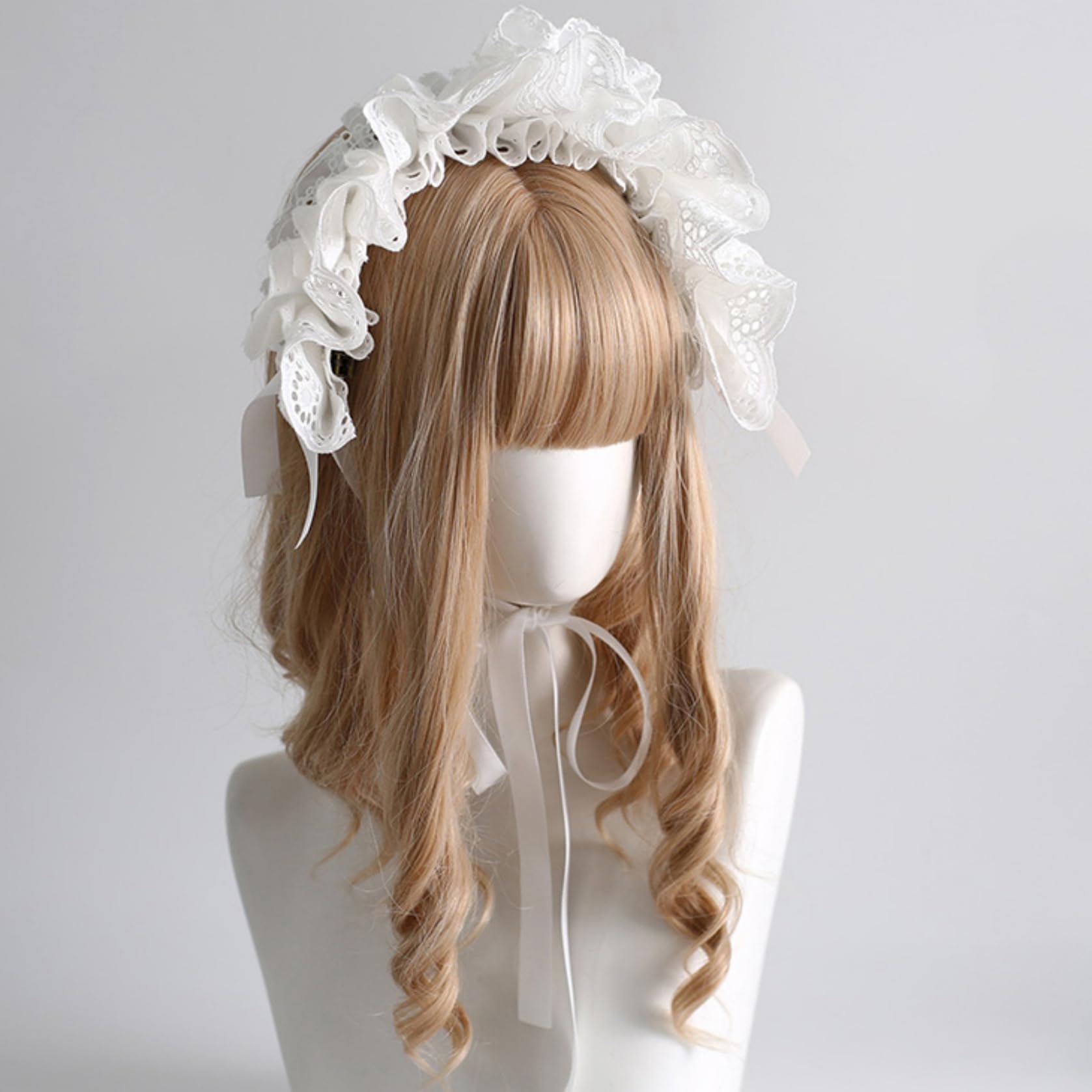 [ボズとガルヤ] コスプレ仮装 小道具 髪飾り 森ガール ヘアアクセサリー ロリィタ フリル 宮殿風 刺繍入り 茶話会 姫系 超可愛い 水色 萌え系 甘ロリ lolita お姫様 チャーム ヘッドドレス 女の子 学園祭 舞台 イベント ファッション