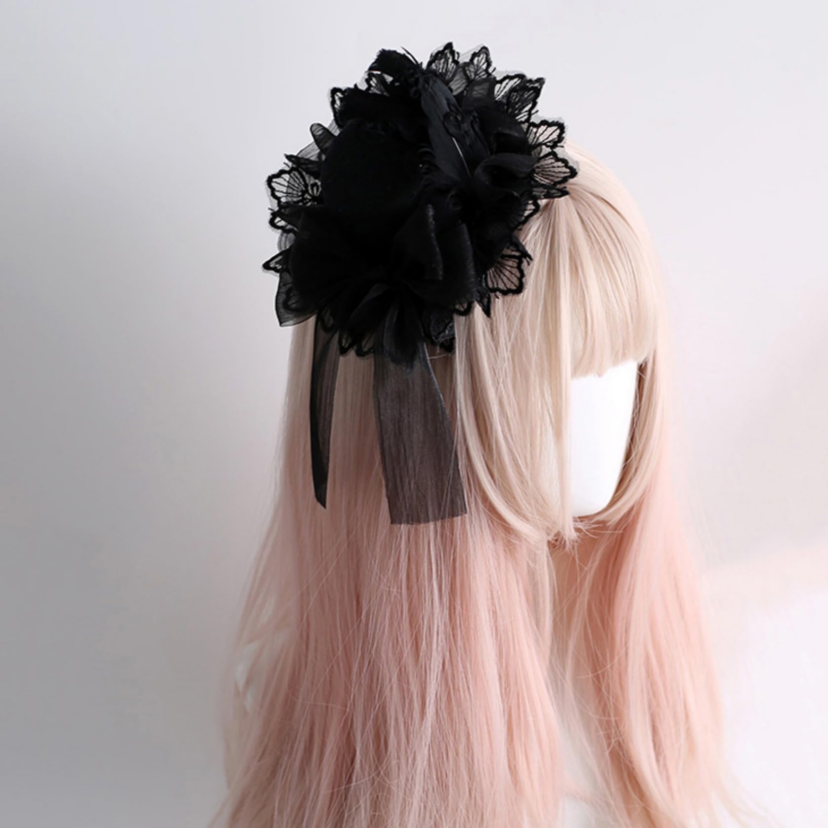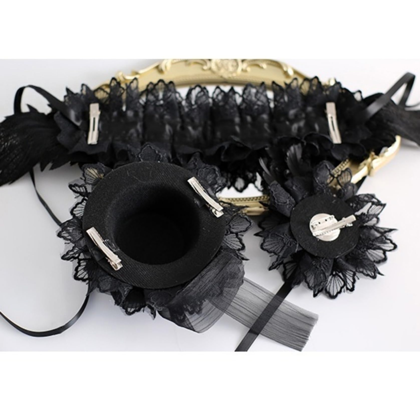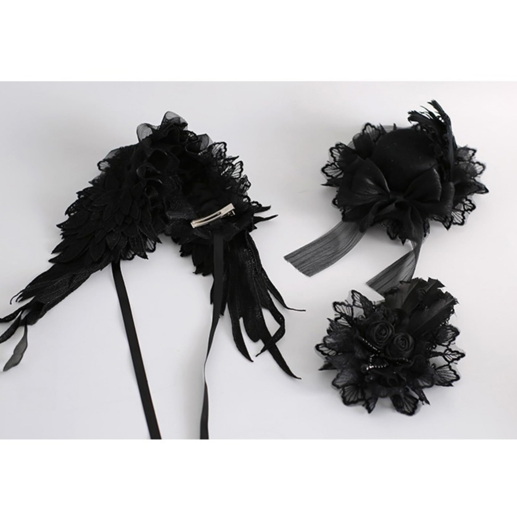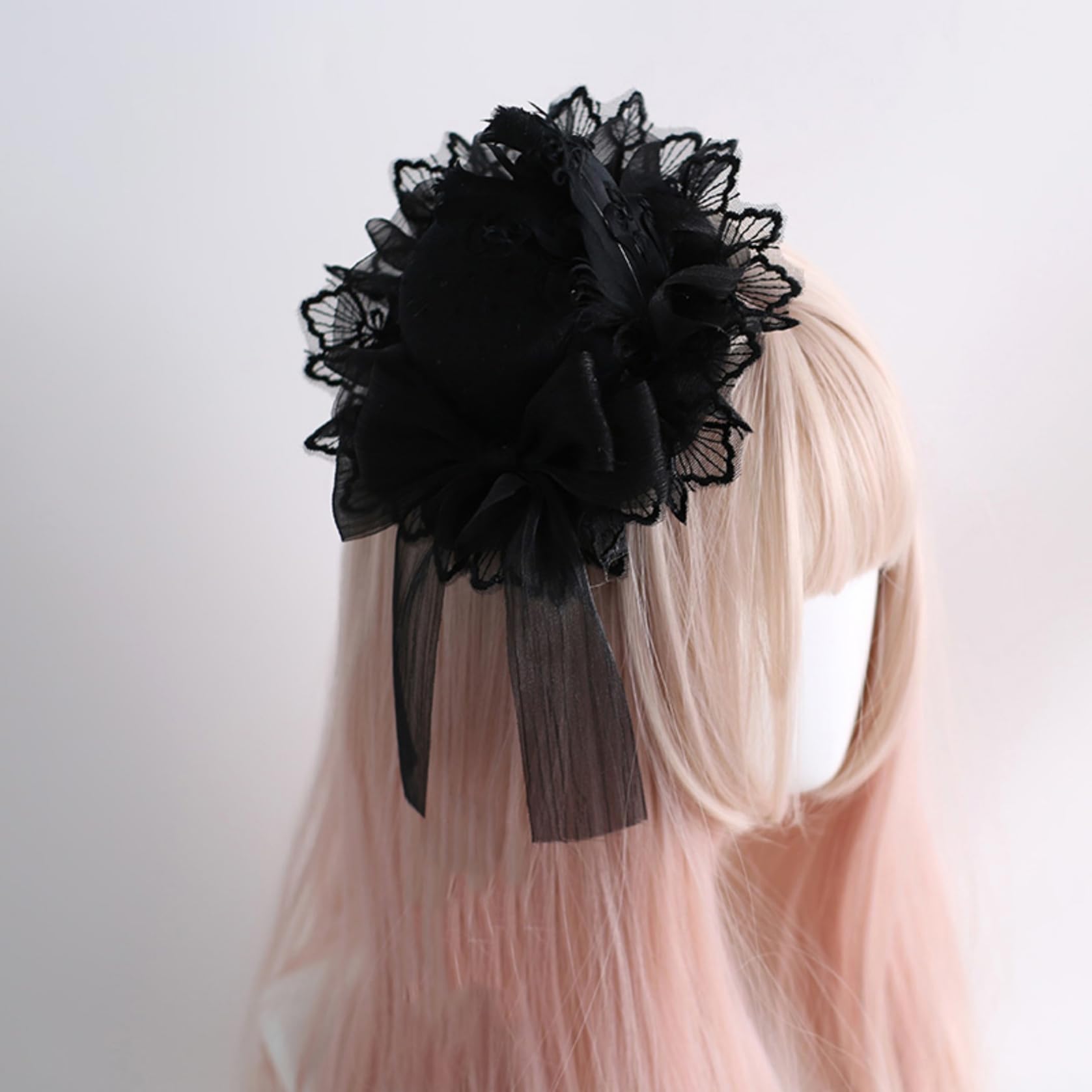 [ボズとガルヤ] ゴスロリ 髪飾り 翼 ヘアアクセサリー ロリータ ミニハット 悪魔 可愛い お姫様 ヘッドドレス ガールズ 黒 リボン付き レース ゴシック イベント ハロウィン コスチューム 学園祭 文化祭 パーティー