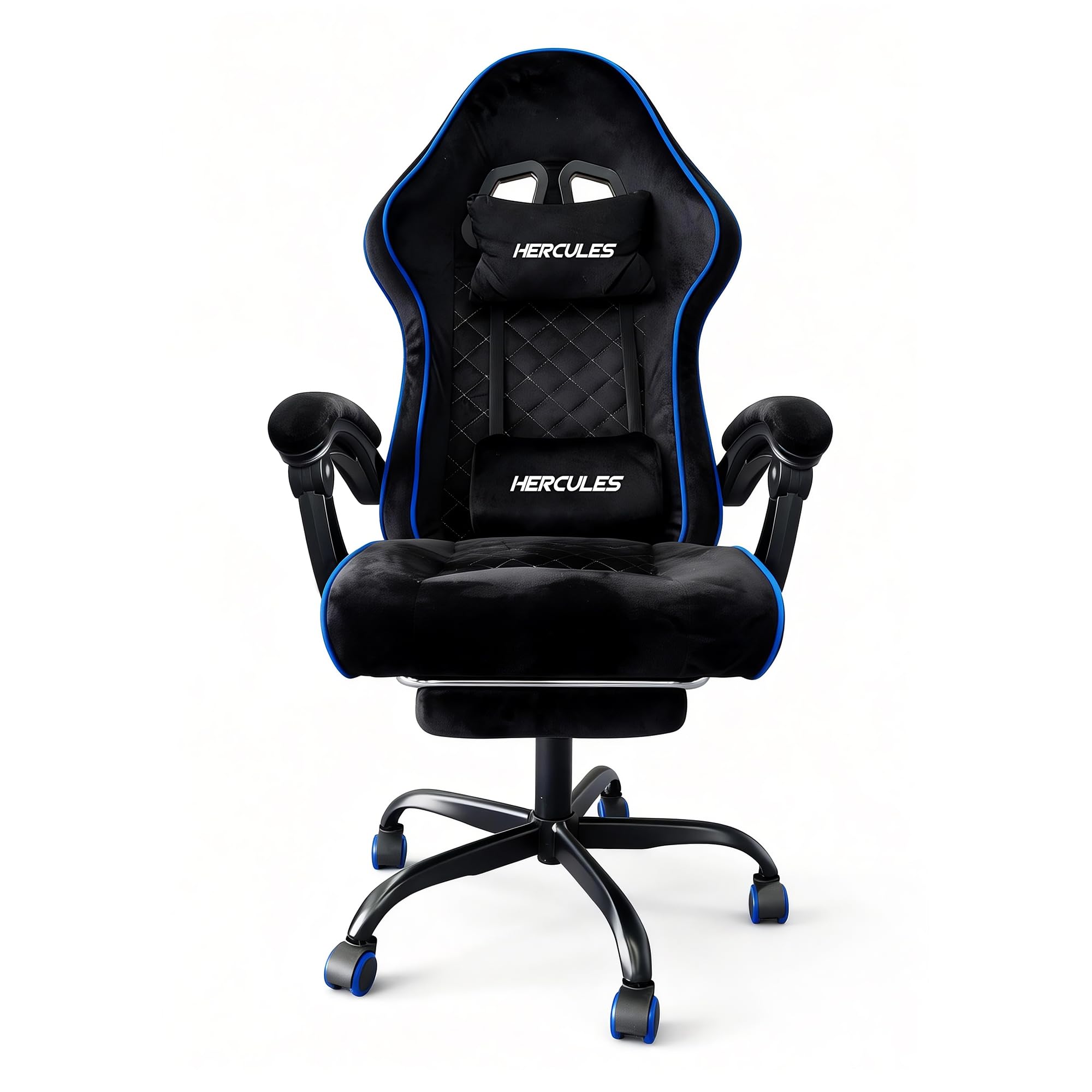 HERCULES ベルベット風 高級素材 通気性 リクライニング145度 フットレスト付き 在宅ワークチェア ワイド座面