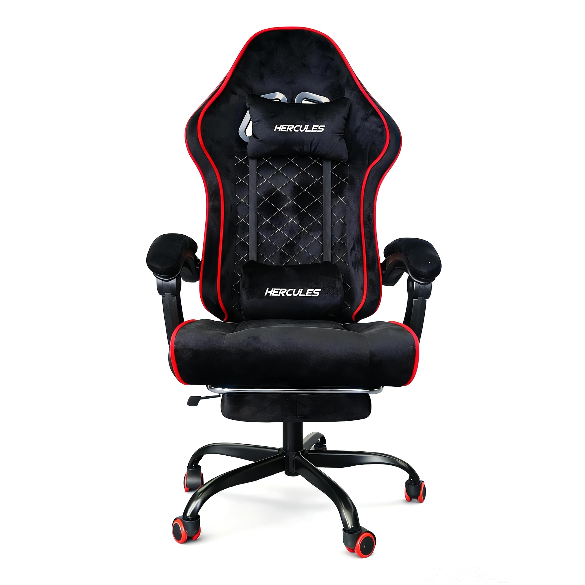 HERCULES ベルベット風 高級素材 通気性 リクライニング145度 フットレスト付き 在宅ワークチェア ワイド座面