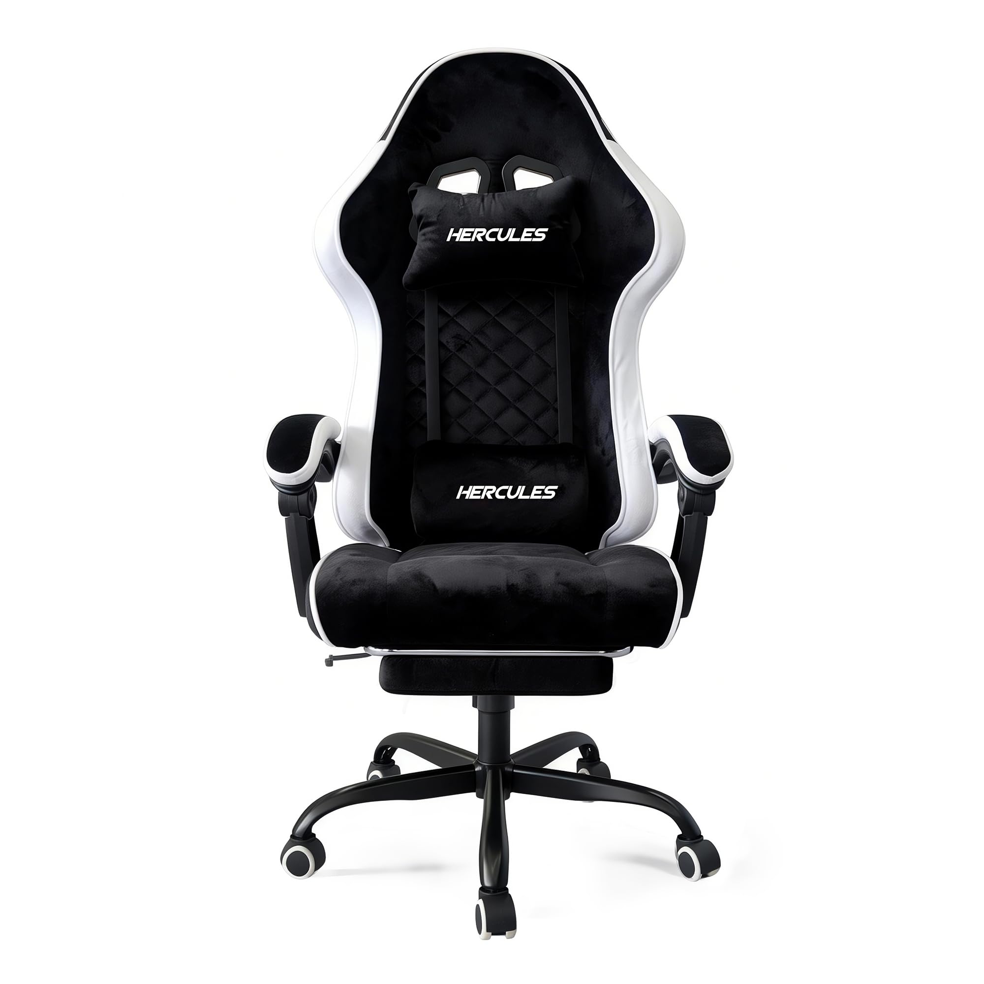 HERCULES ゲーミングチェア ファブリック リクライニング ゲームチェア オットマン付き ベルベット ソファーの座り心地 通気性 pcチェア オフィスチェア デスクチェア ヘッドレスト&ランバーサポート 連動式アームレスト(ブラック&ホワイト)