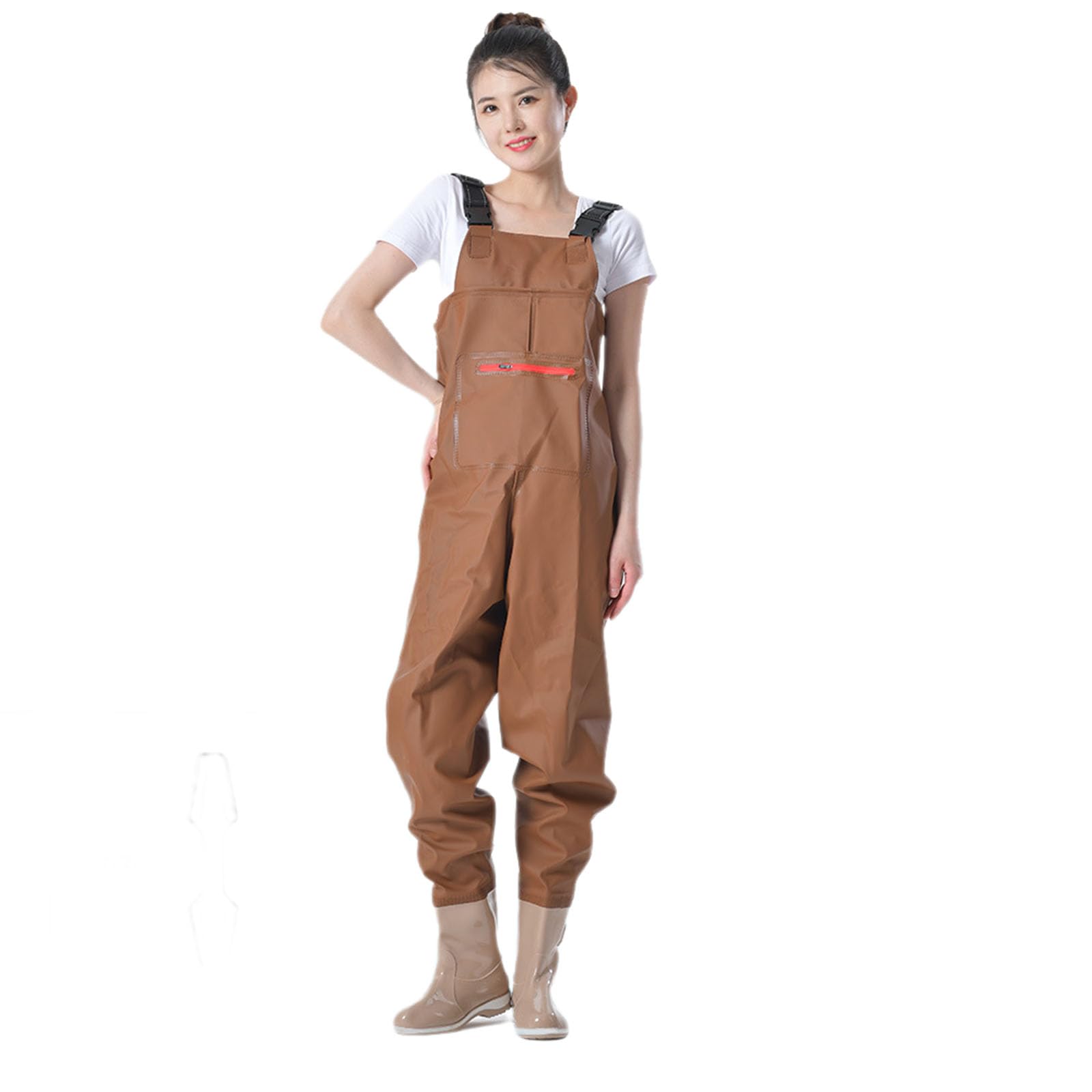 ウェーダー 防水 チェストハイウェーダー 釣り用スーツ 簡単着脱 防水ズボン 長靴 怪我防止 厚底ソール 滑り防止靴底 田植え 魚市場 水場仕事 渓流 海 レッドブラウン US8 25.5cm
