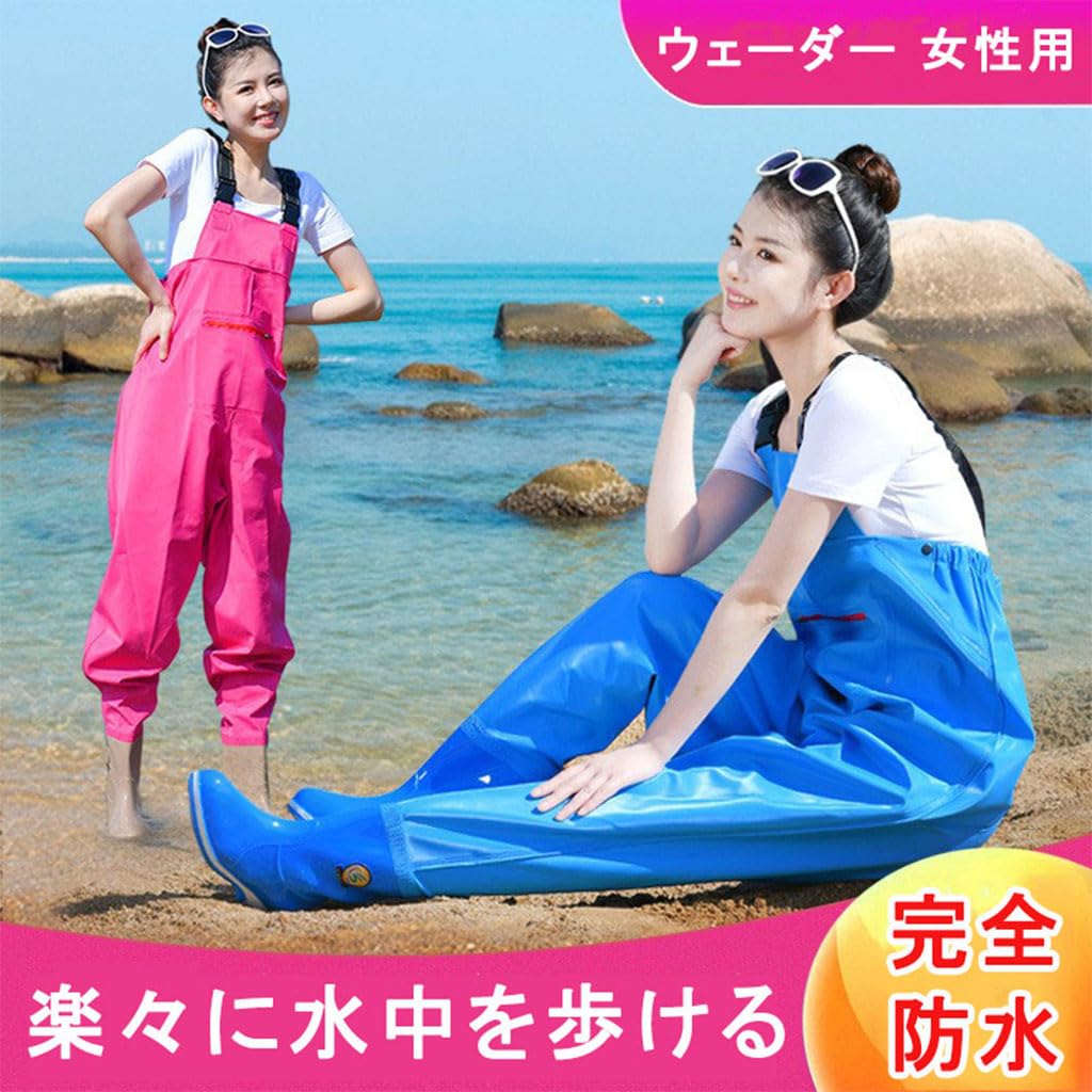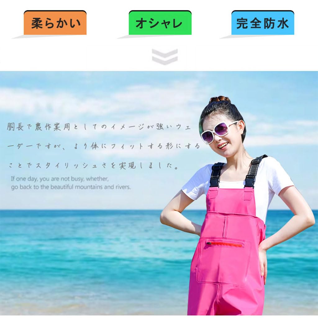 [HUAXI] ウェーダー 女性向け チェストハイウェーダー 胴長靴 完全防水 透湿 女性用 おしゃれ チャックポケット 釣り 漁業 潮干狩り 田植え 渓流 作業用 ラジアルソール 丈夫 レディース