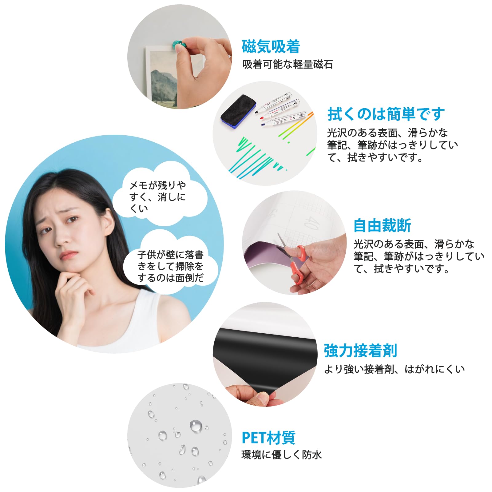 Putenahoto ホワイトボード シート マグネット対応 複数サイズオプション ホワイトボードシート 貼って剥がせる粘着式 豪華セット 40x80cm(適格請求書発行可)