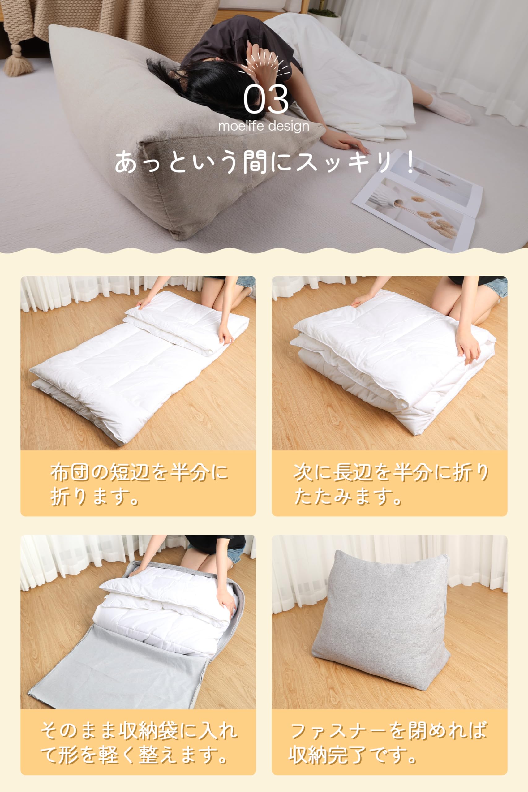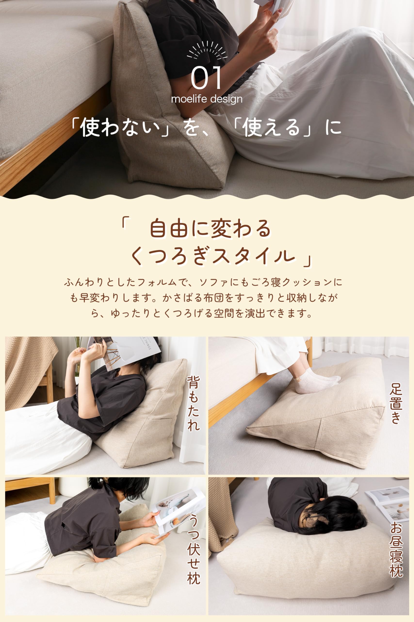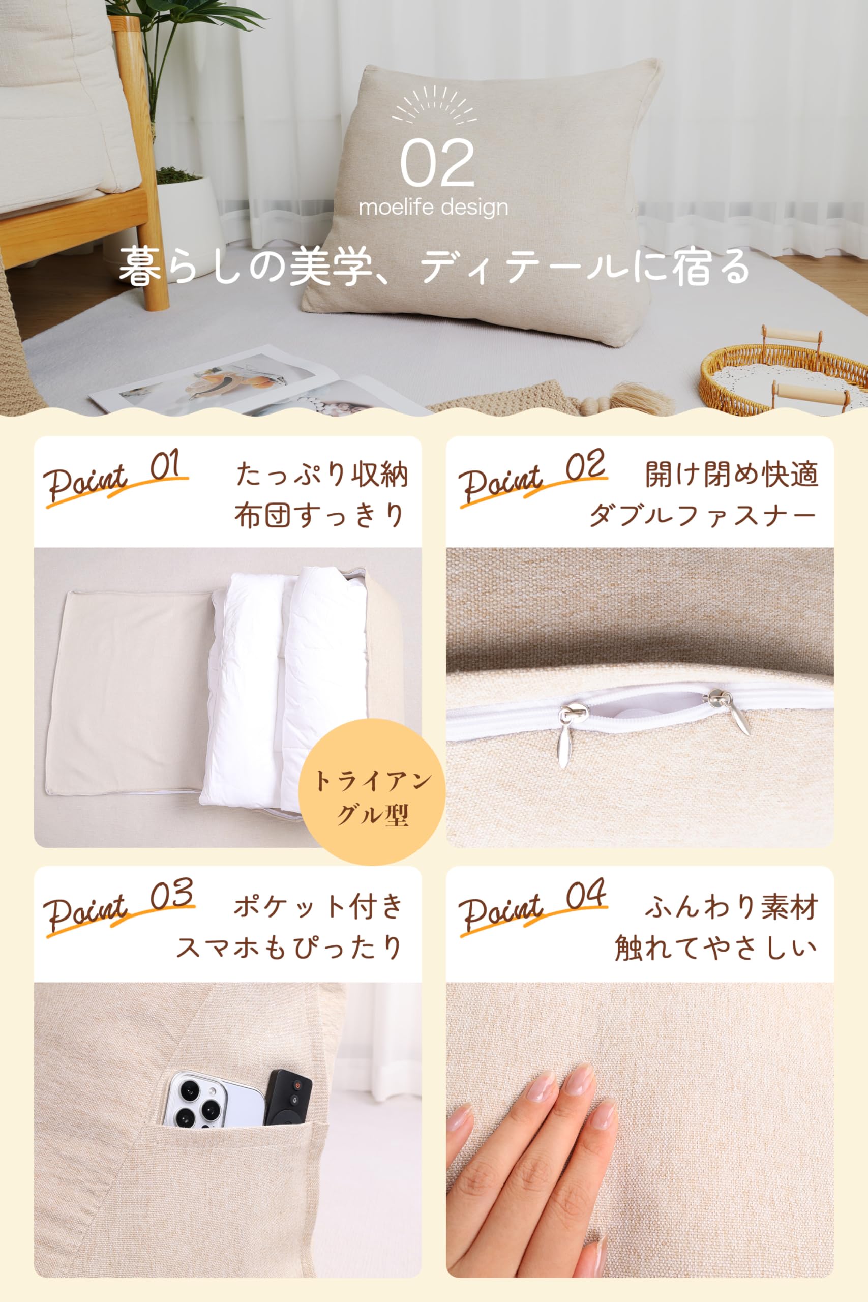 布団収納 クッション 布団収納袋 【大容量・省スペース・ポケット付き】 掛け布団 毛布 収納 背もたれ ヘッドボード 羽毛布団 マットレス クッションカバー 立てられる 無地 洗える (トライアングル型,エクリュベージュ)