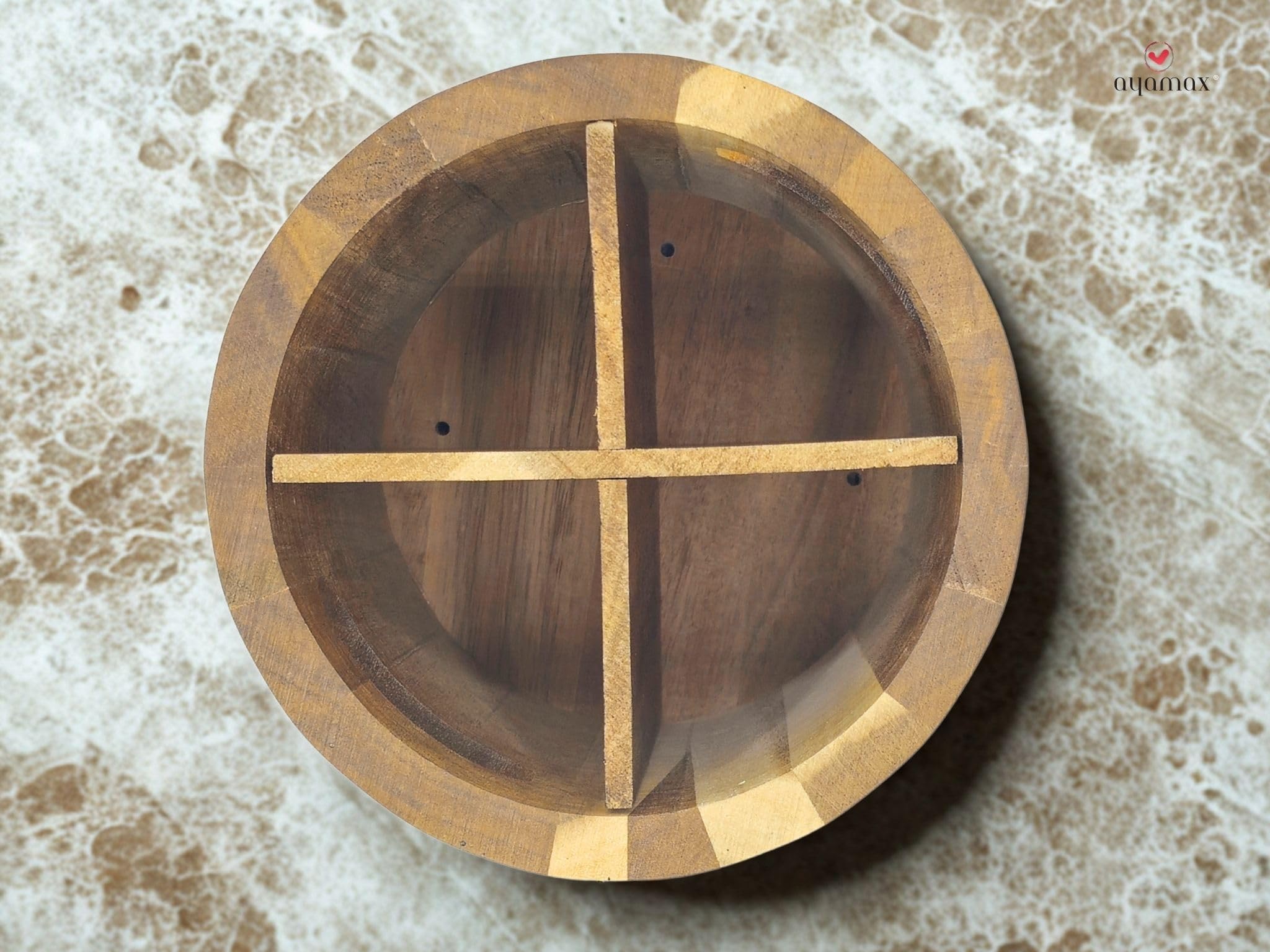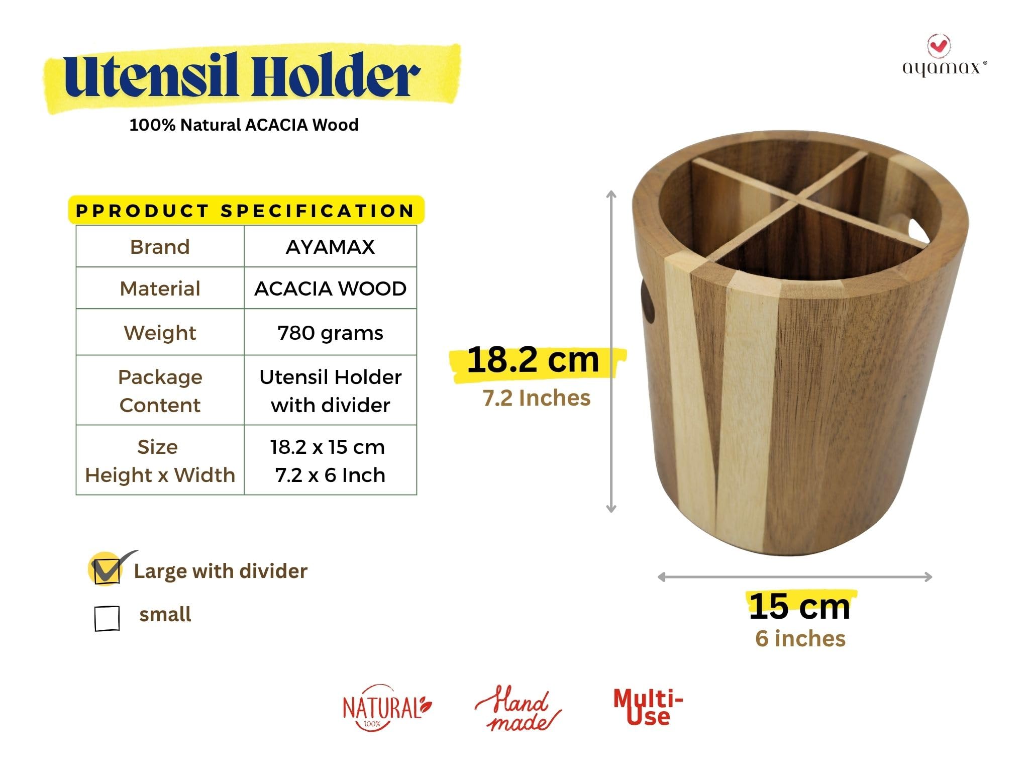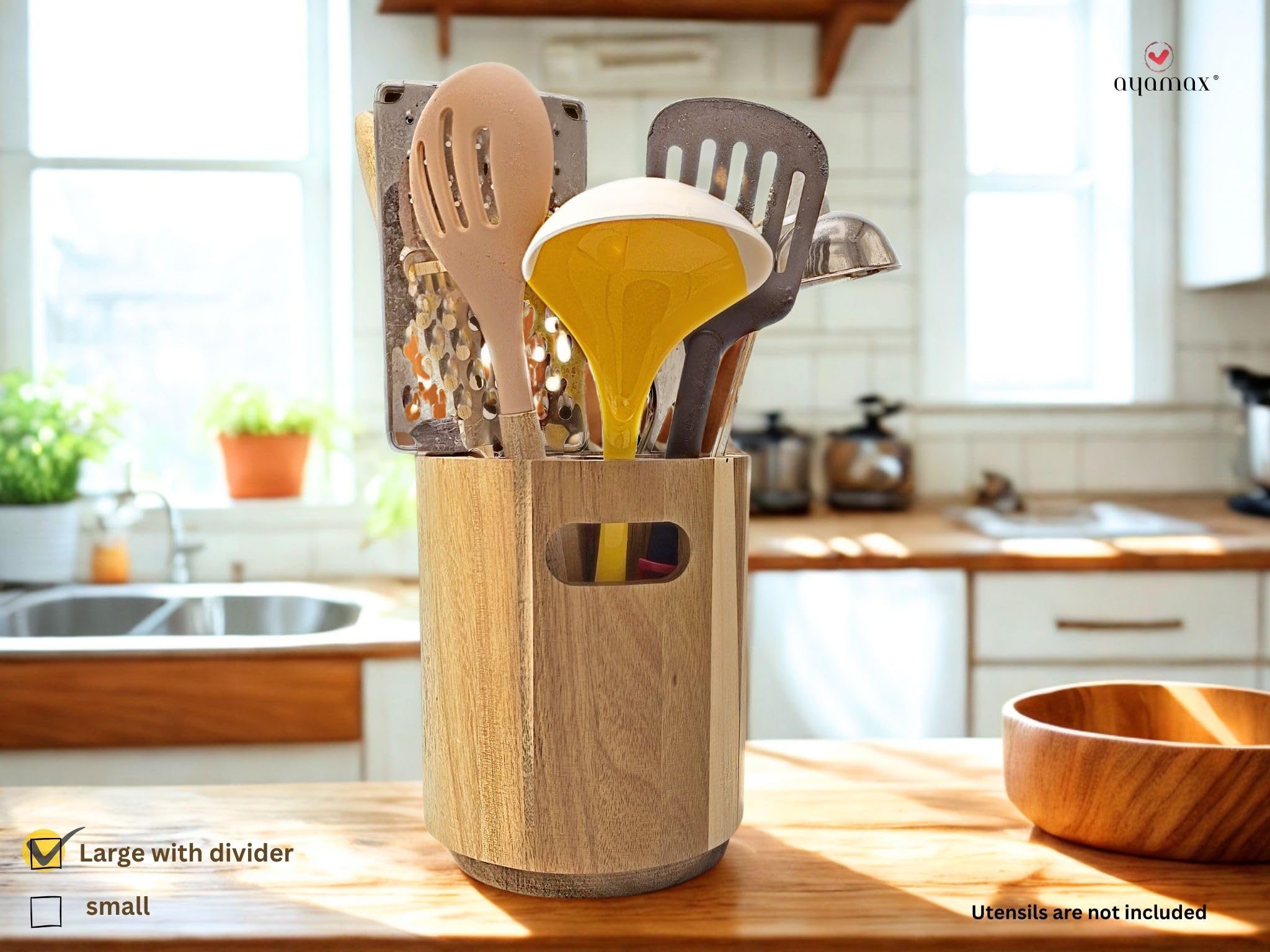 Acacia 木製食器ホルダー | 360度回転するキッチンカウンター用食器ホルダー | 調理器具オーガナイザー | 素朴な農家スタイル (仕切り付きL)