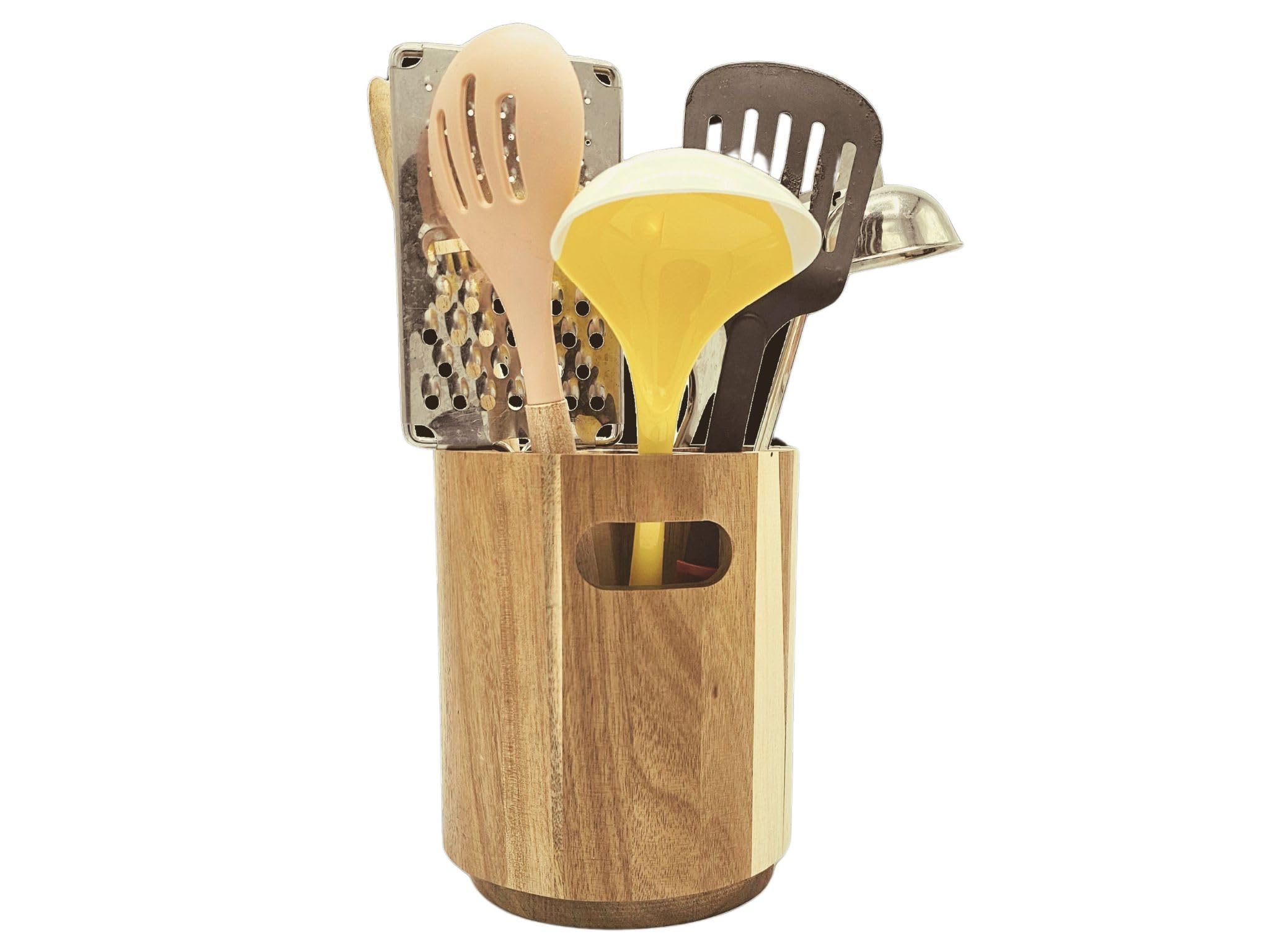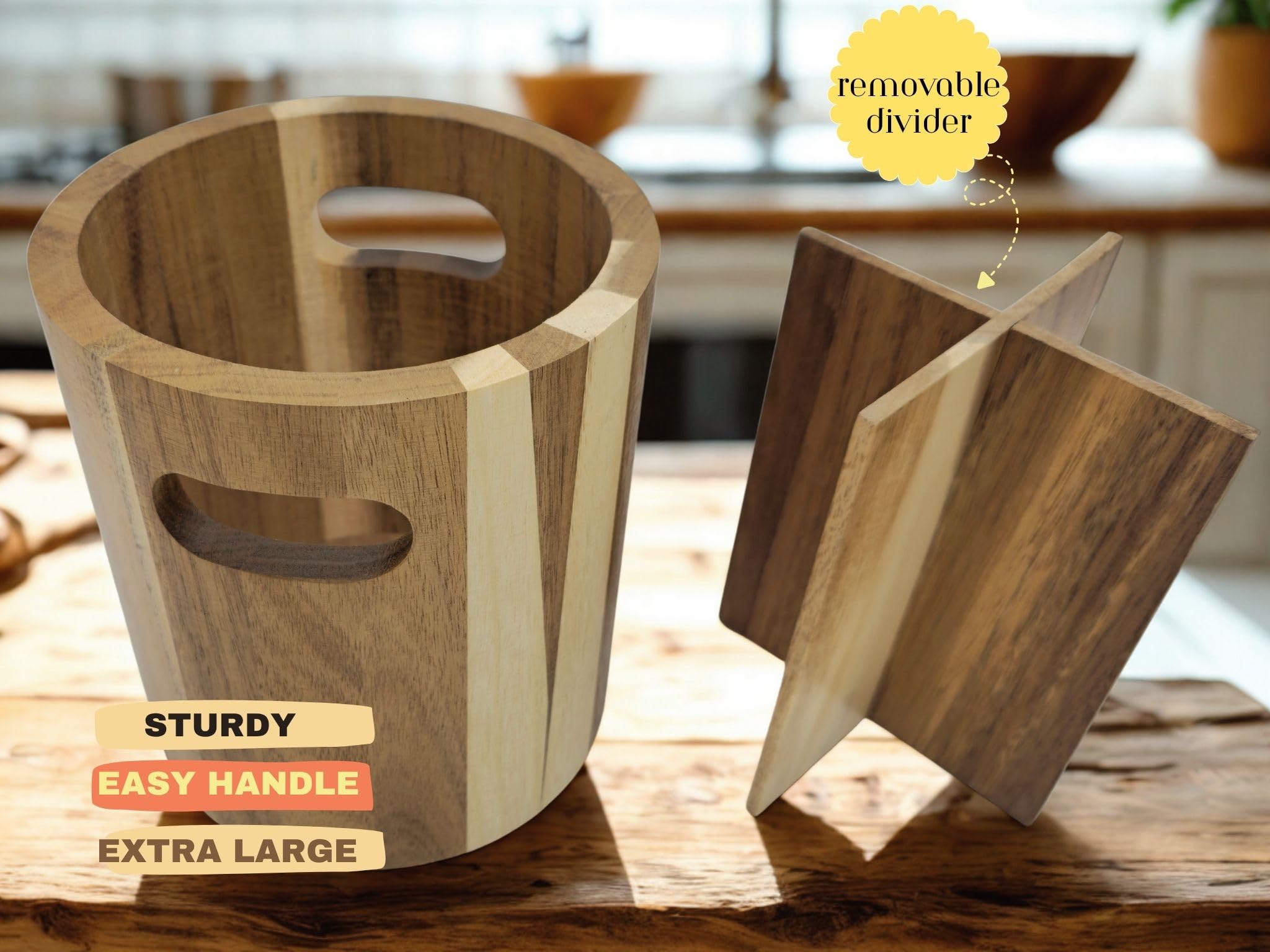 当社のアカシア木製食器ホルダーでキッチンスペースをアップグレードしましょう – 美しく細工された機能的なソリューションで、必要な調理器具をすべて収納できます。 このプレミアム木製調理器具ホルダーは、滑らかな360°回転するベースが特徴で、カウンタートップを整理して散らかりなくしてお気に入りの調理器具に簡単にアクセスできます。 幅広いキッチン装飾スタイルを引き立てるようにデザインされたこの調理器具ポットは、素朴な魅力とモダンな利便性を兼ね備えています。 スパチュラ、ひしゃく、泡立て器、トングなど、このたっぷりとしたサイズの食器ホルダーは、十分なスペースと安定性を提供します。 普段使いや新しい家庭の必需品の一部として最適。この万能キッチンオーガナイザーは、スタイリッシュなカトラリーホルダーや調理器具オーガナイザーとしても使用できます。 どんな家にも理想的な追加品で、スタイルとスマートなキッチン収納の両方を提供します。