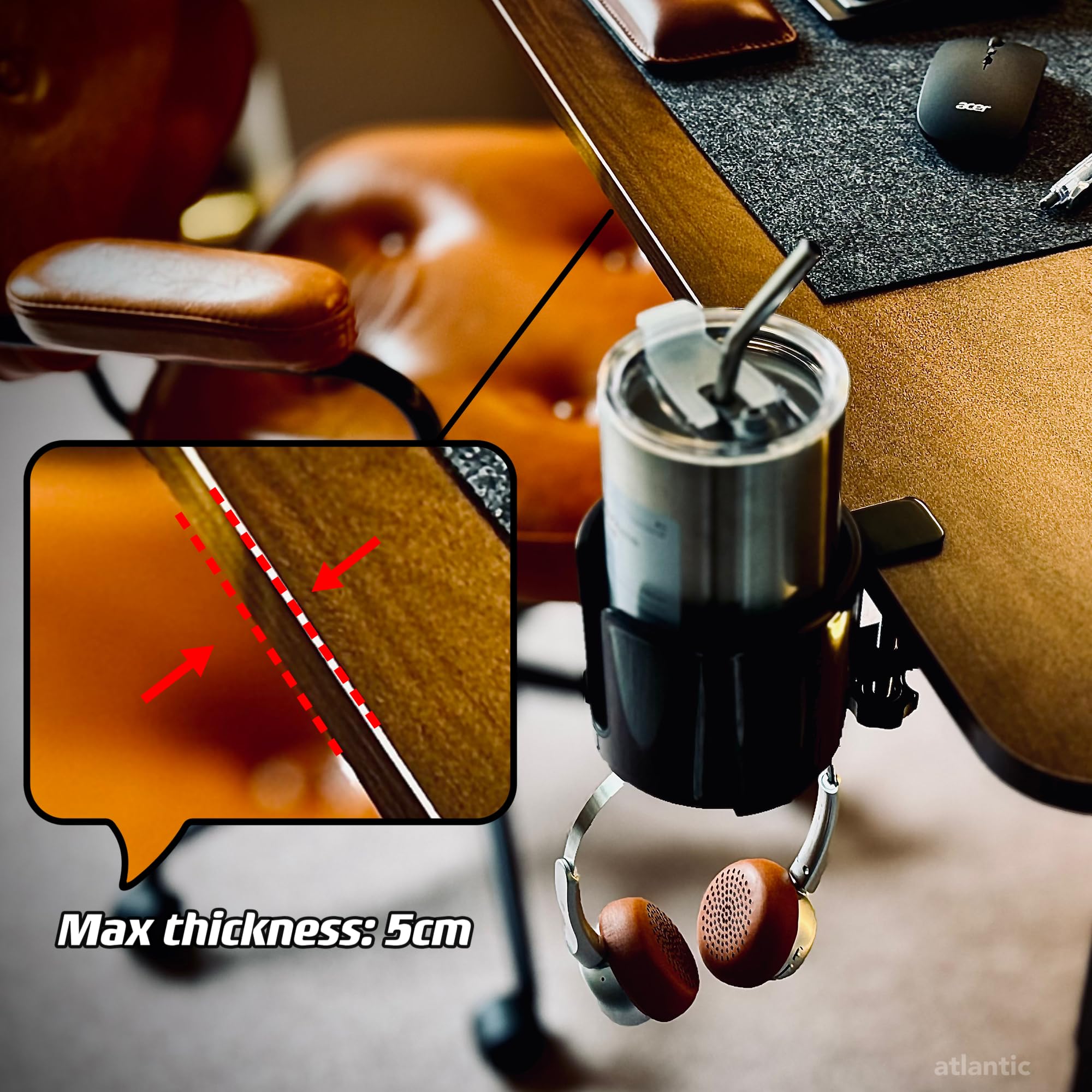 Bitze ラグジュアリー2 in 1ドリンクカップホルダー,ドリンクホルダー デスク カップホルダー ドリンクホルダー 多機能収納ラックコンピューターデスク、イヤホンホルダー (コーヒー色(coffee))