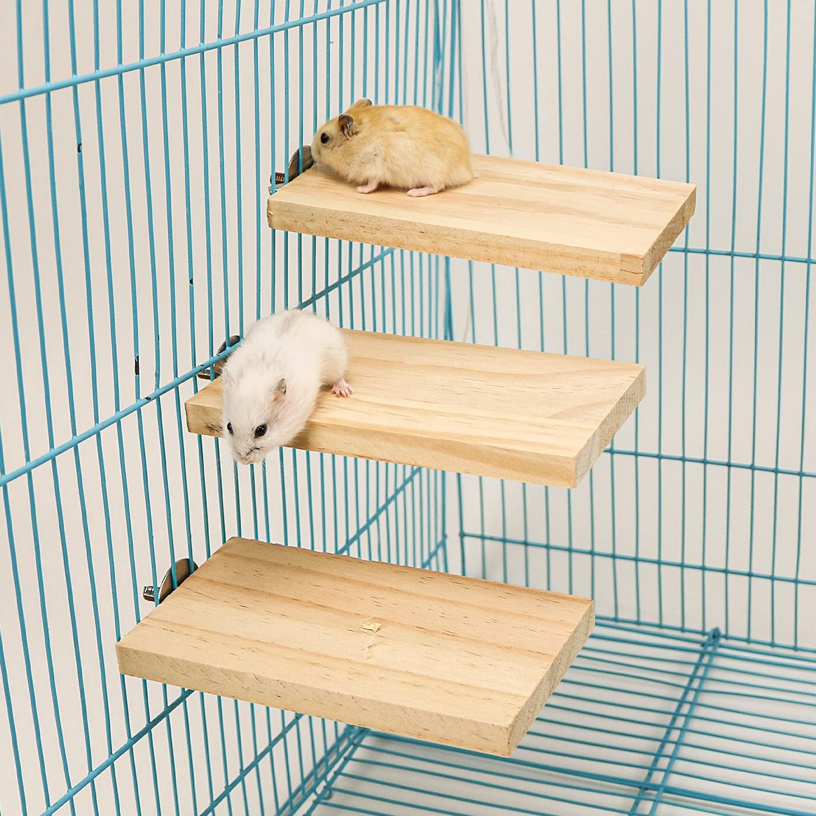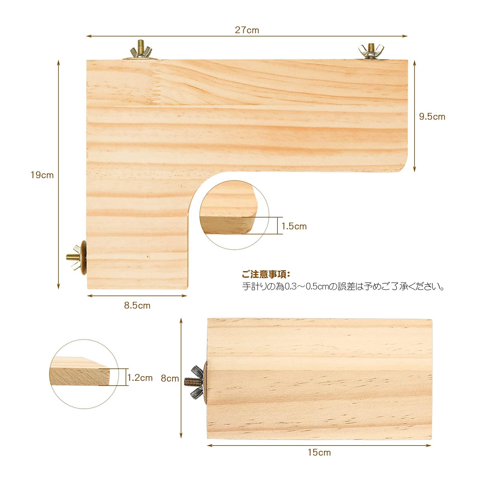 3点セット ペット用品 小動物 L字型 木製コーナーステージ ハムスターのステップ 踏み台 シマリス モモンガ チンチラ チビトトロ 飼育ケージ内装 足場 遊び場 運動不足に対応 取り付け簡単 安全 耐久性 (H01)