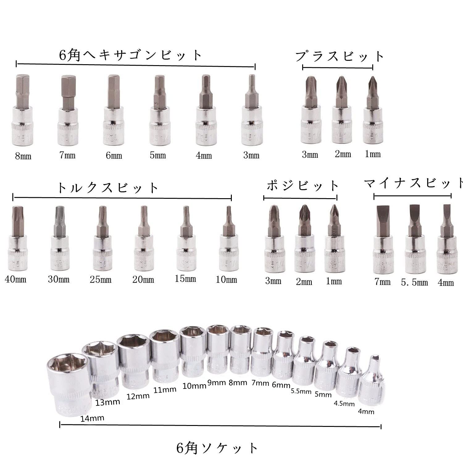 ソケットレンチセット ラチェットレンチ 差込角6.3mm(1/4インチ) 車レンチ スリーブ 46 ソケットドライバー組み合わせ ツール 車やバイク整備用工具 [並行輸入品]