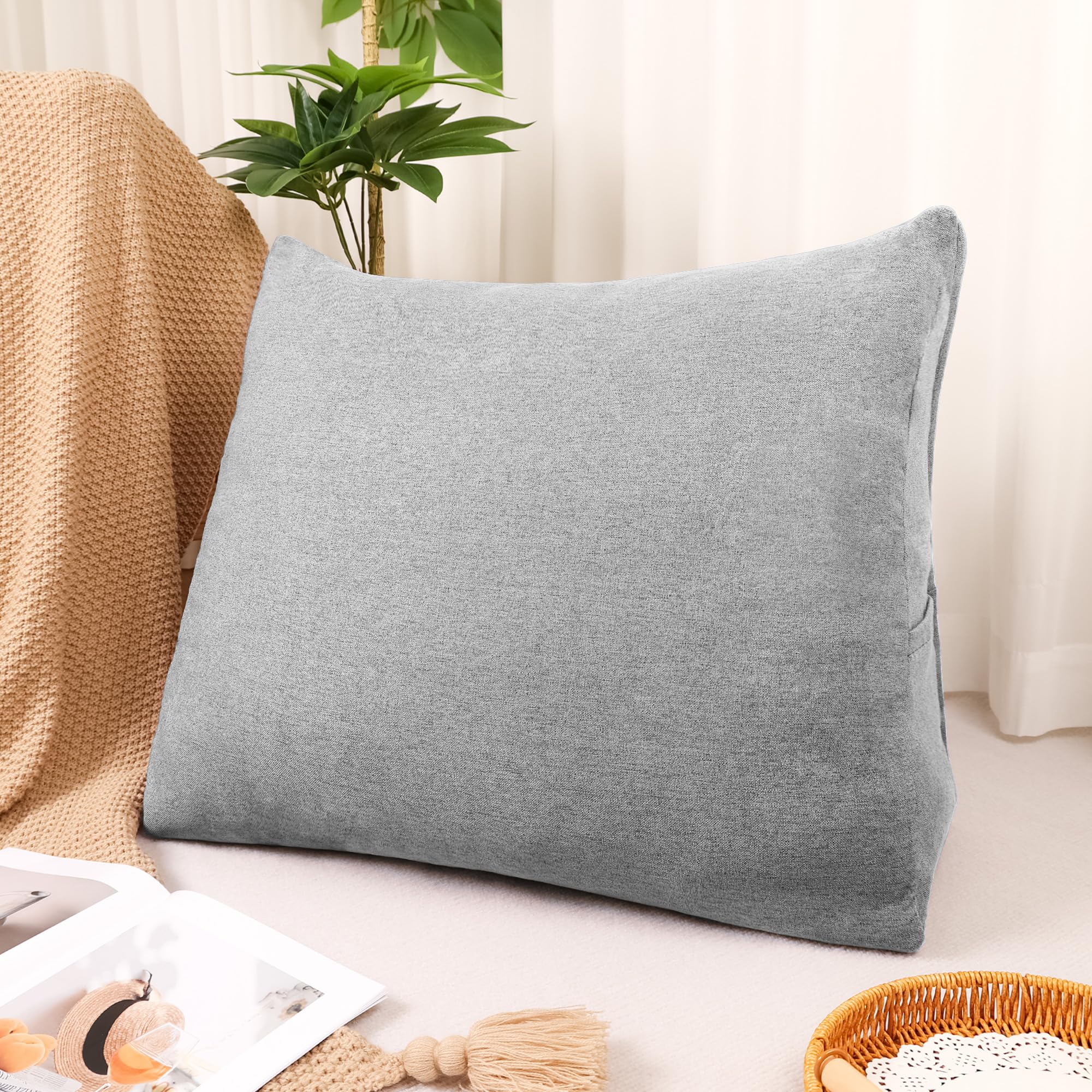 布団収納 クッション 布団収納袋 【大容量・省スペース・ポケット付き】 掛け布団 毛布 収納 背もたれ ヘッドボード 羽毛布団 マットレス クッションカバー 立てられる 無地 洗える (トライアングル型,パールグレー)