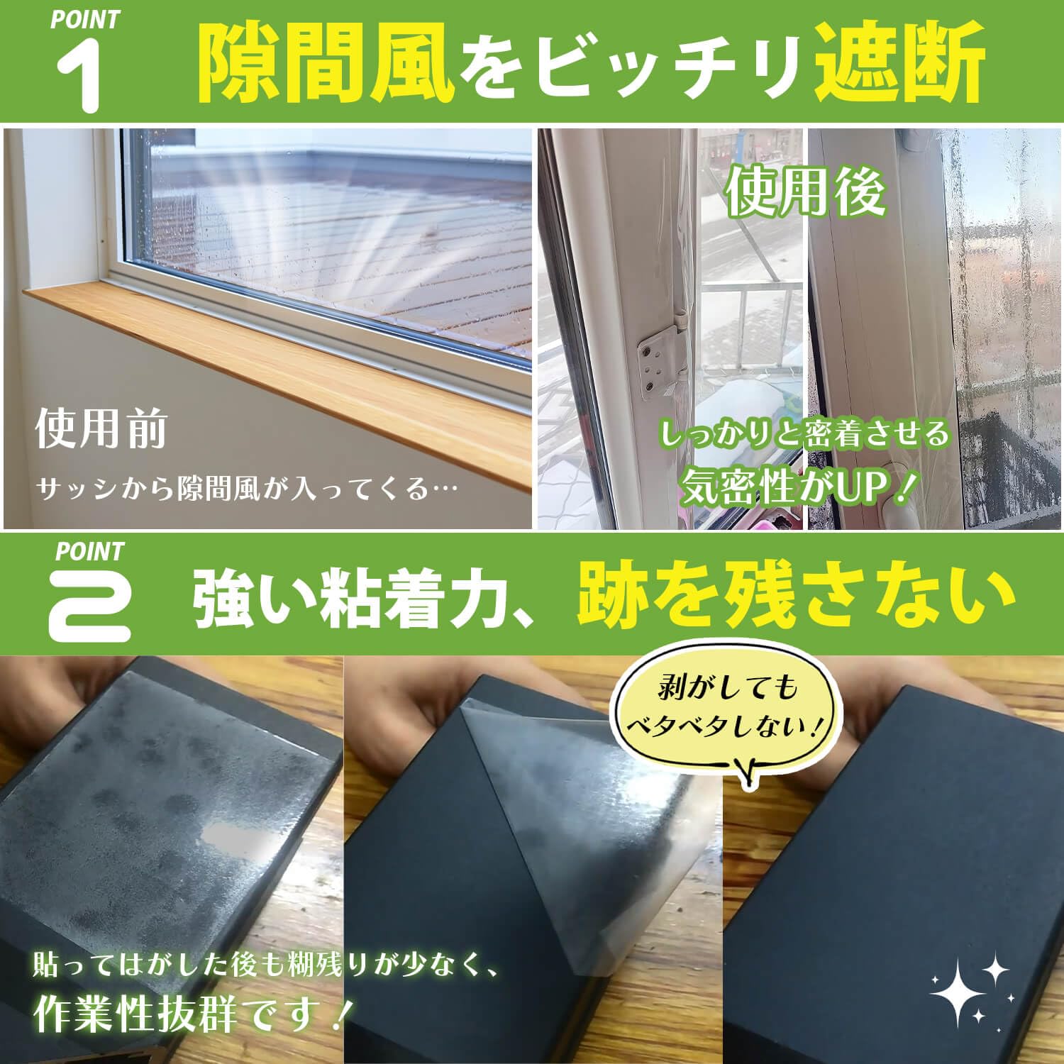 AILEWE シリコーンゴム製 補助錠 窓用 冷気遮断 ボード 2メートル 防寒 ドア 隙間 ガムテープ 寒さ対策 窓 空気漏れ防止 断熱 騒音低減 透明アクリル粘着剤 一般住宅 賃貸住宅 オフィス対応