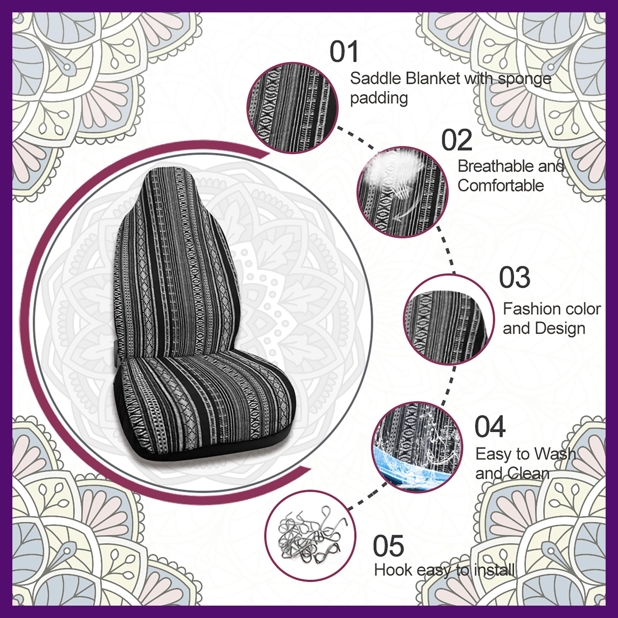 uxcell シートカバー カーシートカバー エスニックスタイル バケットシート 汎用 マルチカラー7 1個入り